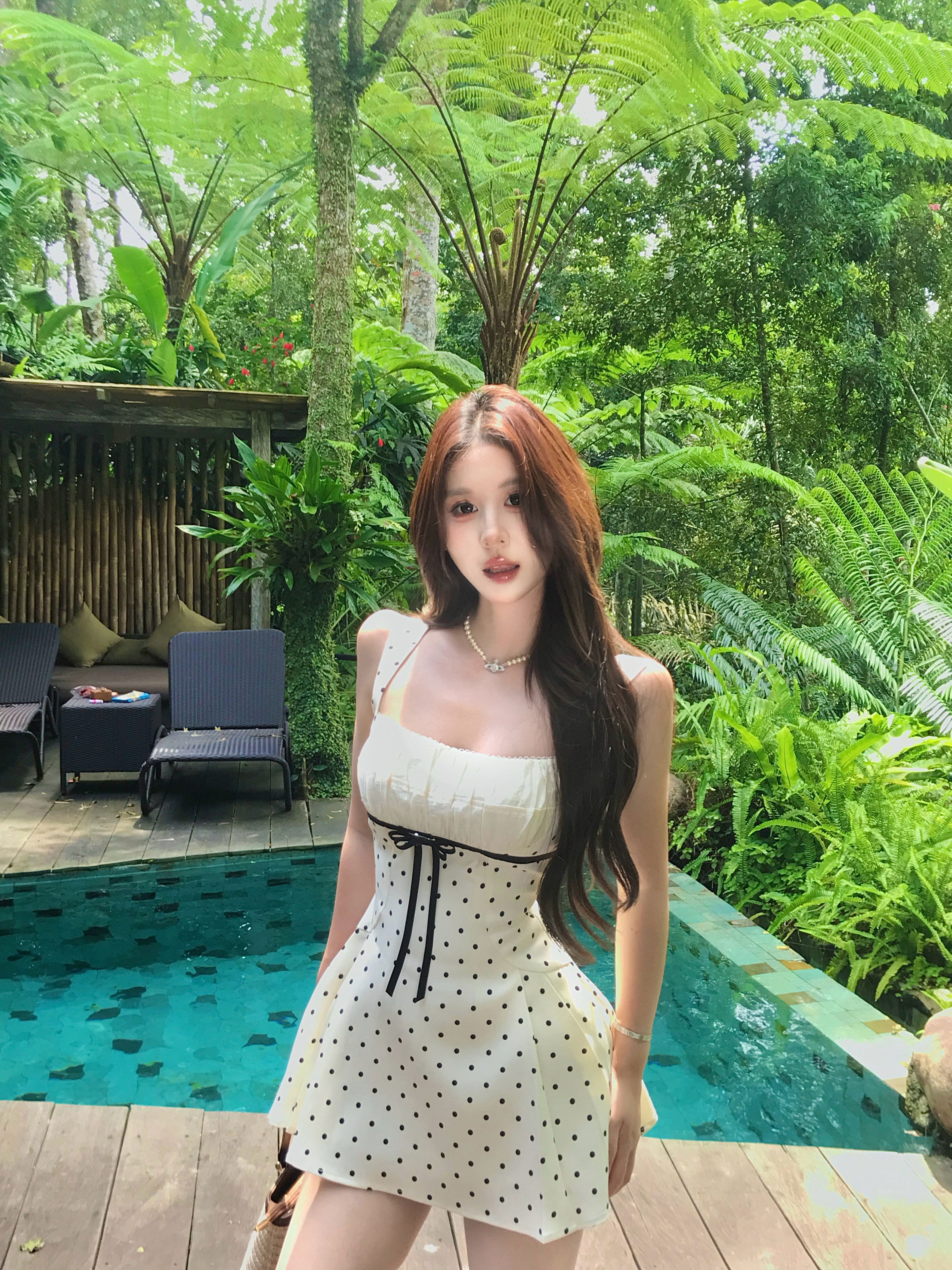 여름 헤일로 염색 부드러운 바람 쉬폰 어깨 한 개 물고기 뼈 코르셋 맨위