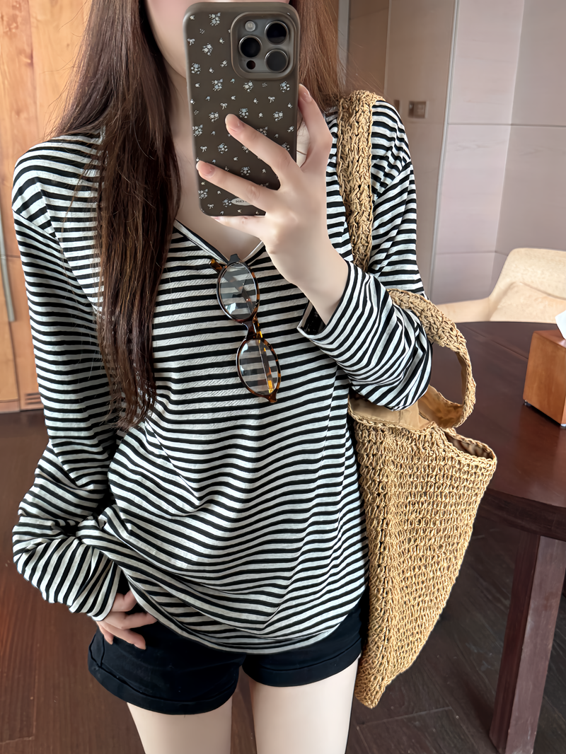 디자인 센스 작은 대중 도트 무늬 긴팔 티셔츠 여성 이른 봄 패션 외국 가스 슬림해 보이는 다용도 기본 셔츠 고유 한 맨위 서비스