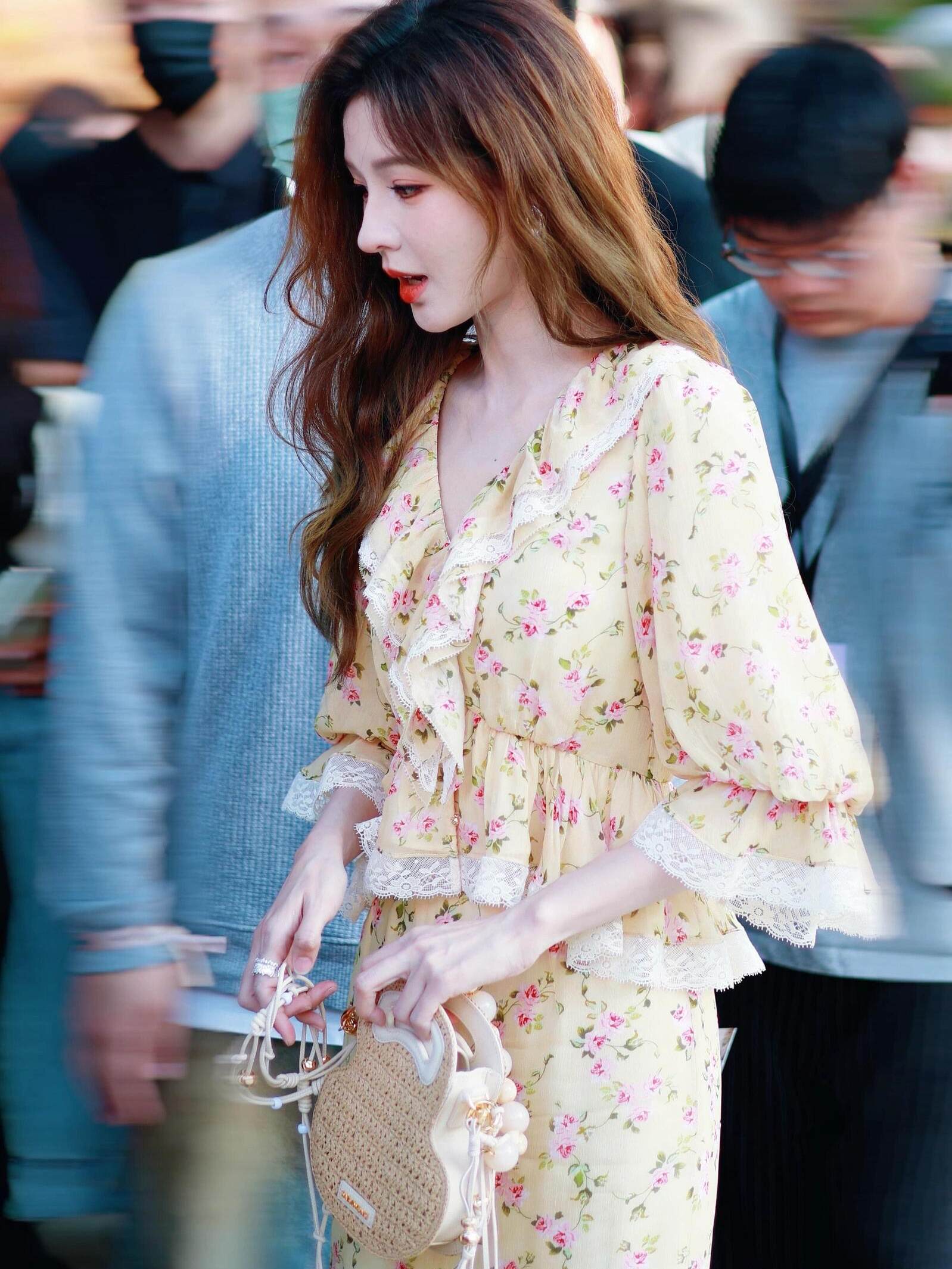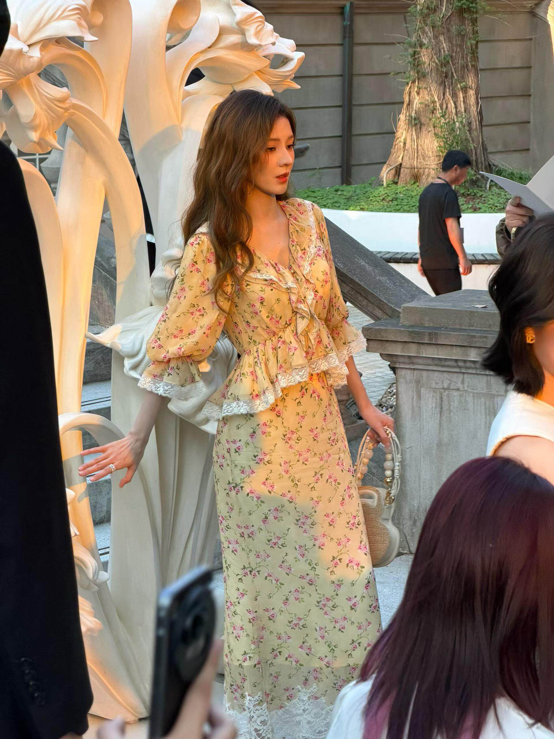 madofit Madou 릴리 오브 더 밸리 꽃이 핌 우아한 리 청나라 feel 우아함 흔들다 칼라 비스듬한 자르다 꽃무늬 드레스