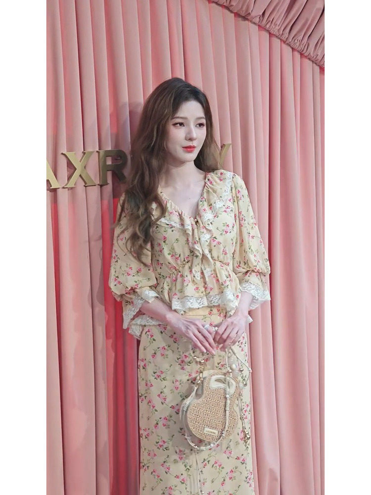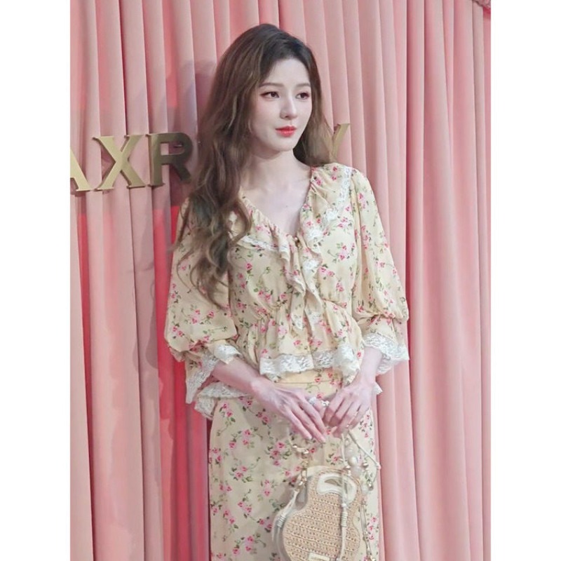 오리지널 디자인 달콤한 스타일 쉬폰 세트 몸매 가꾸기 반팔 맨위 코디 치마 두 조각 여성 세트