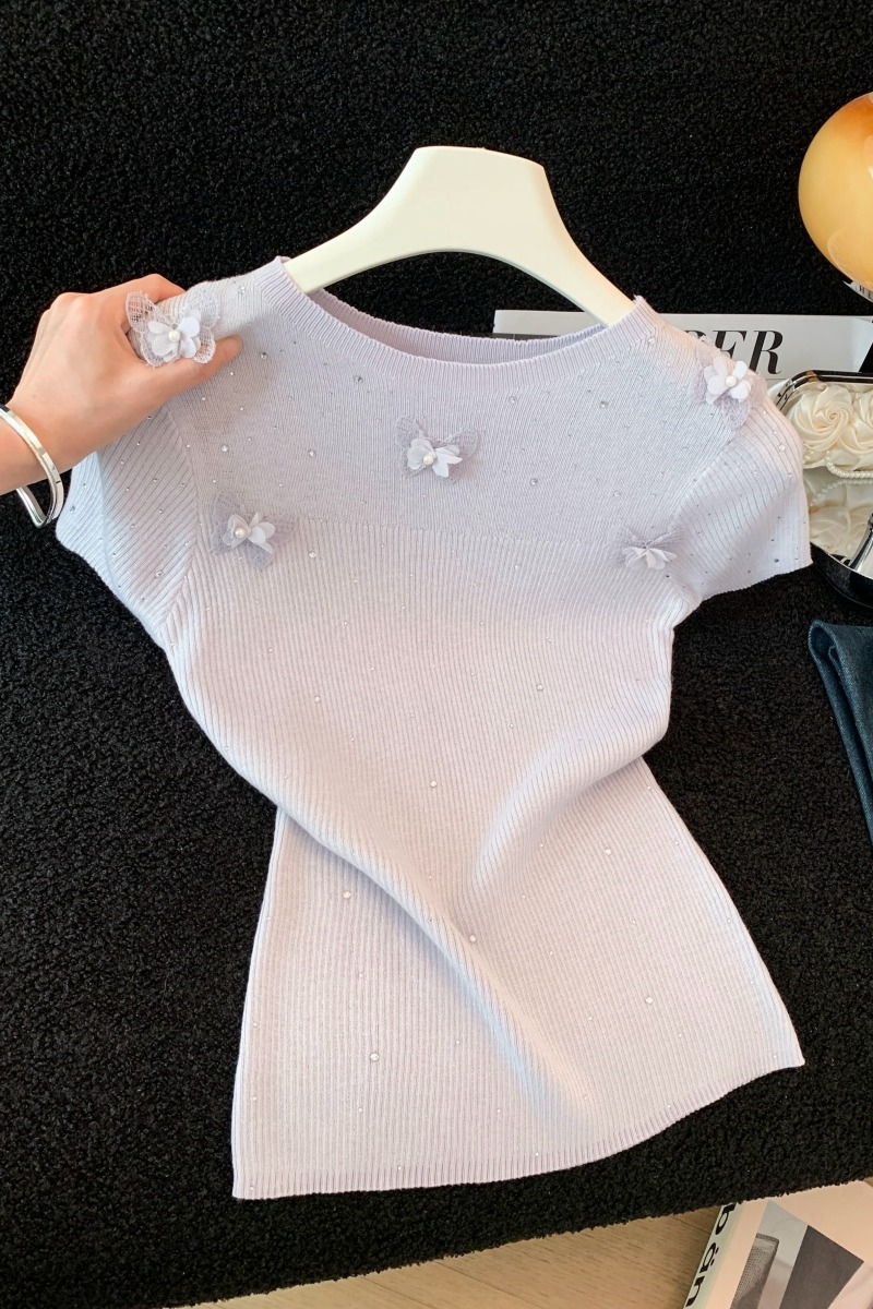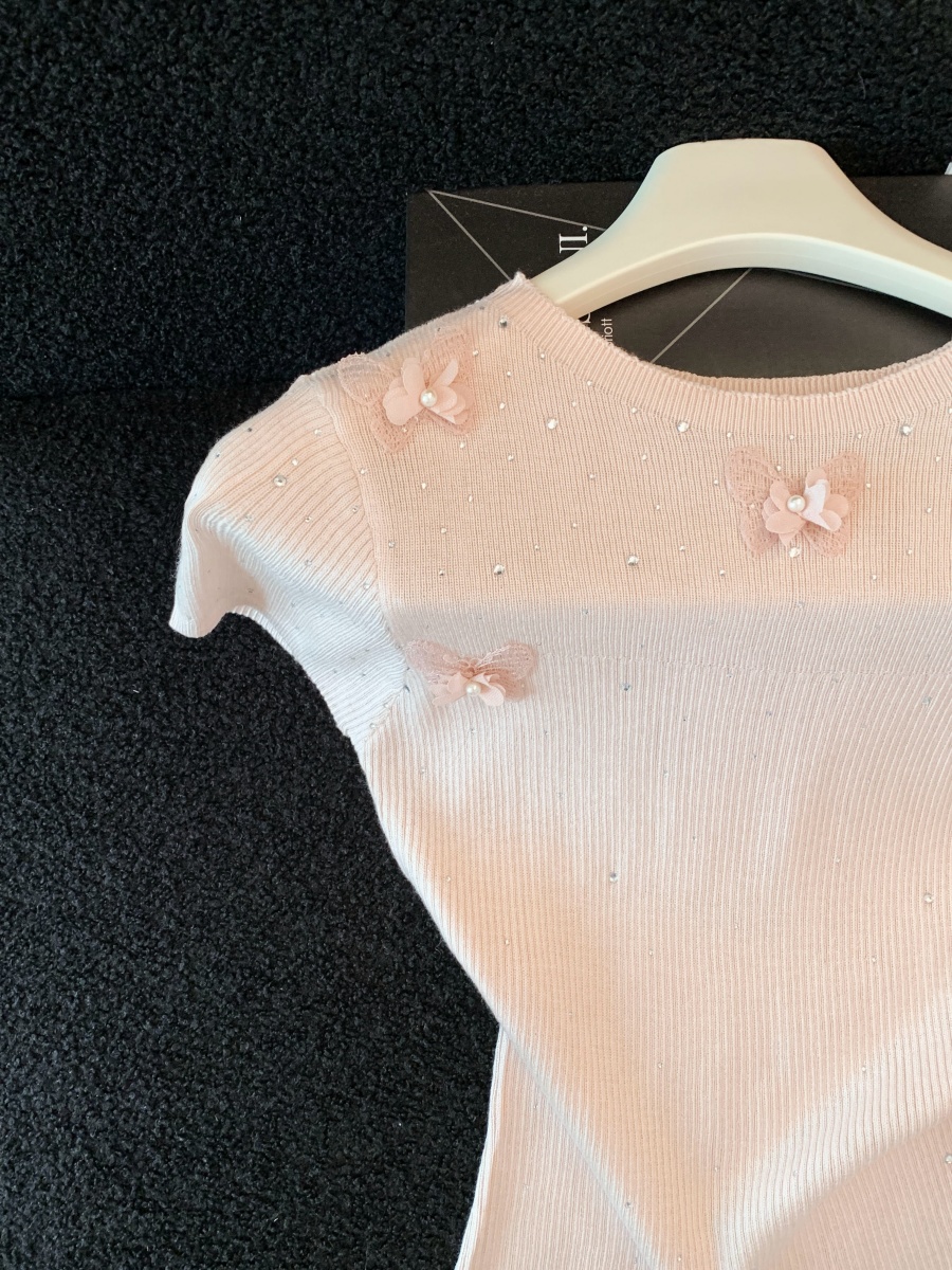 실사 여름 새로운 자수 홀로우 아웃 무거운 작업 구슬 조각 자수 레이스 베스트 다용도 반팔 새로운 외출용 레이스