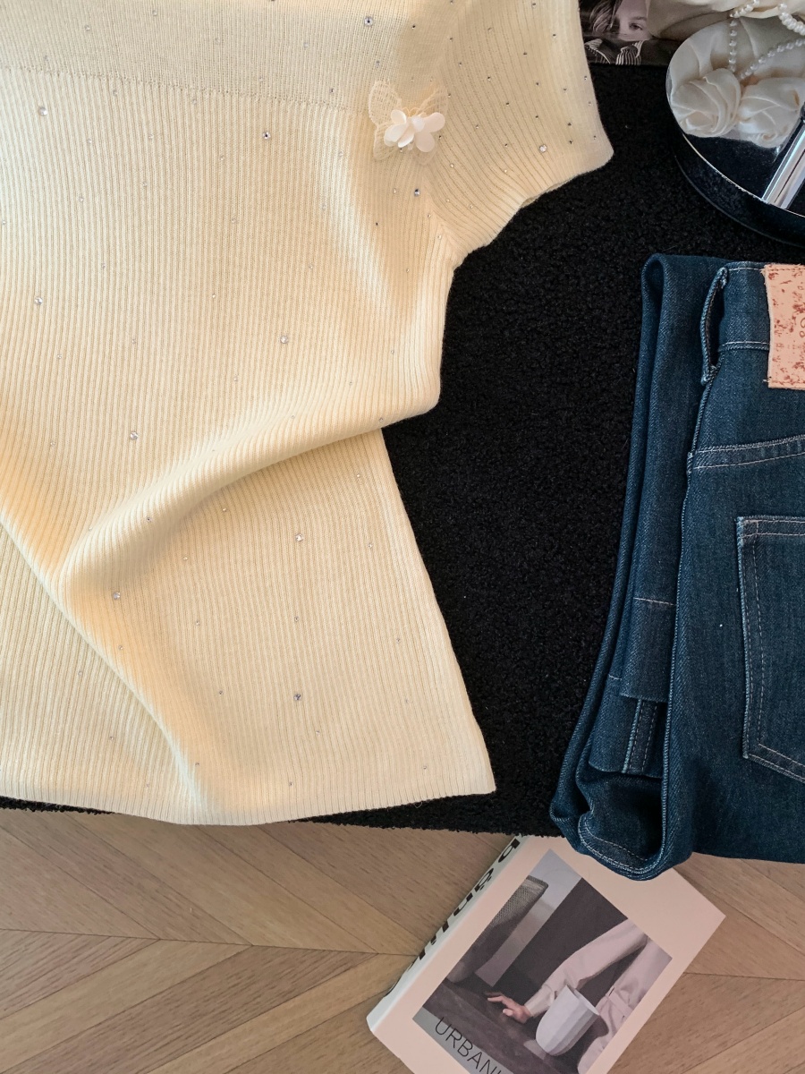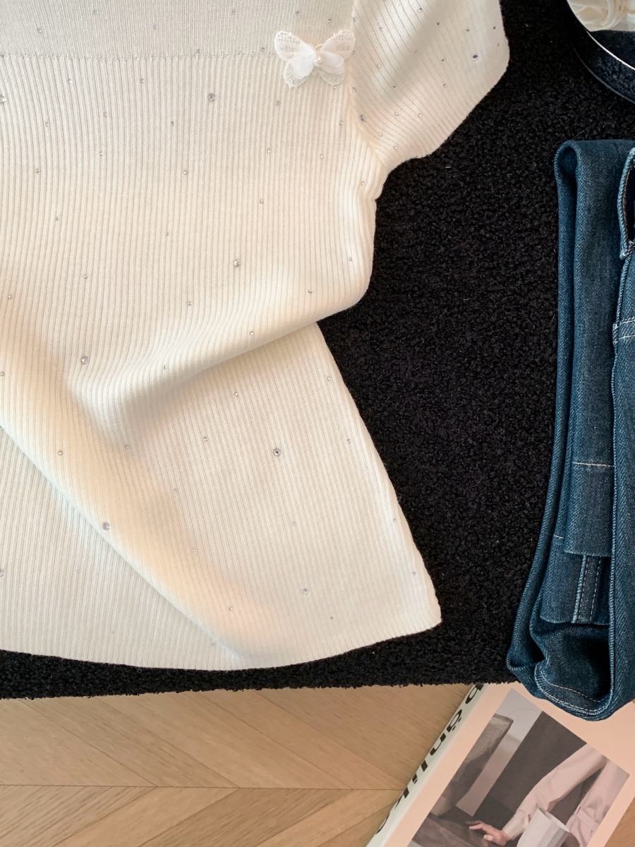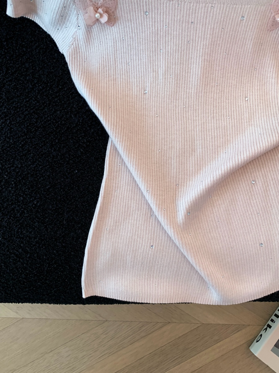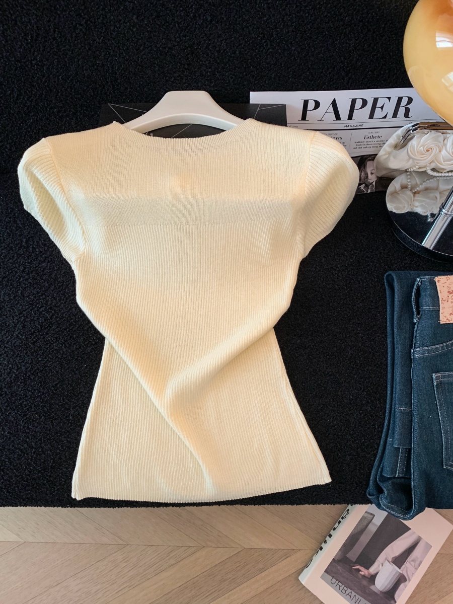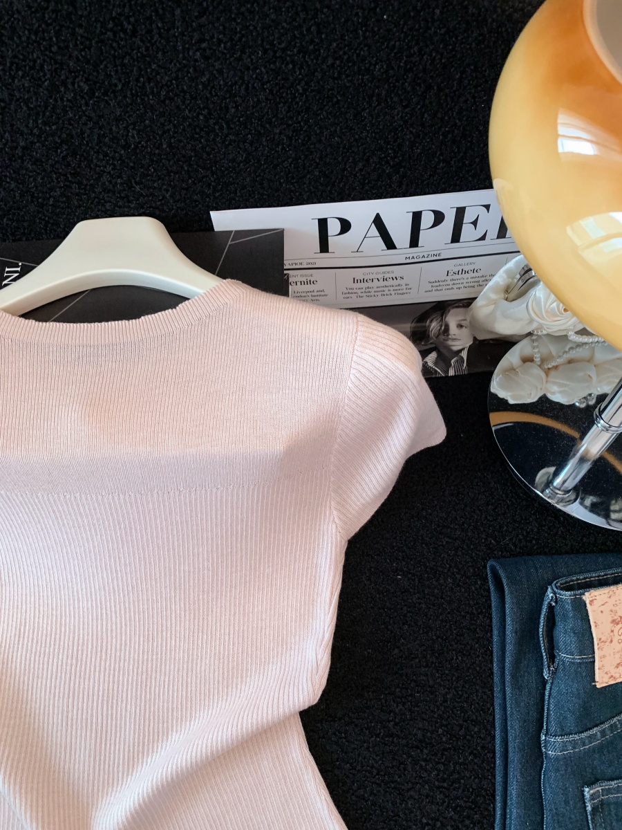 실사 도파민 순수한 욕망 바람 니트 스웨터 디자인 센스 패션 몸매 가꾸기 주름 반팔 달콤한 매운맛 chic 흔들다 칼라 맨위