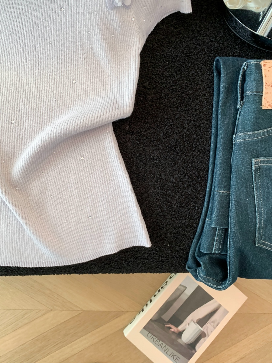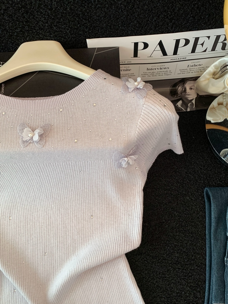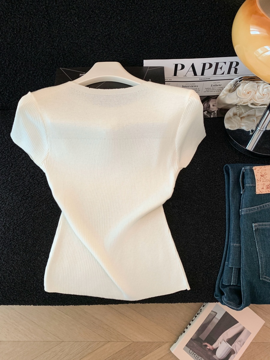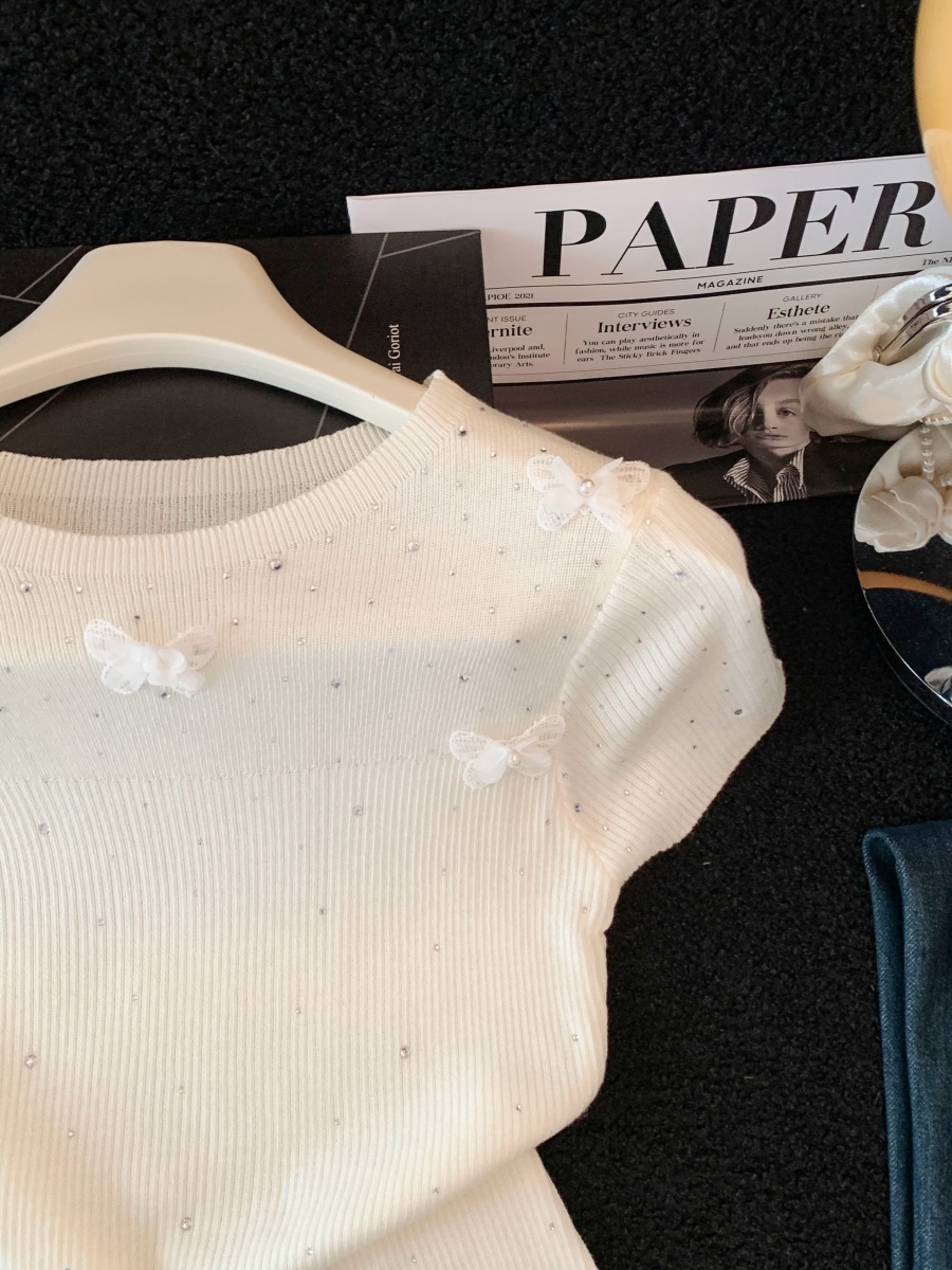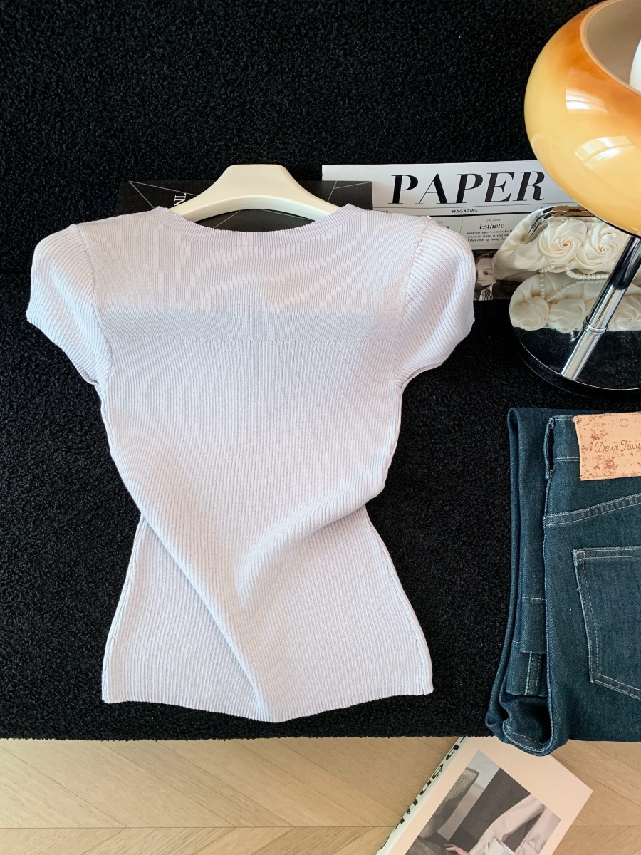 실사 도파민 순수한 욕망 바람 니트 스웨터 디자인 센스 패션 몸매 가꾸기 주름 반팔 달콤한 매운맛 chic 흔들다 칼라 맨위