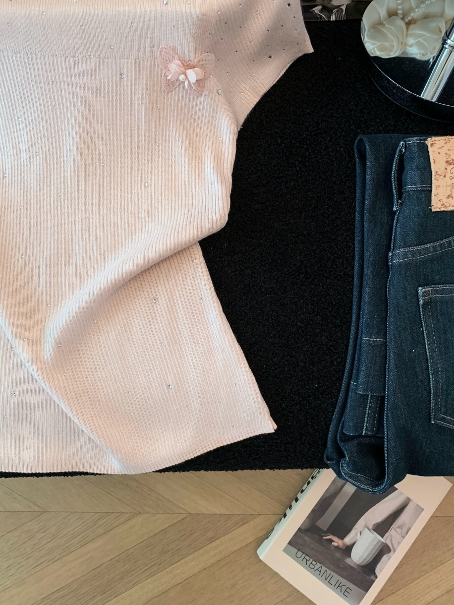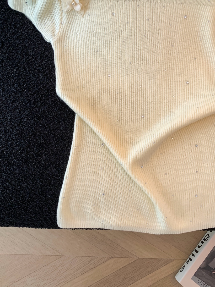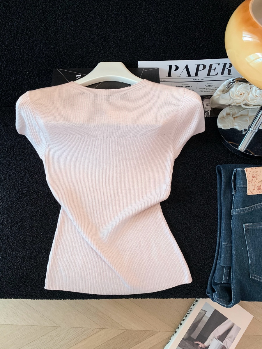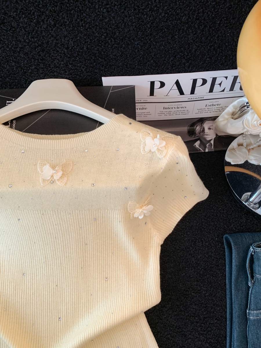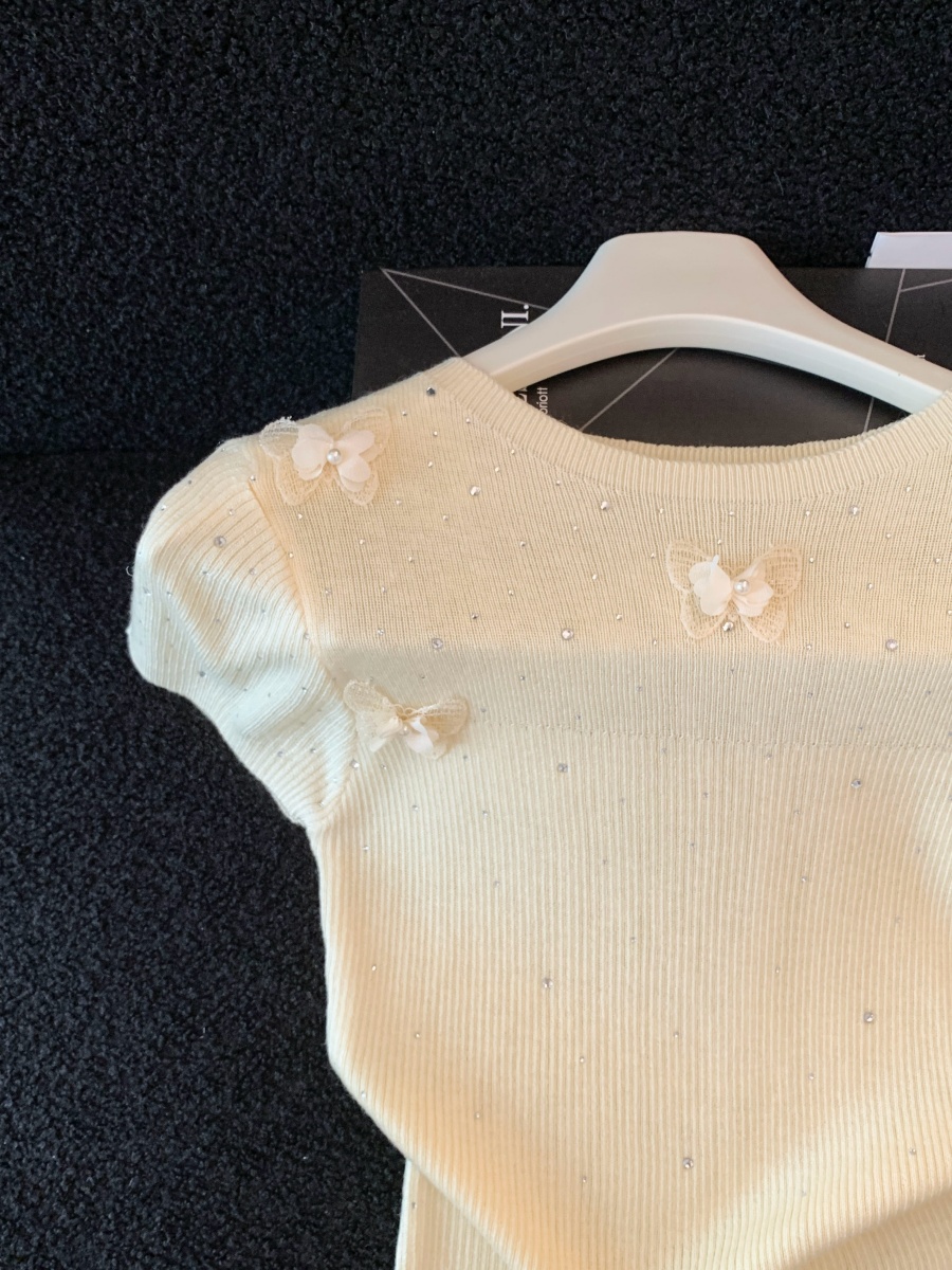실사 도파민 순수한 욕망 바람 니트 스웨터 디자인 센스 패션 몸매 가꾸기 주름 반팔 달콤한 매운맛 chic 흔들다 칼라 맨위