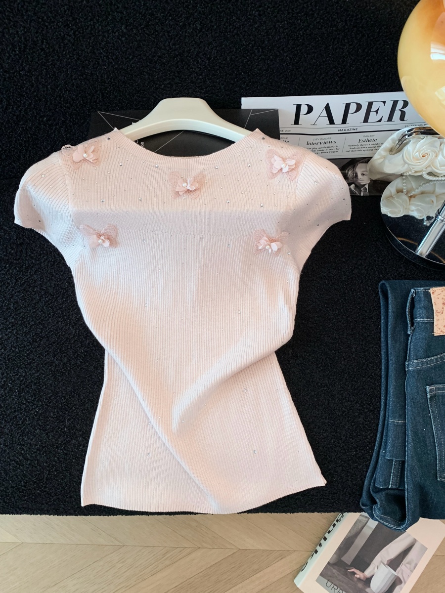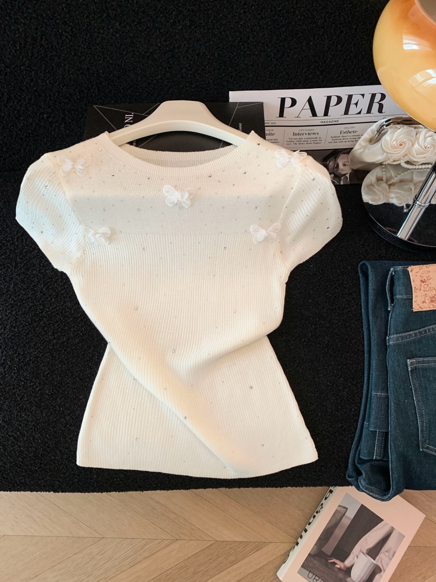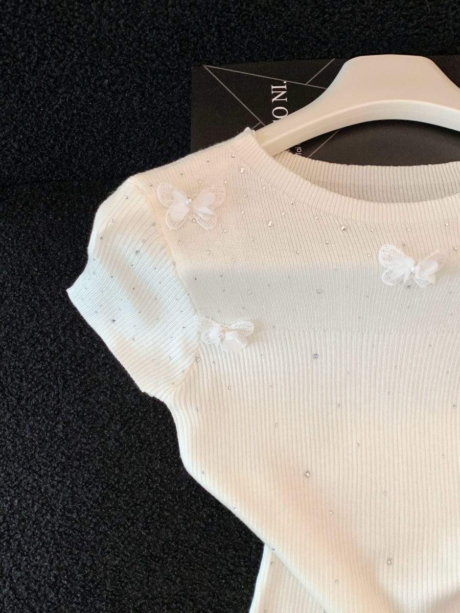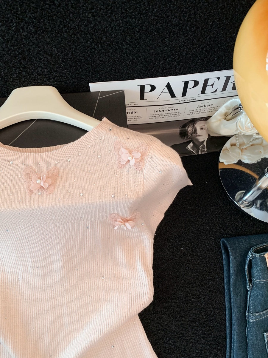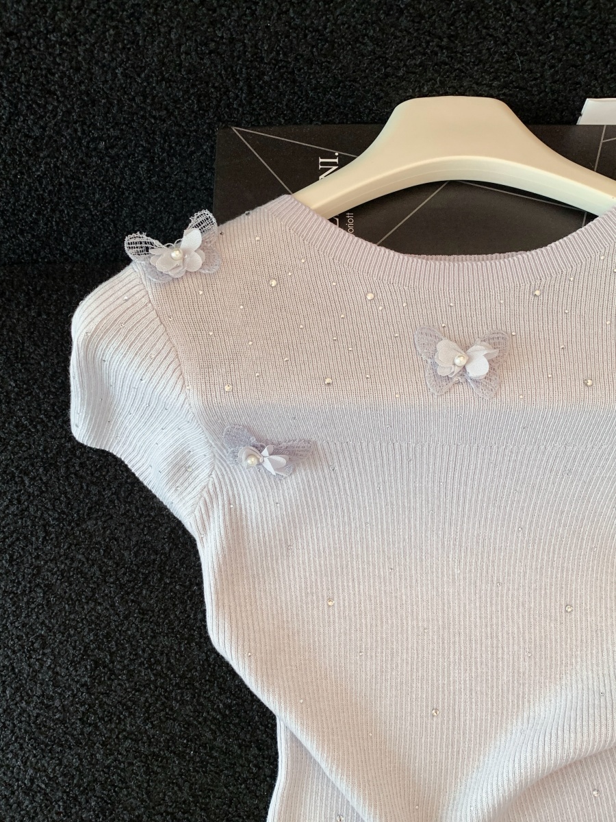실사 도파민 순수한 욕망 바람 니트 스웨터 디자인 센스 패션 몸매 가꾸기 주름 반팔 달콤한 매운맛 chic 흔들다 칼라 맨위