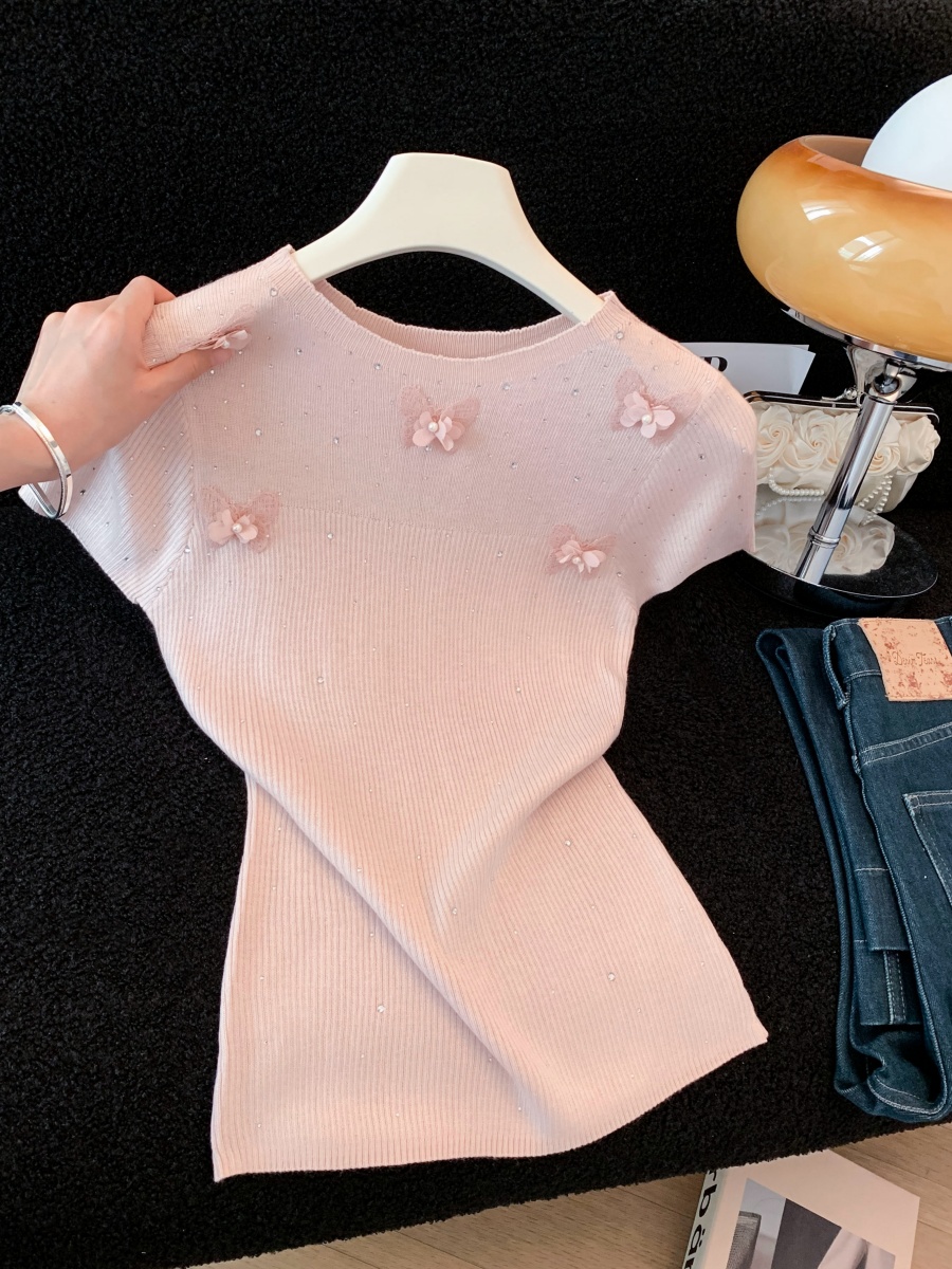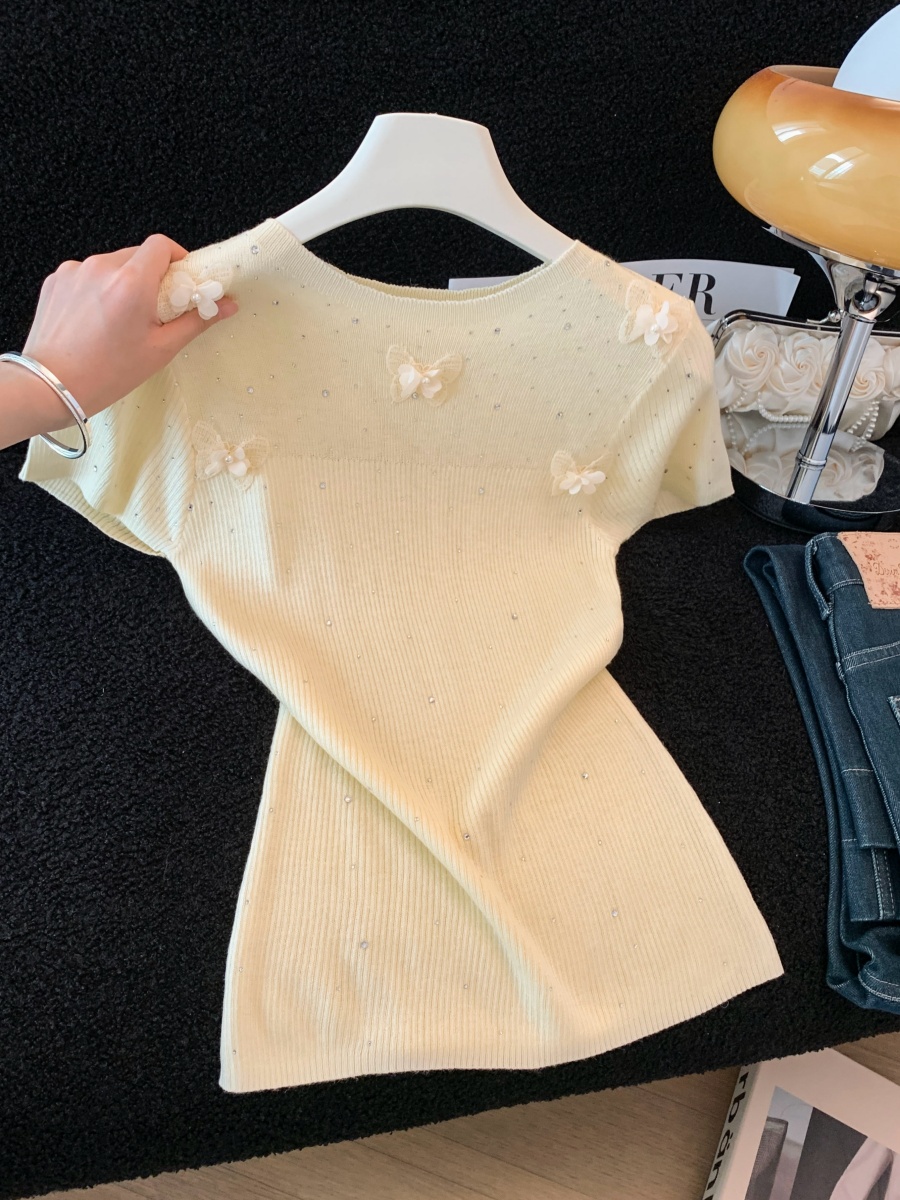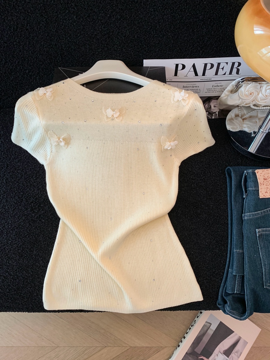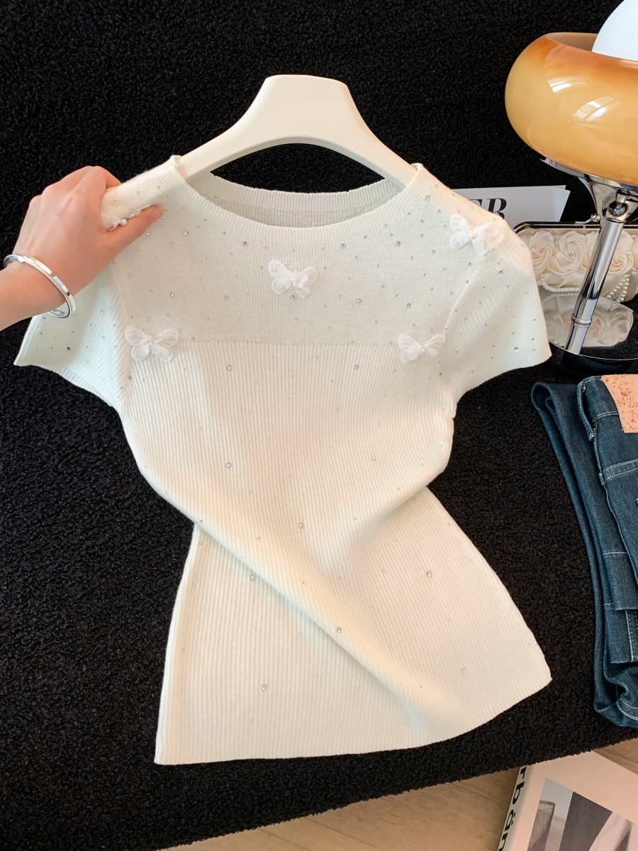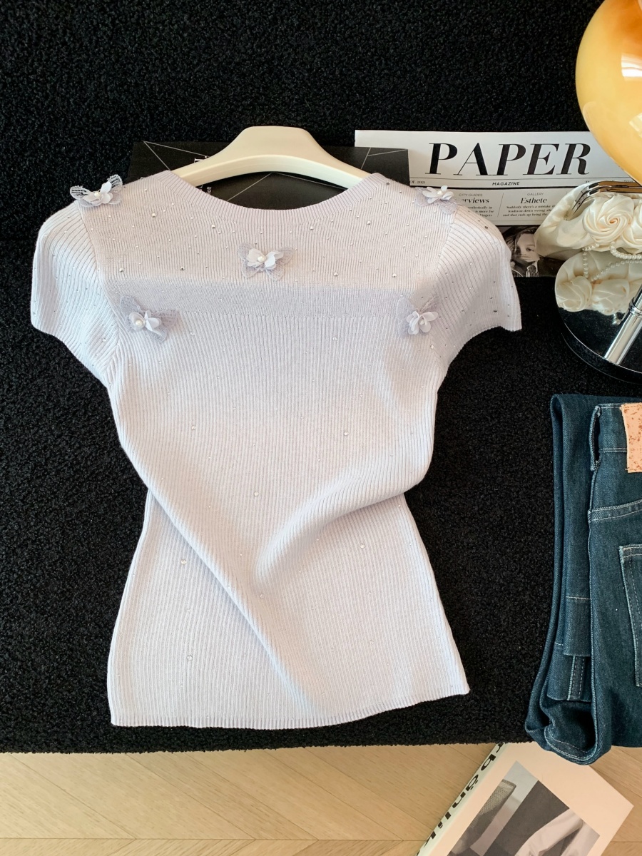 실사 도파민 순수한 욕망 바람 니트 스웨터 디자인 센스 패션 몸매 가꾸기 주름 반팔 달콤한 매운맛 chic 흔들다 칼라 맨위