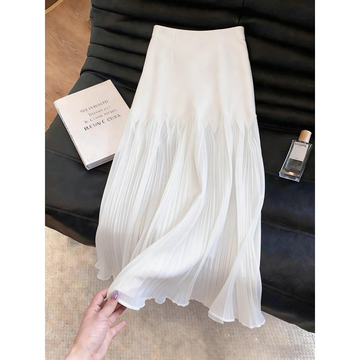 화이트 플리츠 패치워크 쉬폰 반신 스커트 여성 2026 새로운 봄 아름다운 자이언트 잘 생긴 품격 하이웨이스트 도루 센스 치마
