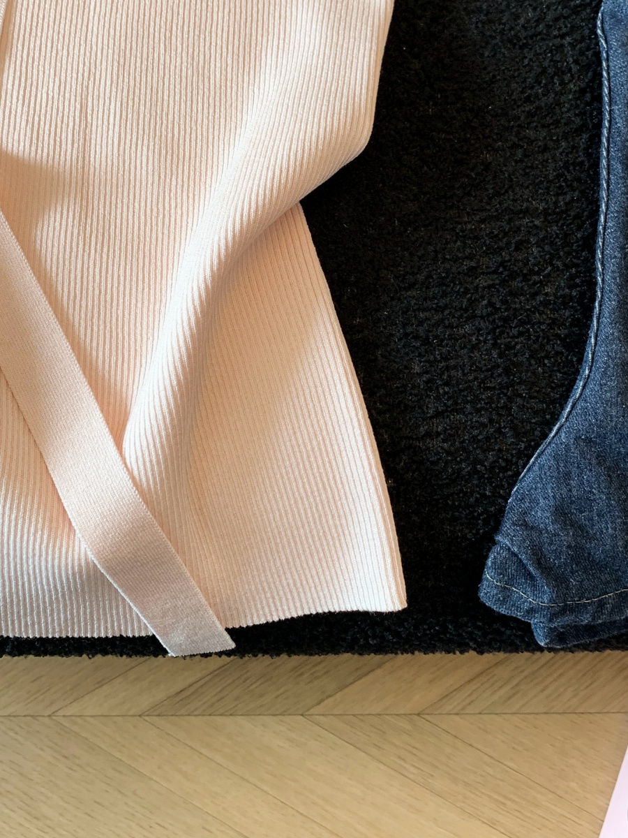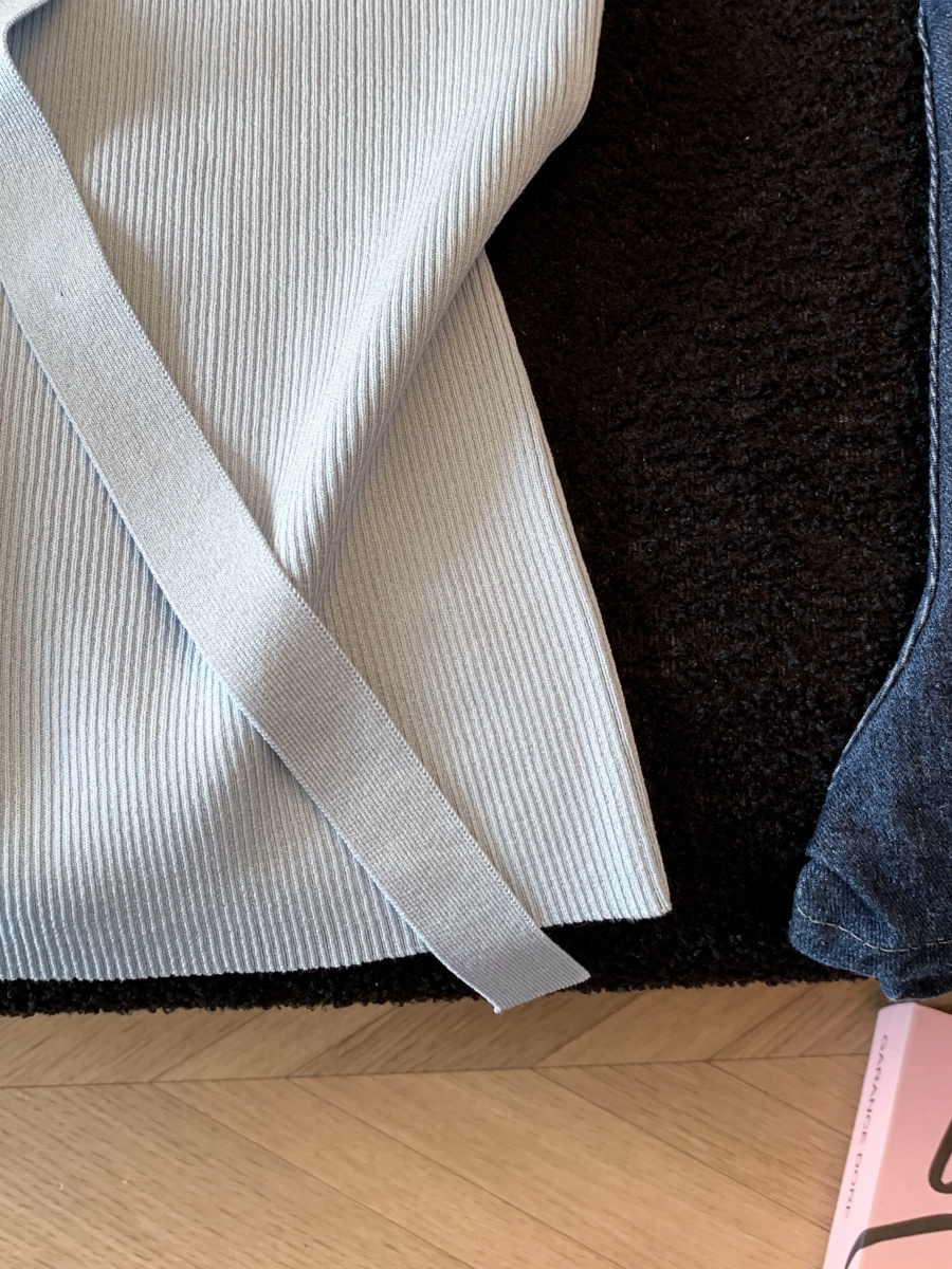 실사 도파민 순수한 욕망 바람 니트 스웨터 디자인 센스 패션 몸매 가꾸기 주름 반팔 달콤한 매운맛 chic 흔들다 칼라 맨위