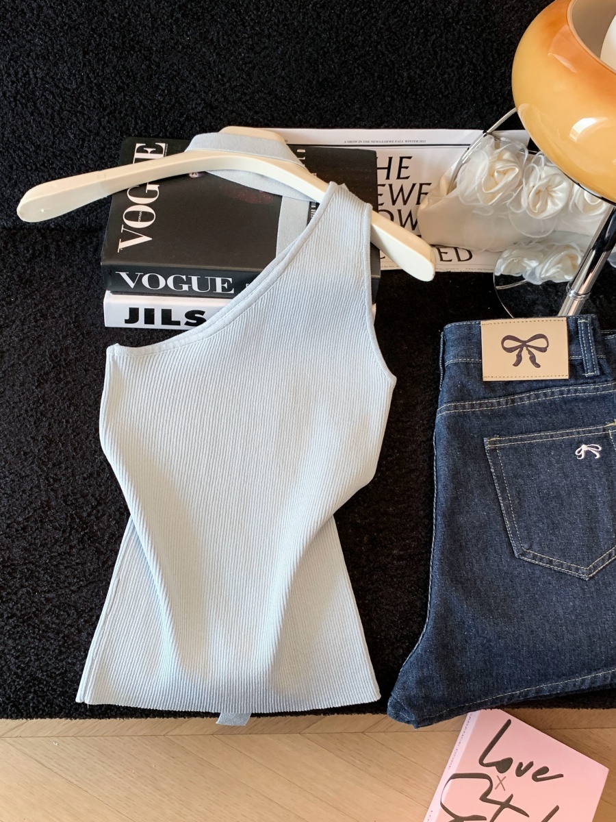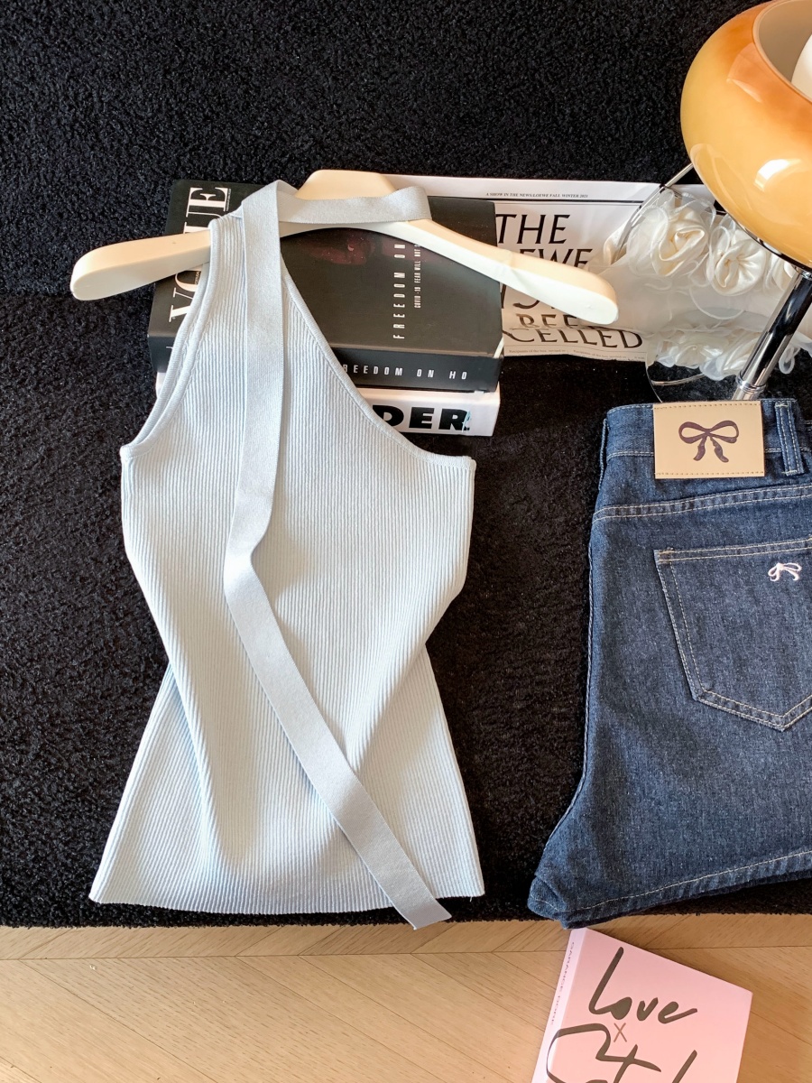 한 부서 순수한 욕망 V넥 니트 캐미솔 여름 몸매 가꾸기 민소매 맨위 분위기 센스 섹시함 핫걸 조끼