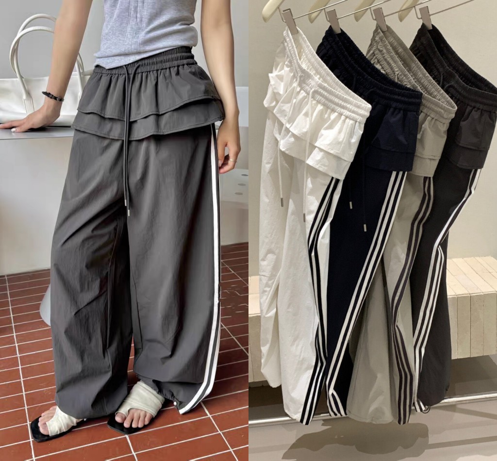 실사 프릴 방귀 커튼 캐주얼 바지 2026 여름 조거 둘 착용 달콤함 풍선 바지 작은 키 넓은 다리 길이 바지