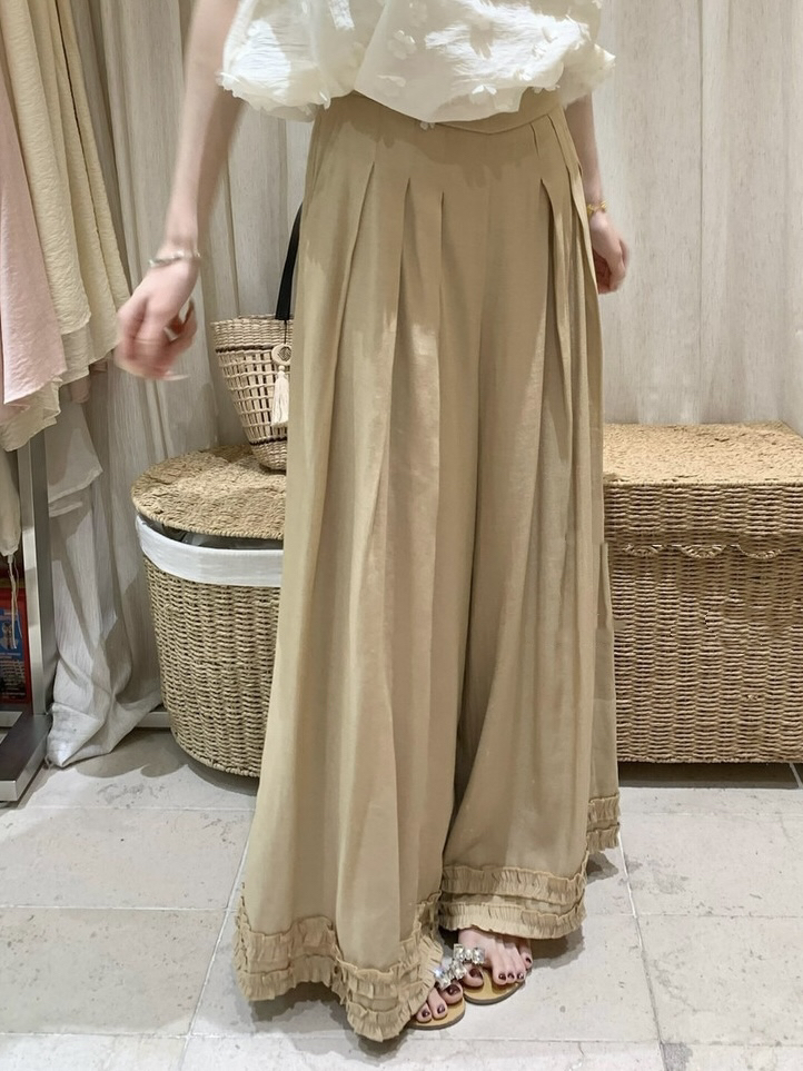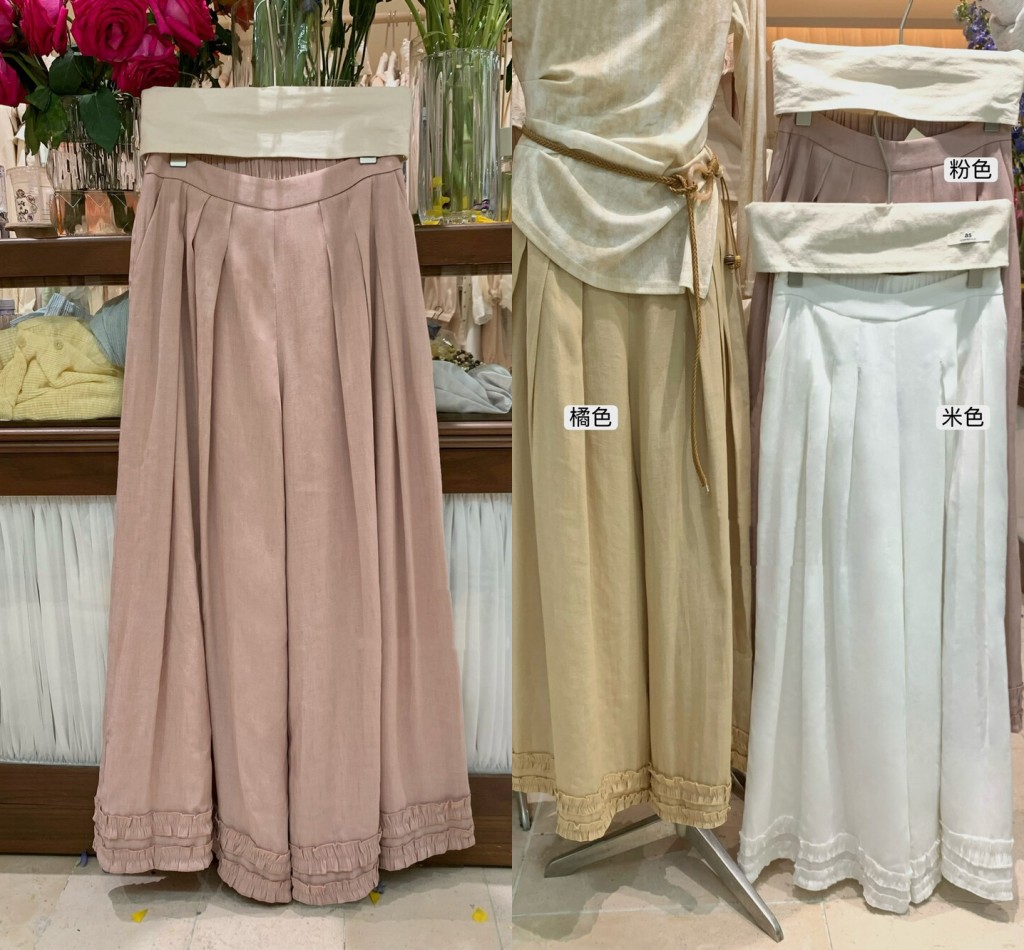 한국 스타일 프릴 9 포인트 꽃밭 바지 여성 2026 여름 디자인 센스 허리밴드 루즈핏 와이드 레깅스 바지