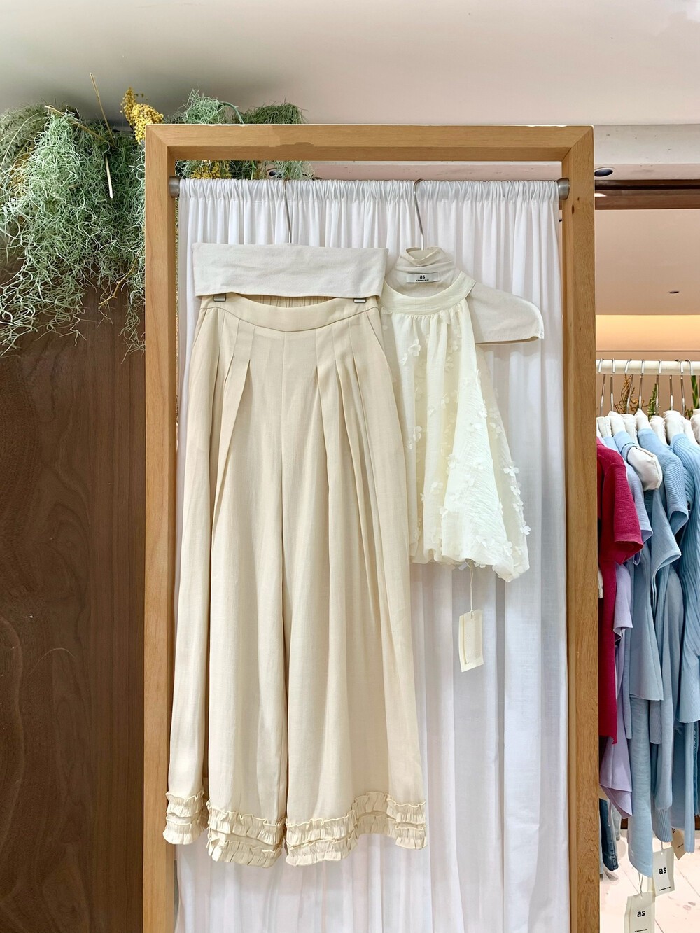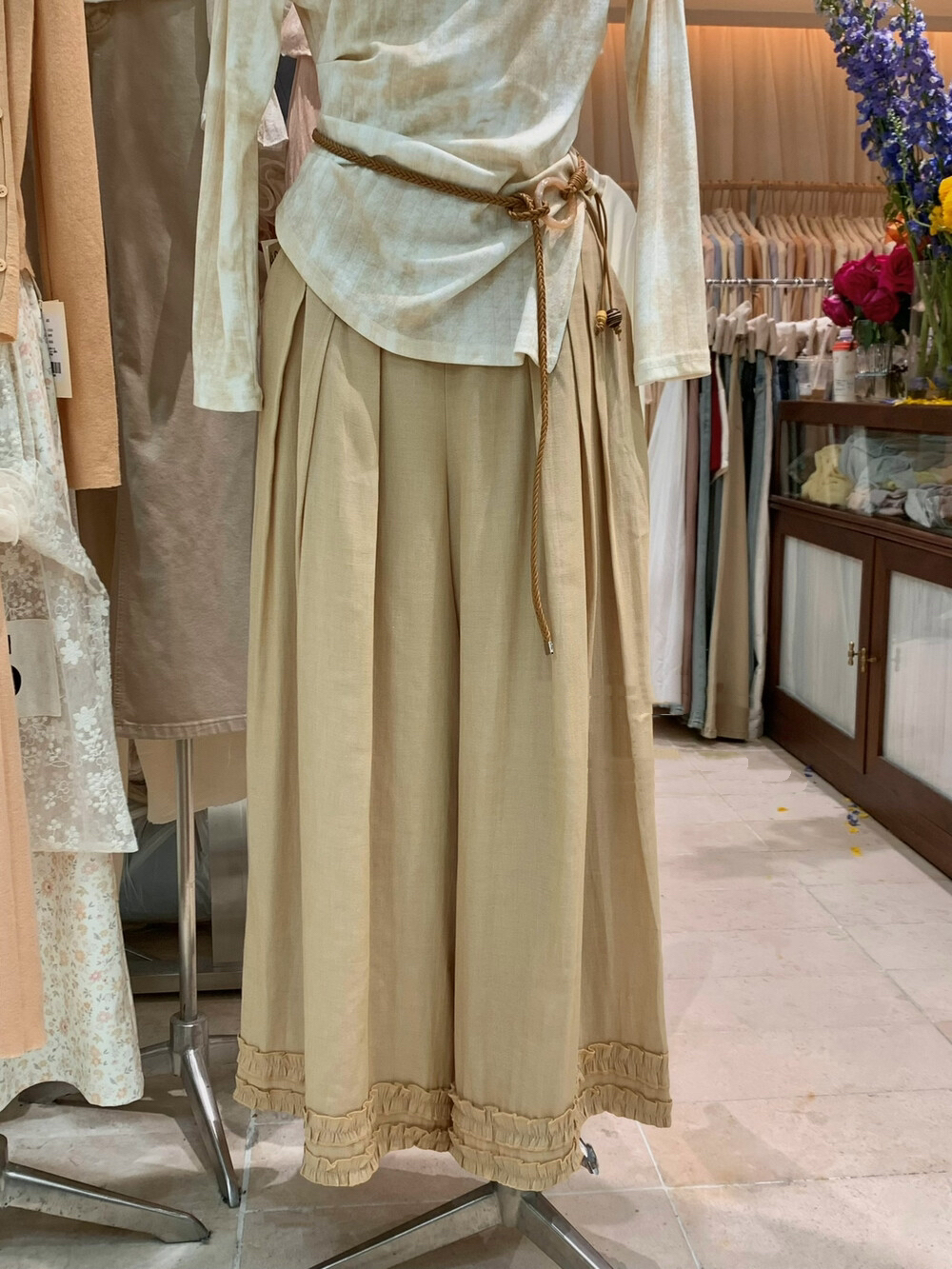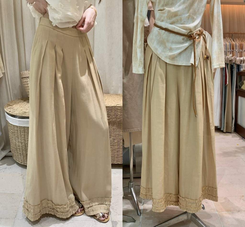 자수 레이스 와이드 레그 팬츠 디자인 센스 하이웨이스트 슬림해 보이는 허리밴드 레이스 패치워크 바지 도루 센스 캐주얼 바지