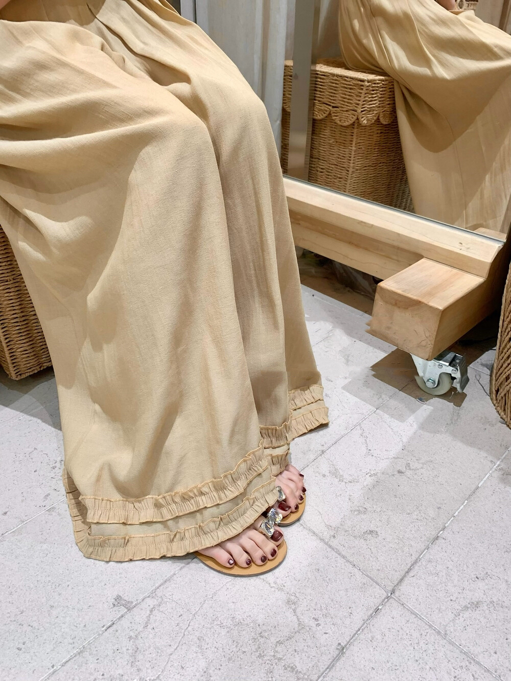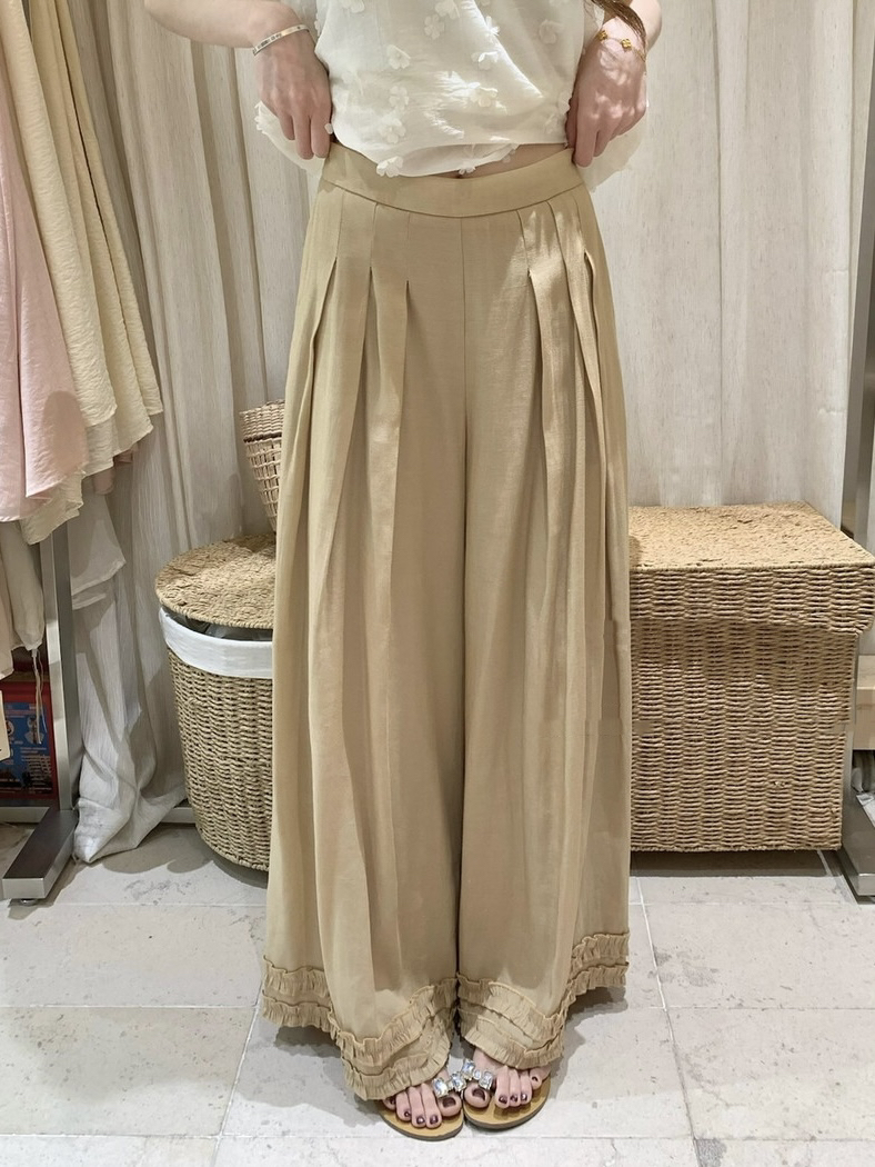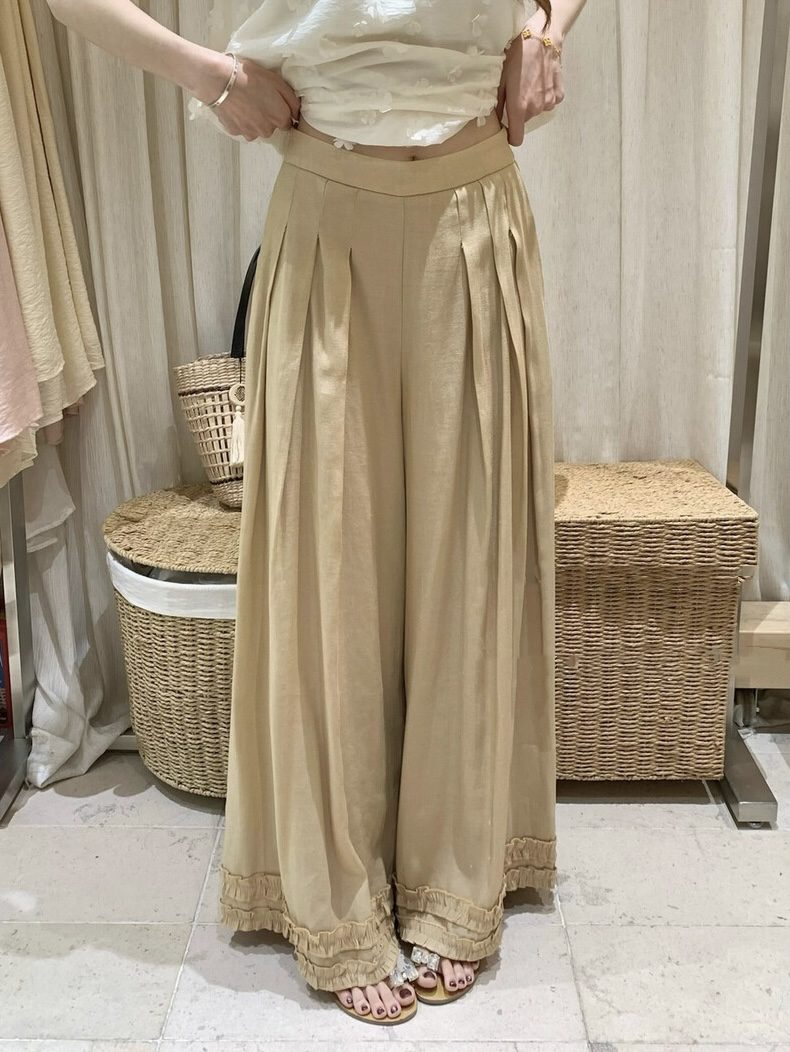 느슨함 센스 프릴 스트레이트 아마 캐주얼 바지 여성 2026 여름 새로운 느긋한 다용도 화이트 와이드 레그 팬츠