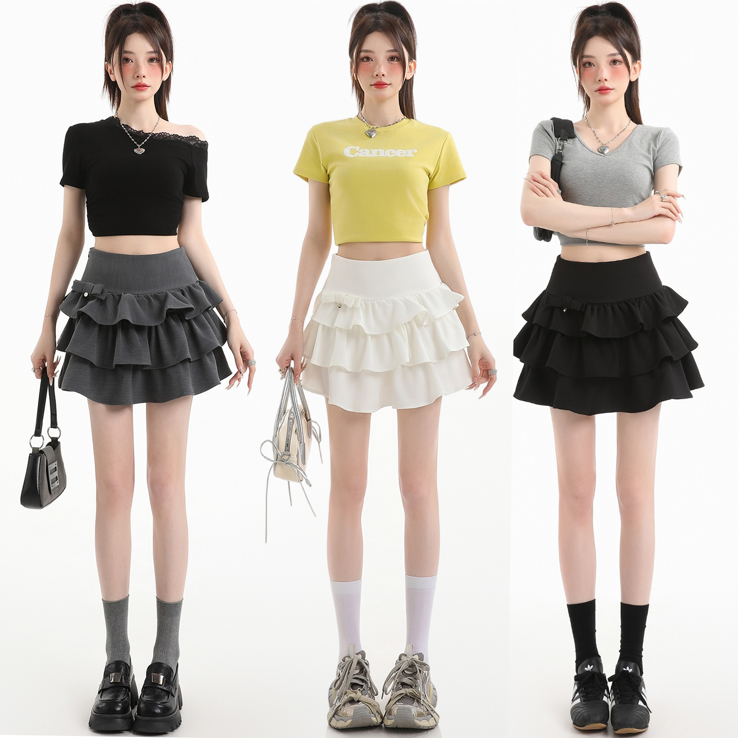 실사 발레 바람 케이크 드레스 반신 스커트 여성 여름 디자인 센스 하이웨이스트 슬림해 보이는 프릴 한 마디 퍼프 미니 스커트