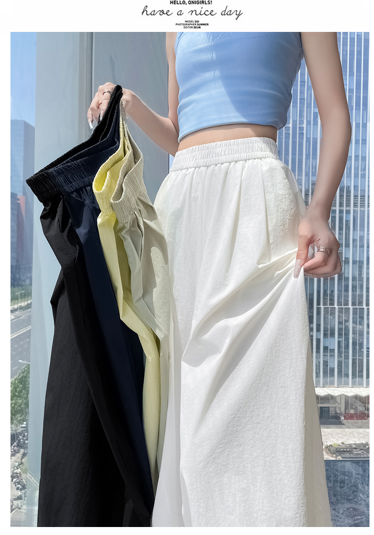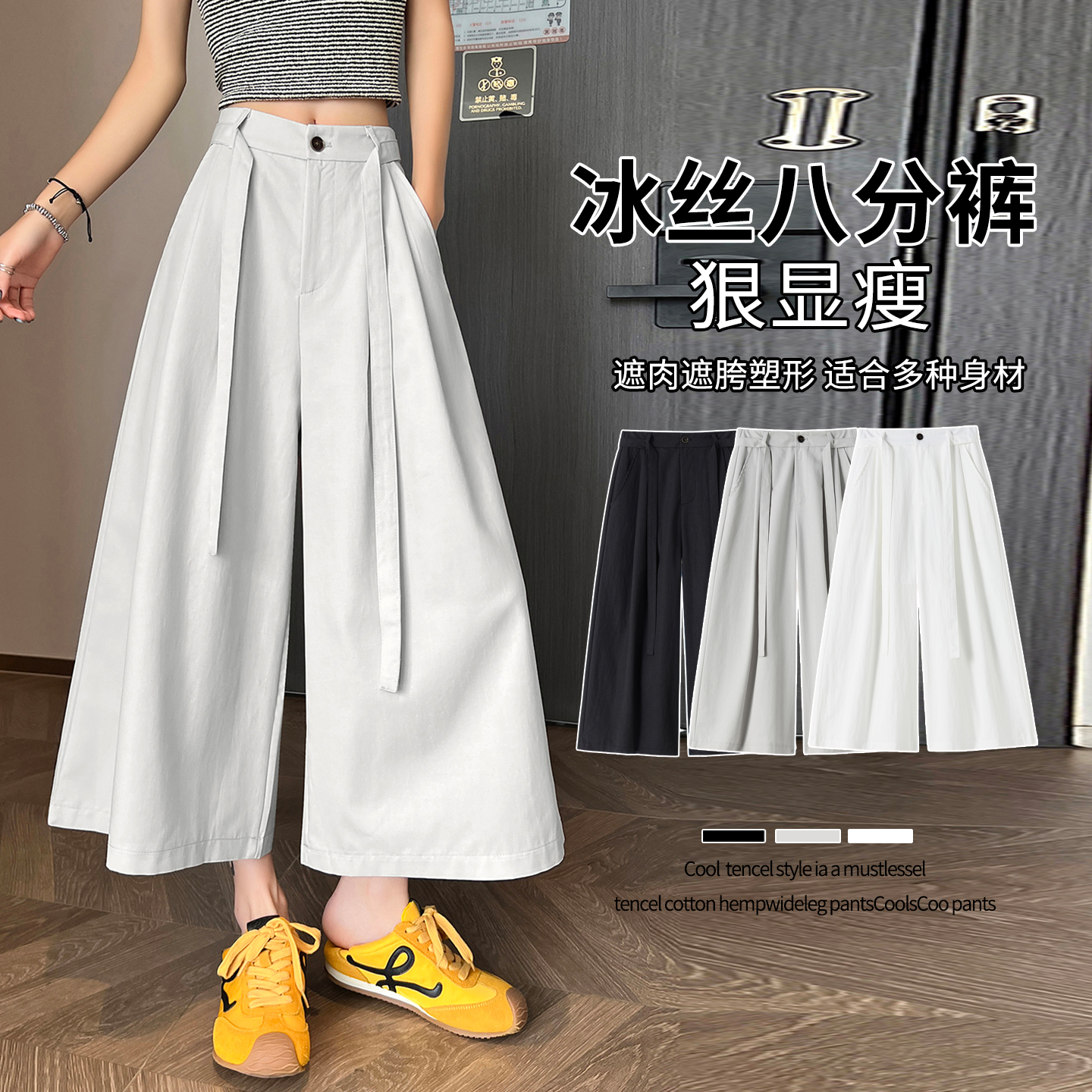 실사 얼음 실크 면 린넨 스트랩 정장 와이드 레깅스 바지 여름 하이웨이스트 슬림해 보이는 캐주얼 바닥 청소 스트레이트 야마모토 바지