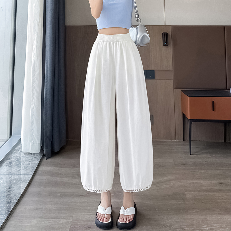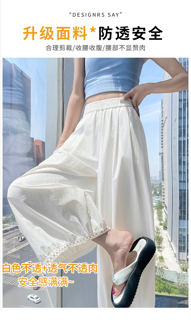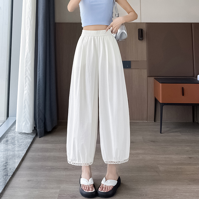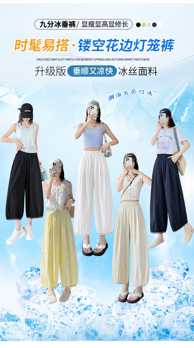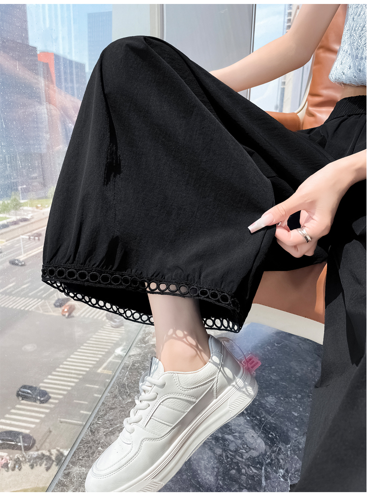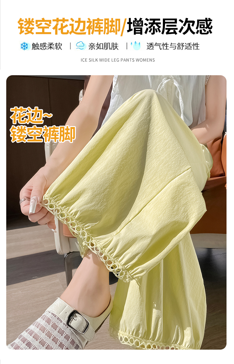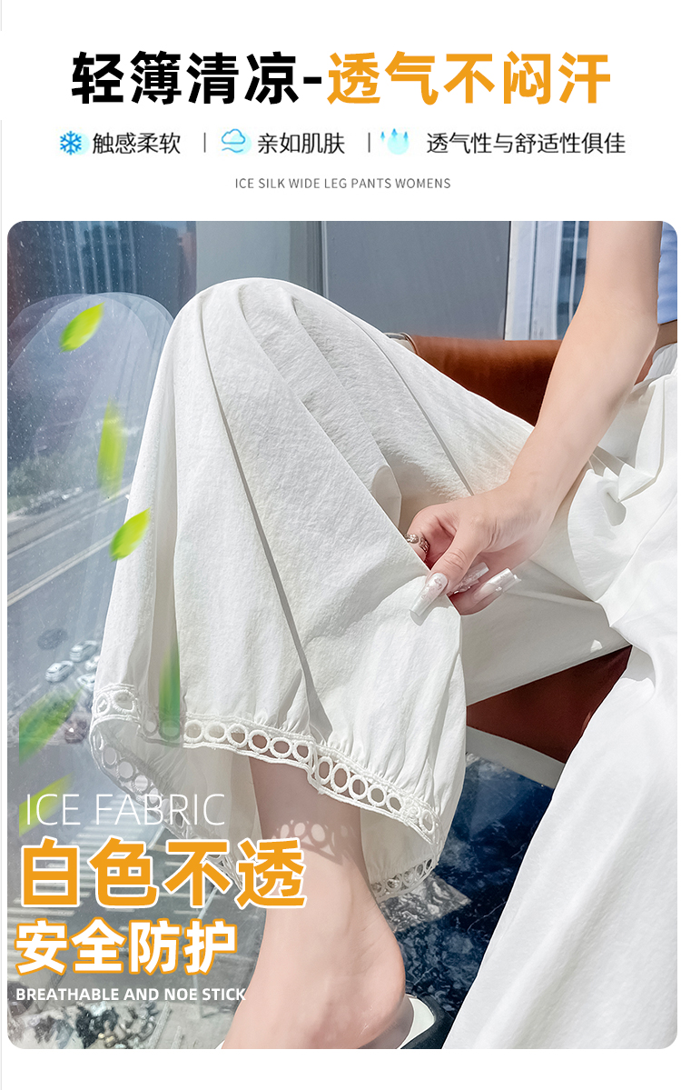 실사 얼음 실크 면 린넨 홀로우 아웃 와이드 레깅스 바지 2026 여름 하이웨이스트 슬림해 보이는 정장 캐주얼 9 포인트 스트레이트 팬츠