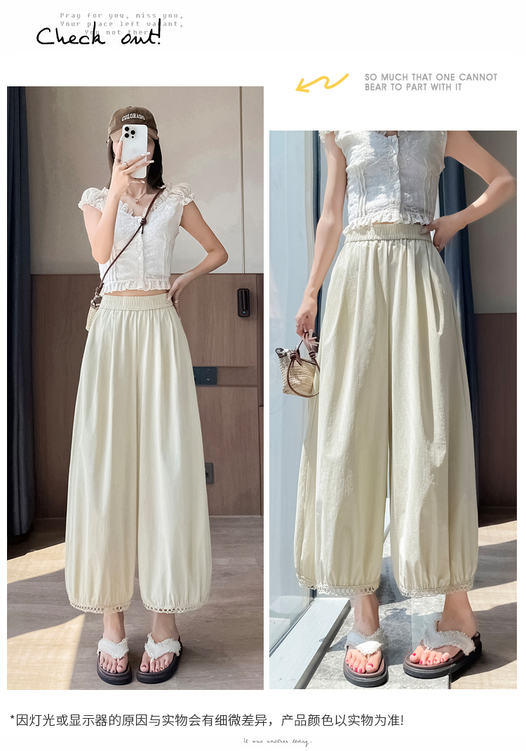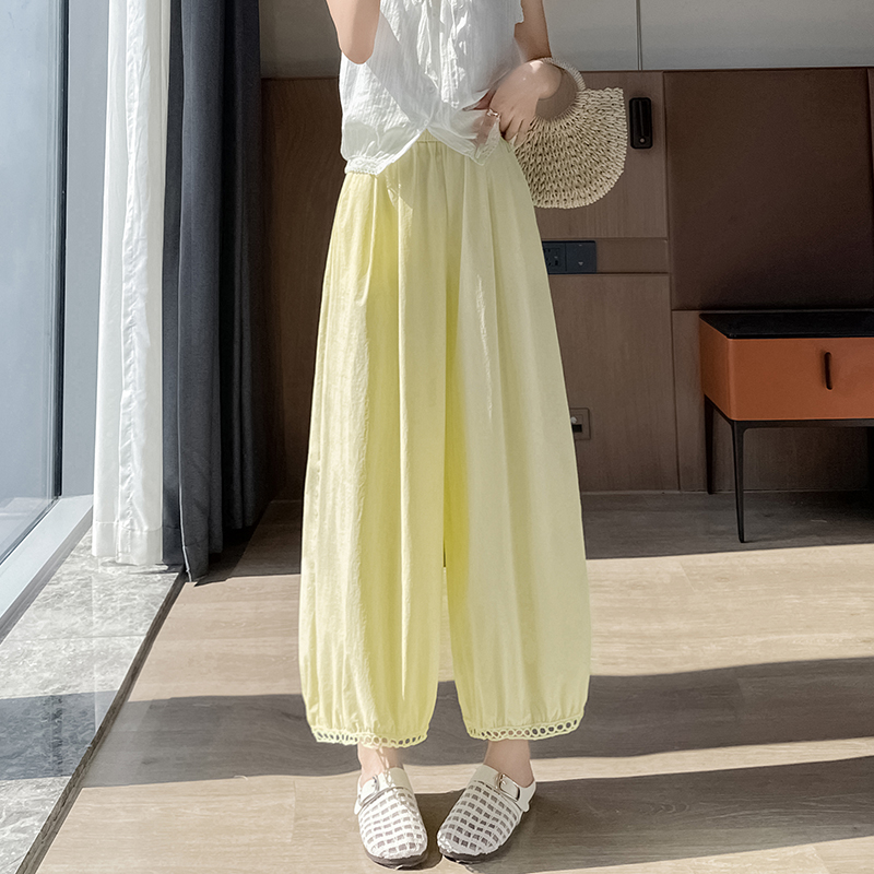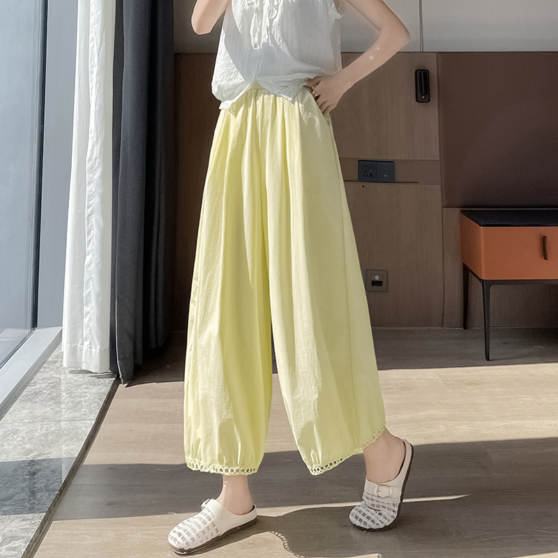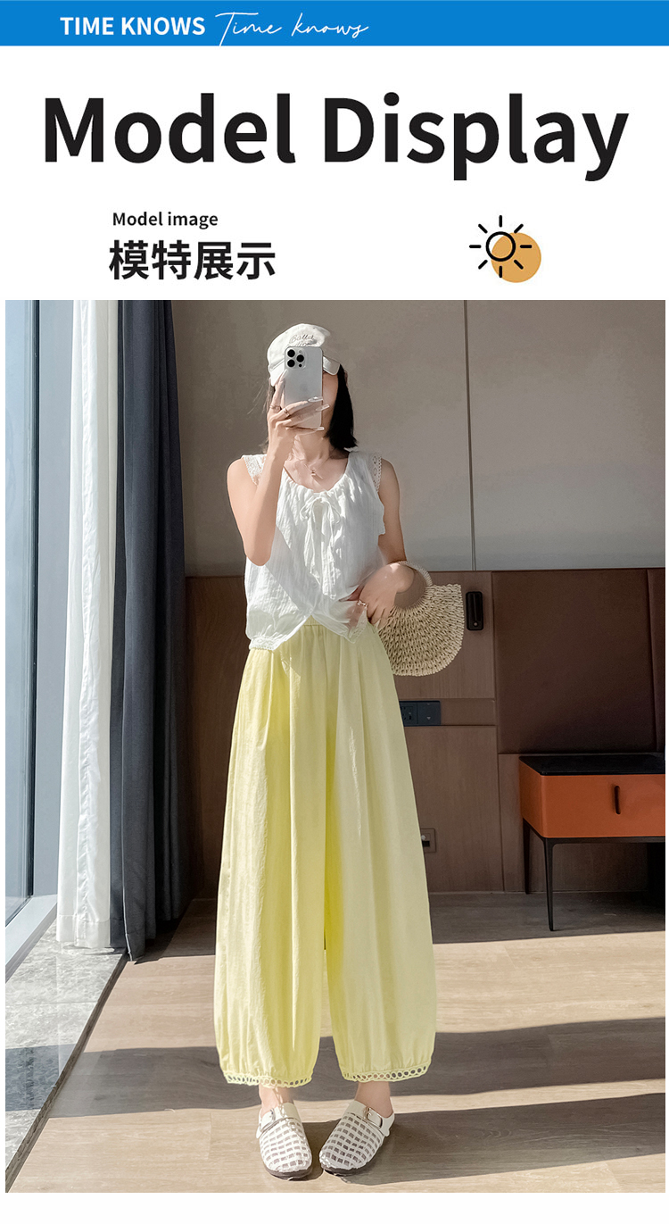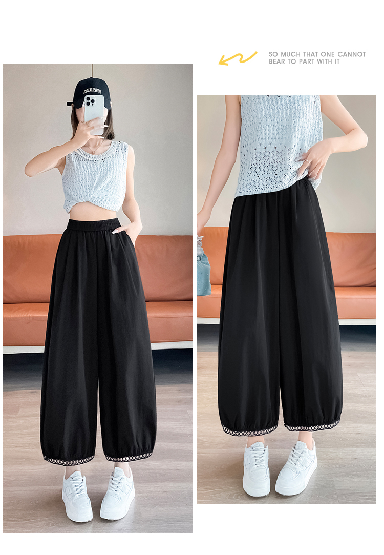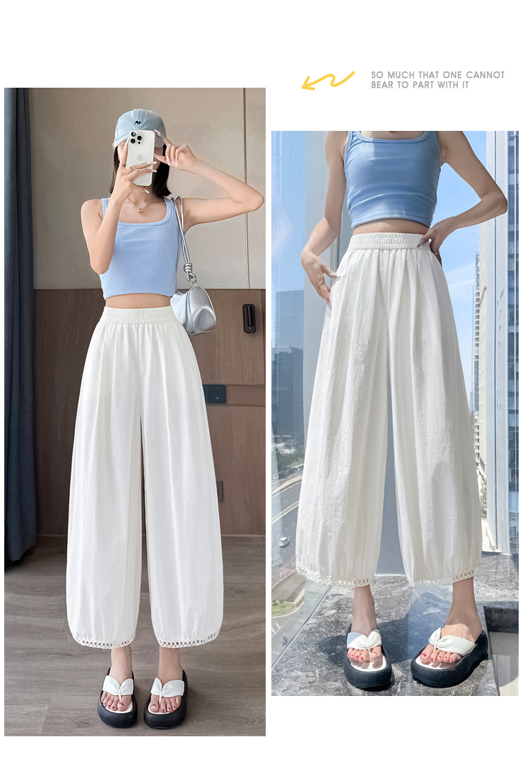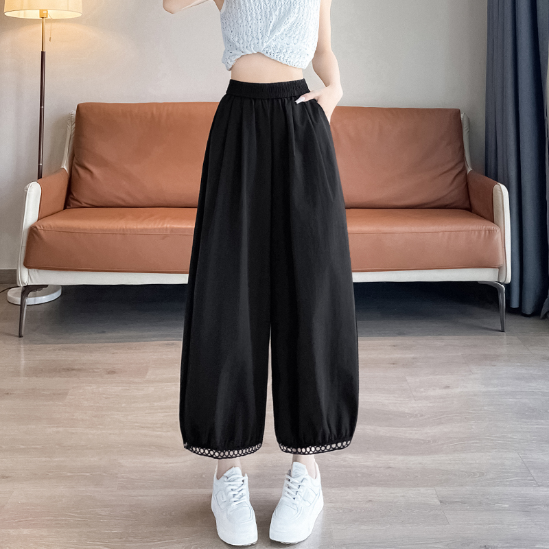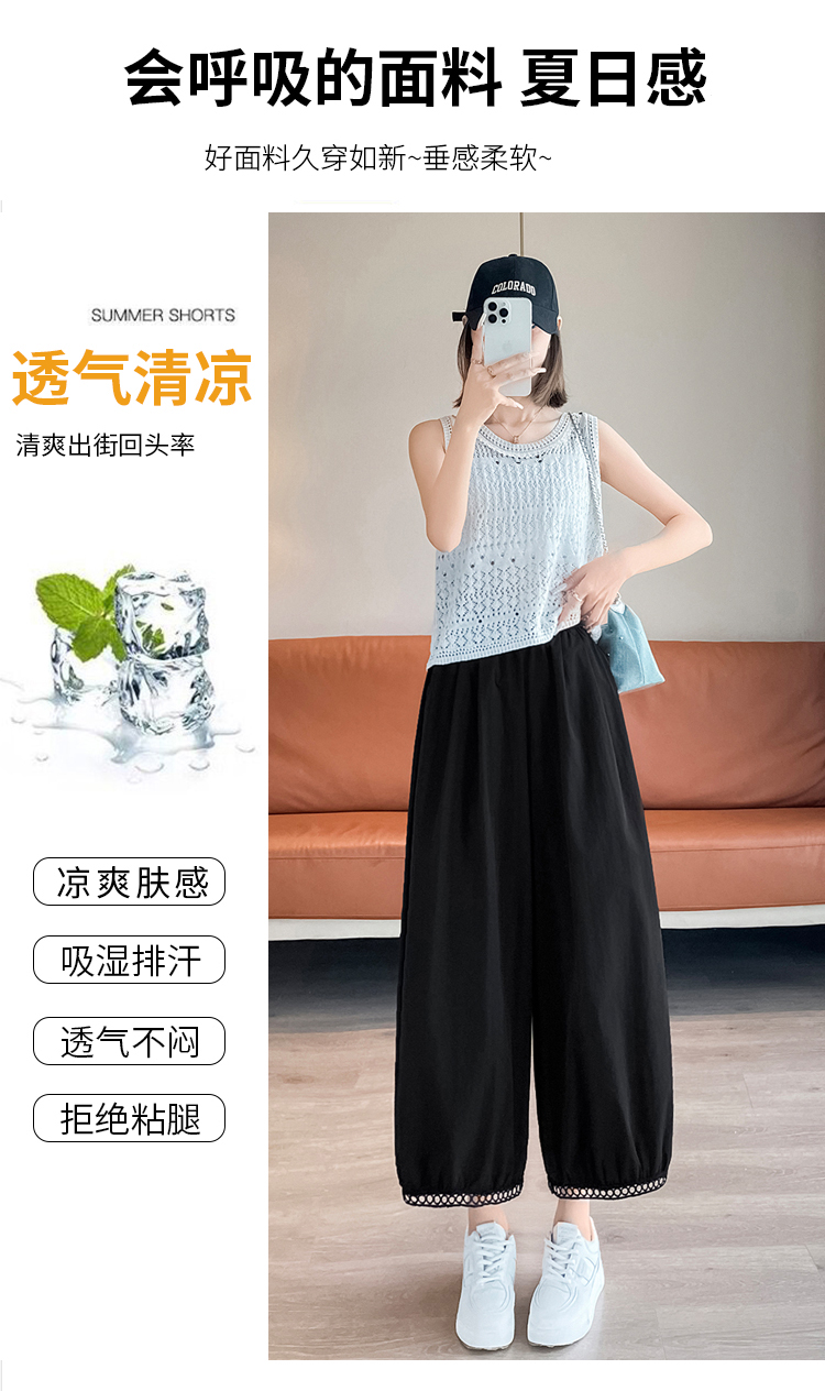 실사 얼음 실크 면 린넨 홀로우 아웃 와이드 레깅스 바지 2026 여름 하이웨이스트 슬림해 보이는 정장 캐주얼 9 포인트 스트레이트 팬츠
