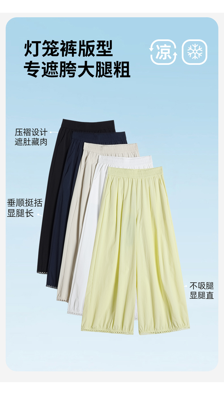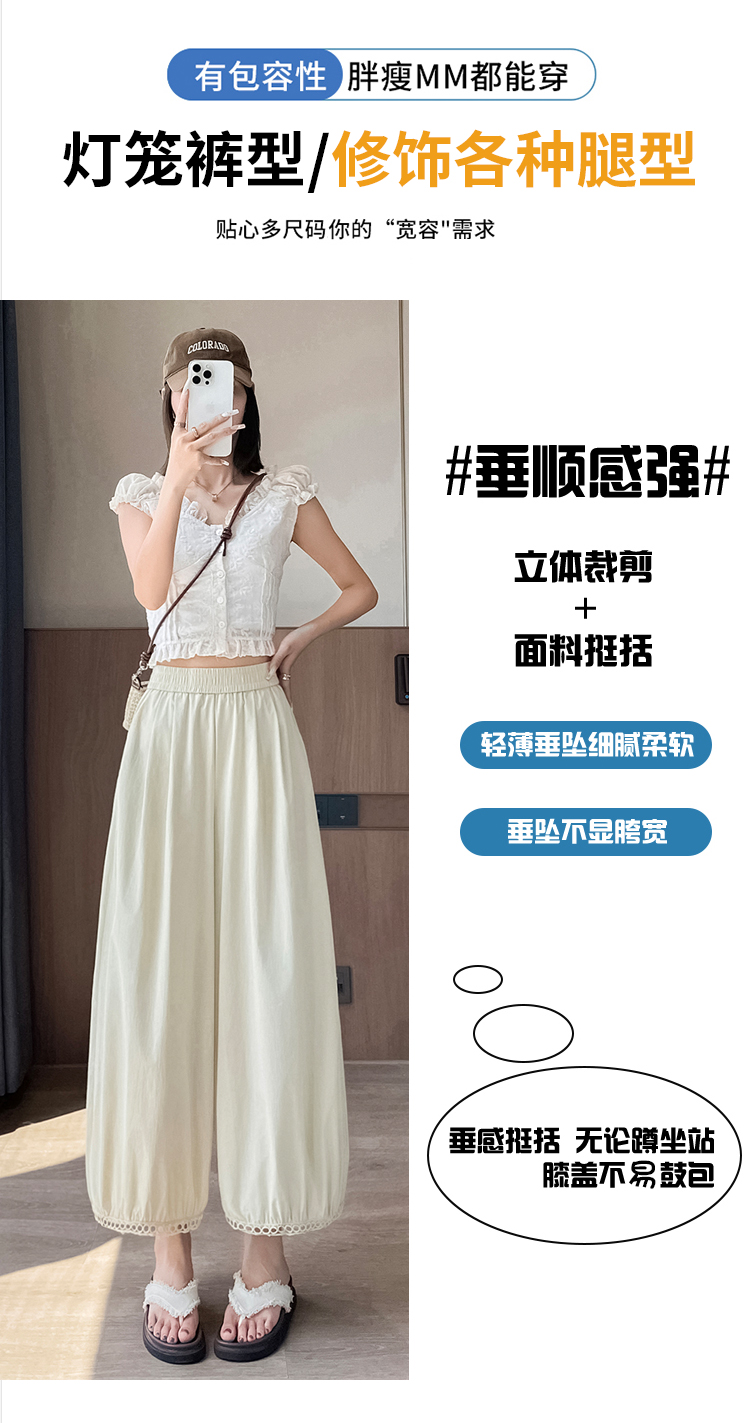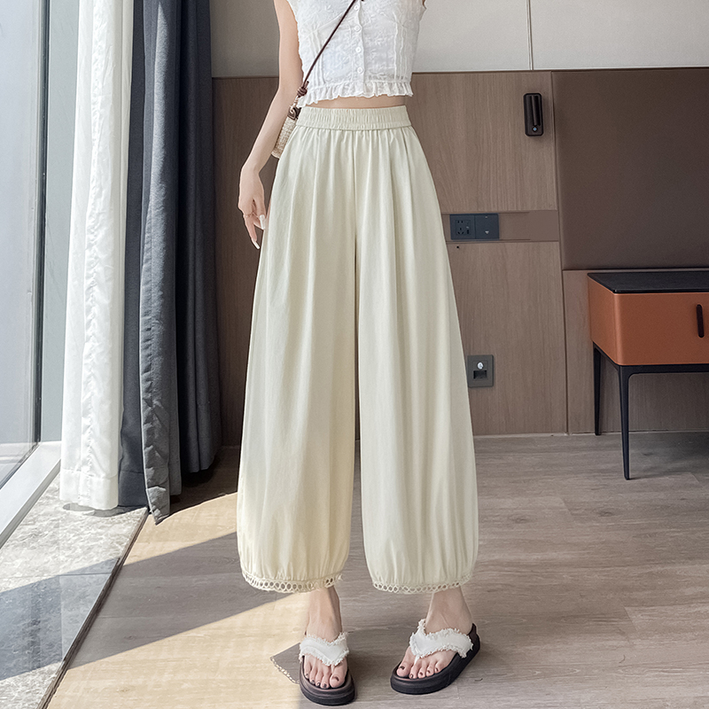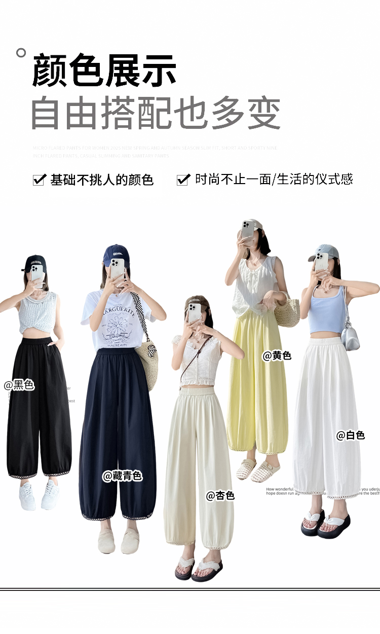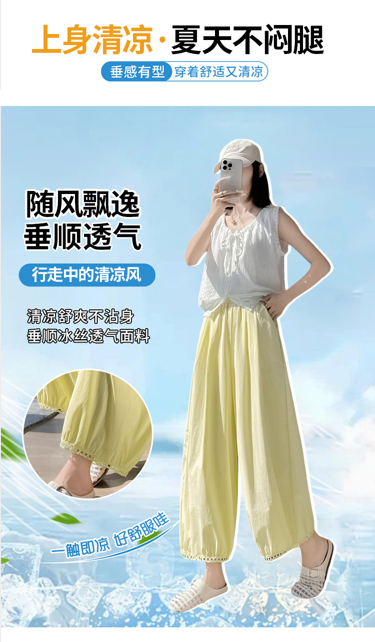 실사 얼음 실크 면 린넨 모통이 칼 바지 여성 2026 여름 하이웨이스트 슬림해 보이는 루즈핏 느긋한 바람 캐주얼 운동 와이드 레그 팬츠