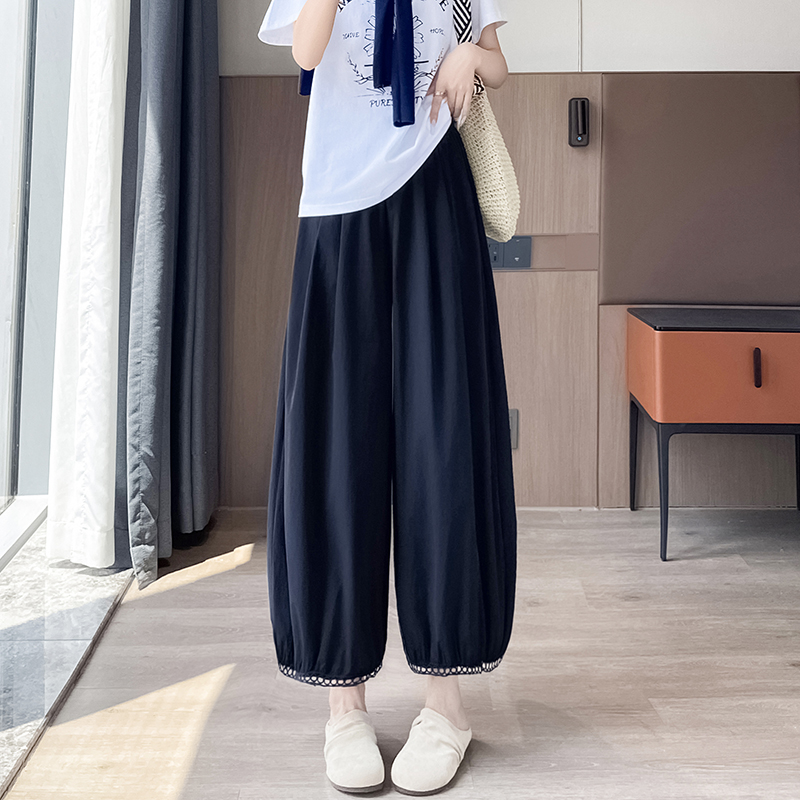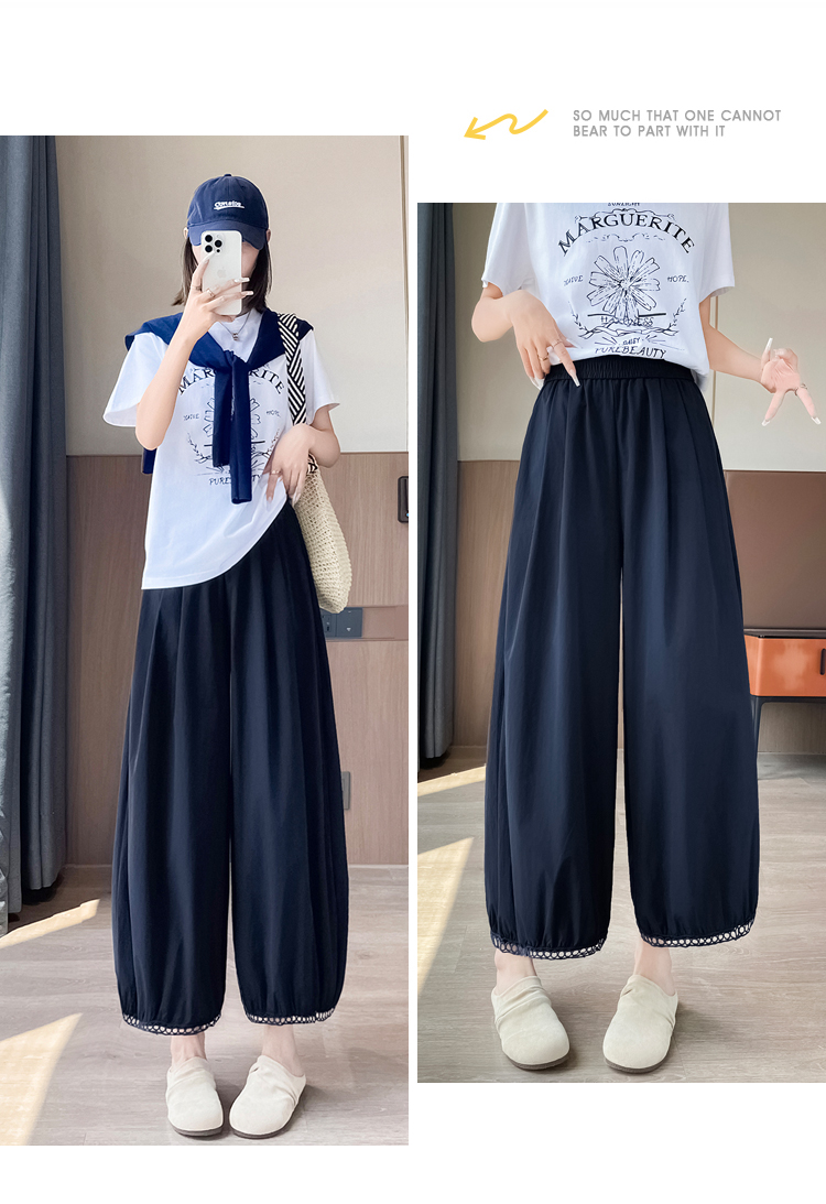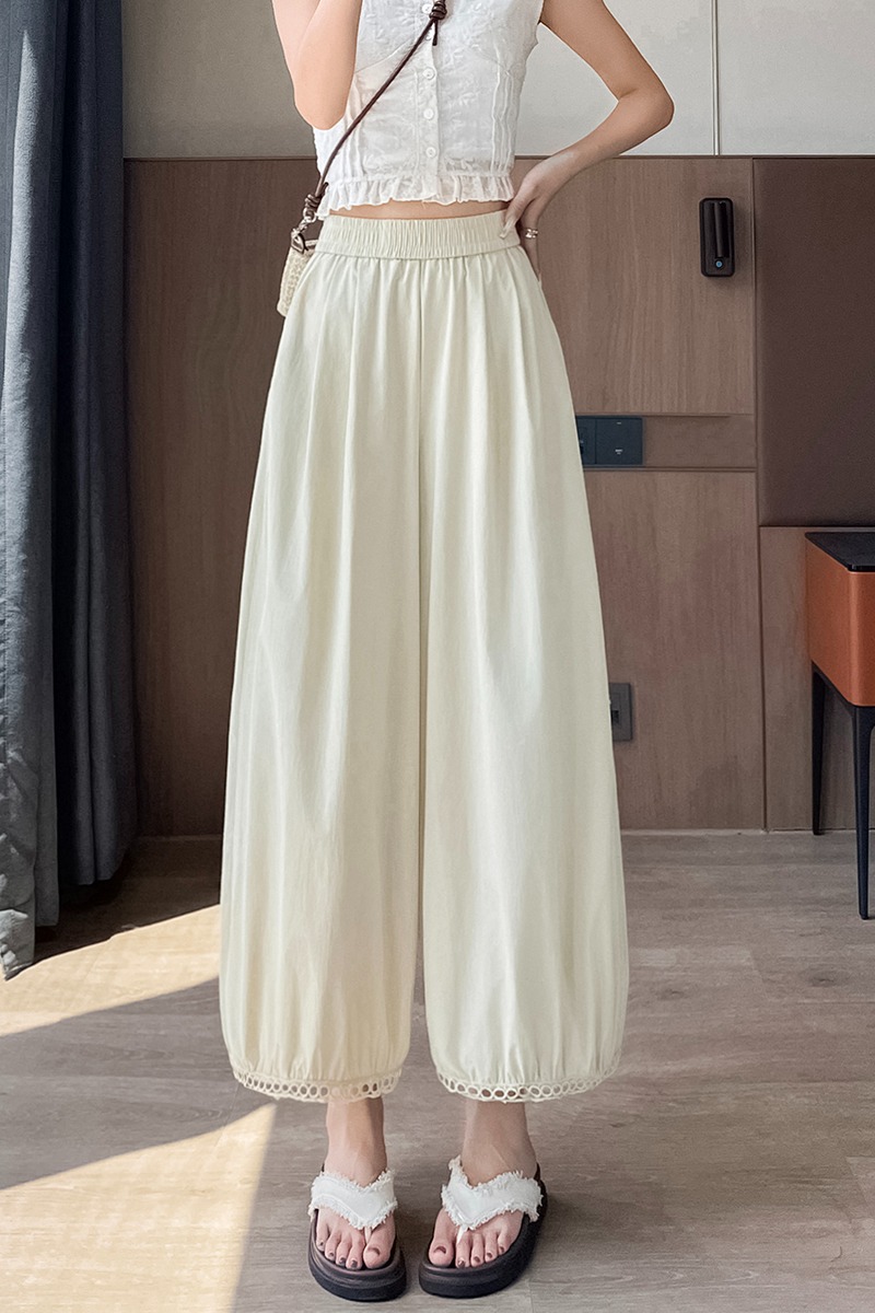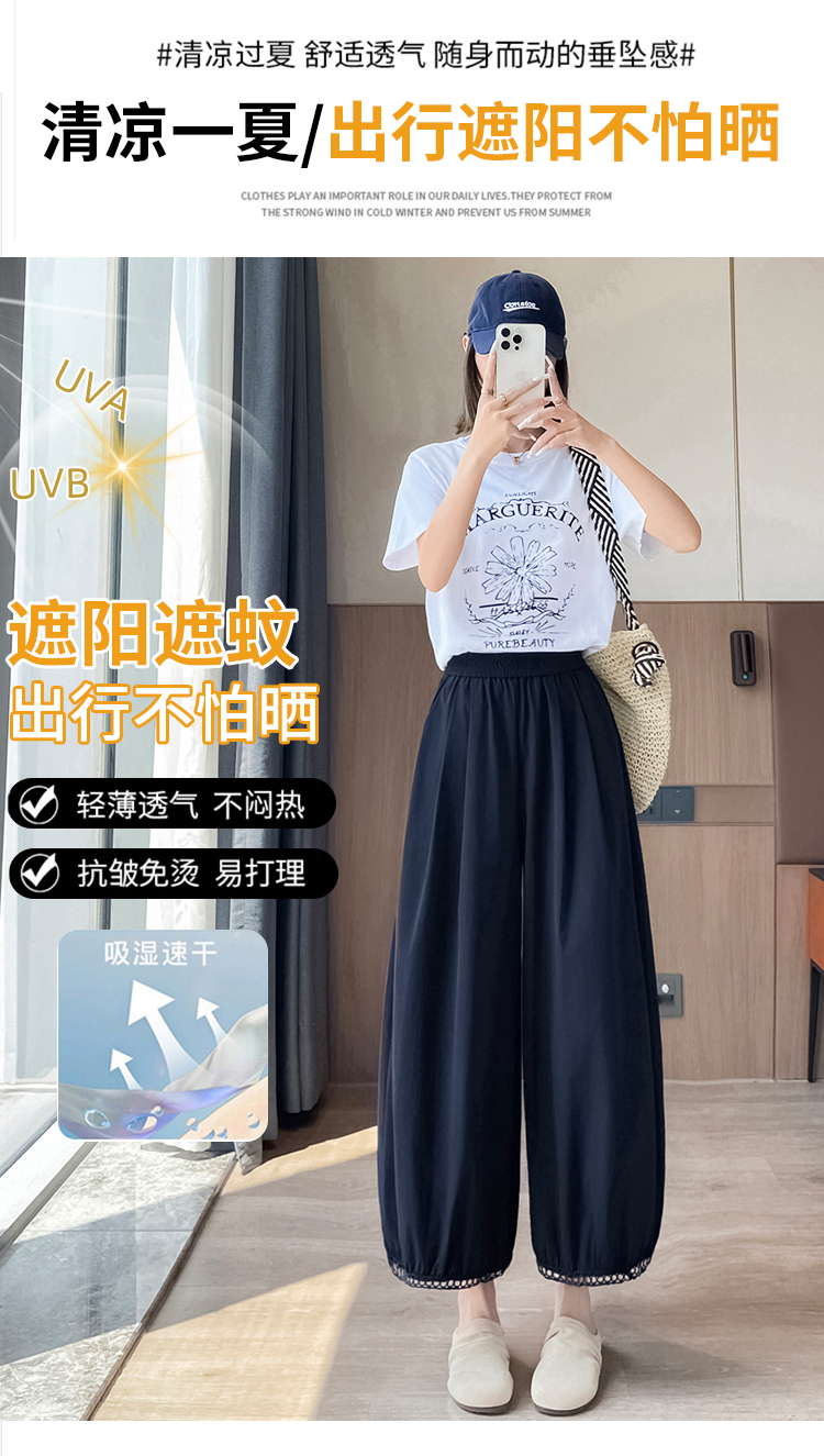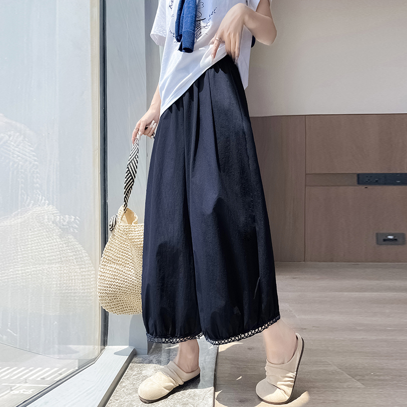 실사 얼음 실크 면 린넨 모통이 칼 바지 여성 2026 여름 하이웨이스트 슬림해 보이는 루즈핏 느긋한 바람 캐주얼 운동 와이드 레그 팬츠