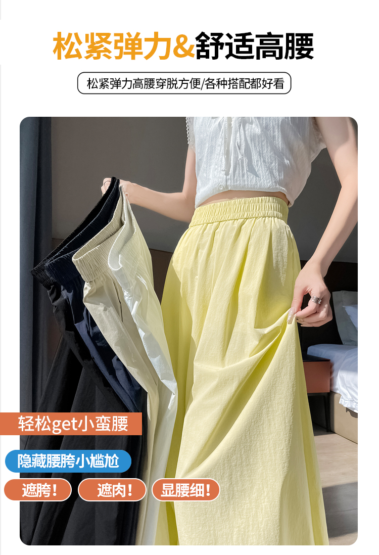 실사 얼음 실크 면 린넨 페이크 레이어드 방귀 커튼 치마바지 여성 2026 여름 도루 센스 와이드 레그 팬츠 아마 캐주얼 스트레이트 팬츠