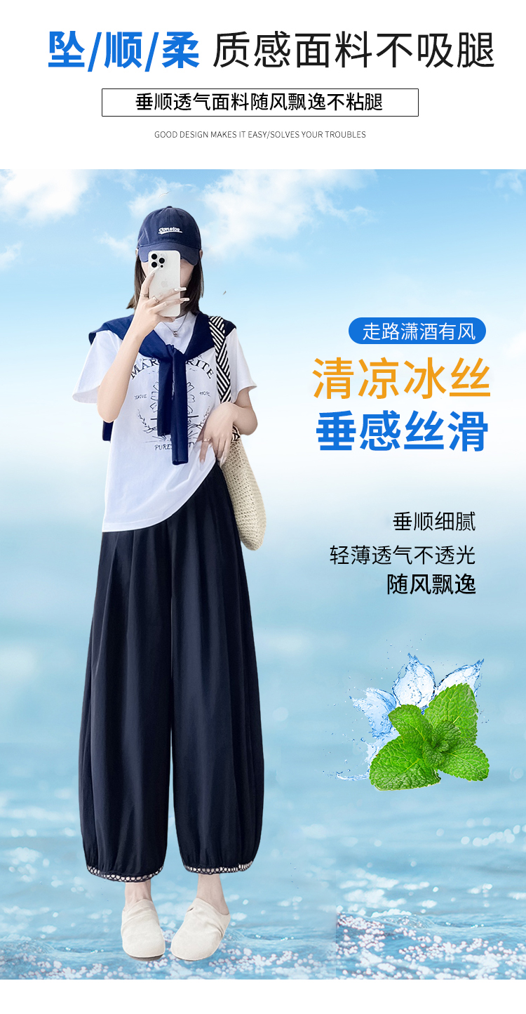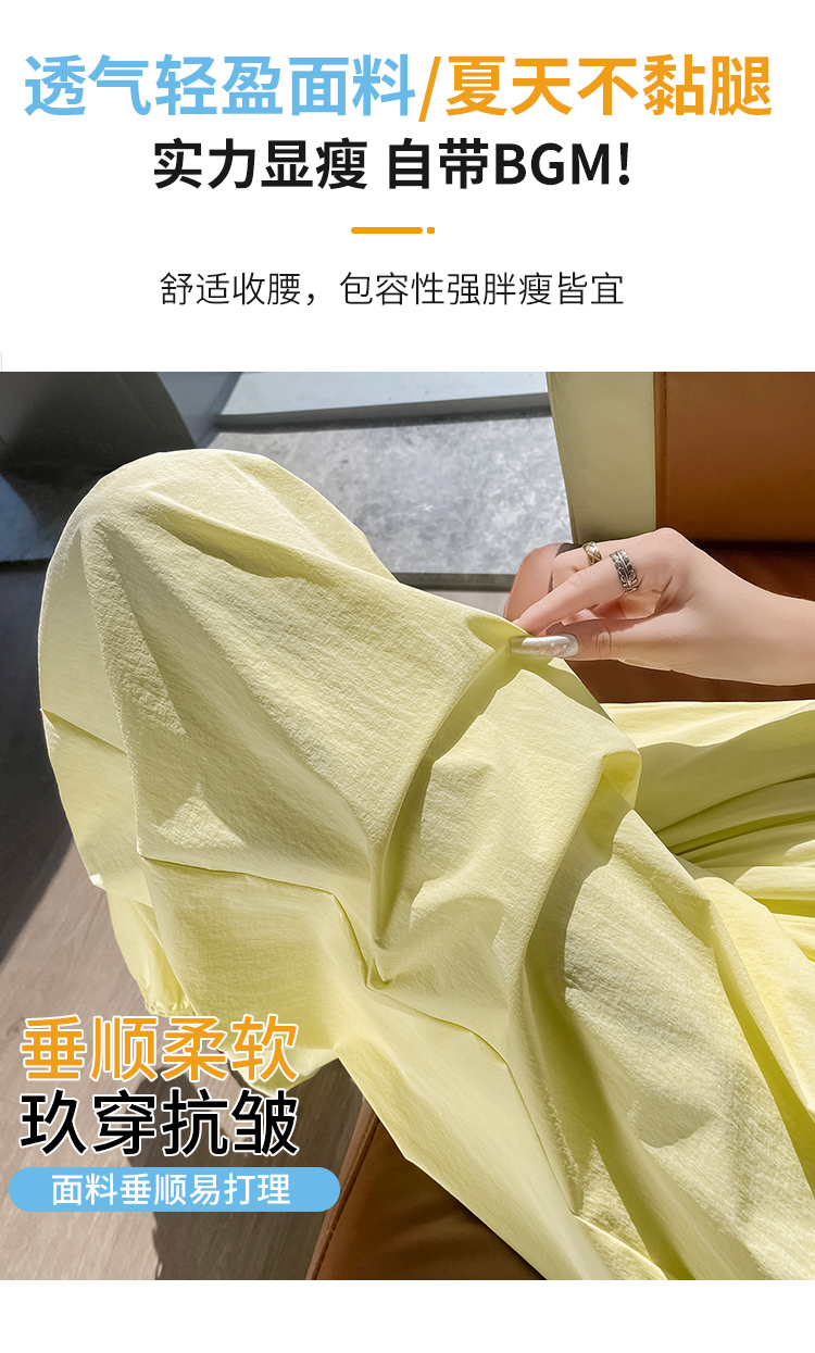 실사 얼음 실크 정장 와이드 레깅스 바지 2026 여름 하이웨이스트 루즈핏 스트레이트 슬림해 보이는 도루 센스 캐주얼 바닥 청소 바지