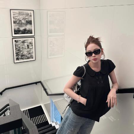 goo goo eyes 라이 경기 서울 주간 실크 코튼 이중 버튼 반팔 인형 셔츠 맨위 여성 여름 한 마디 진자 셔츠