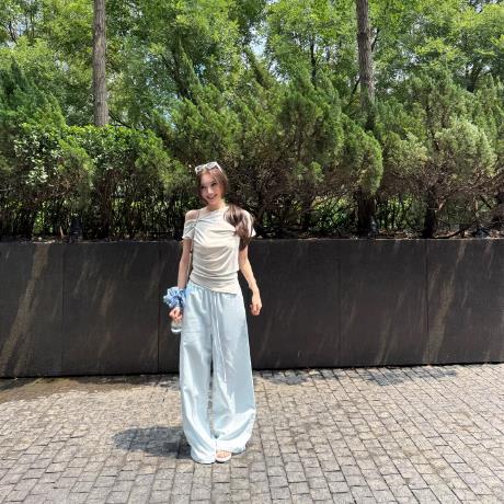 e go studio 100 일 실크 얼음 센스 실크 미끄러짐 흔들다 칼라 수 있습니다. 비스듬한 어깨 오프숄더 오래된 돈 느슨함 센스 모직물 티셔츠