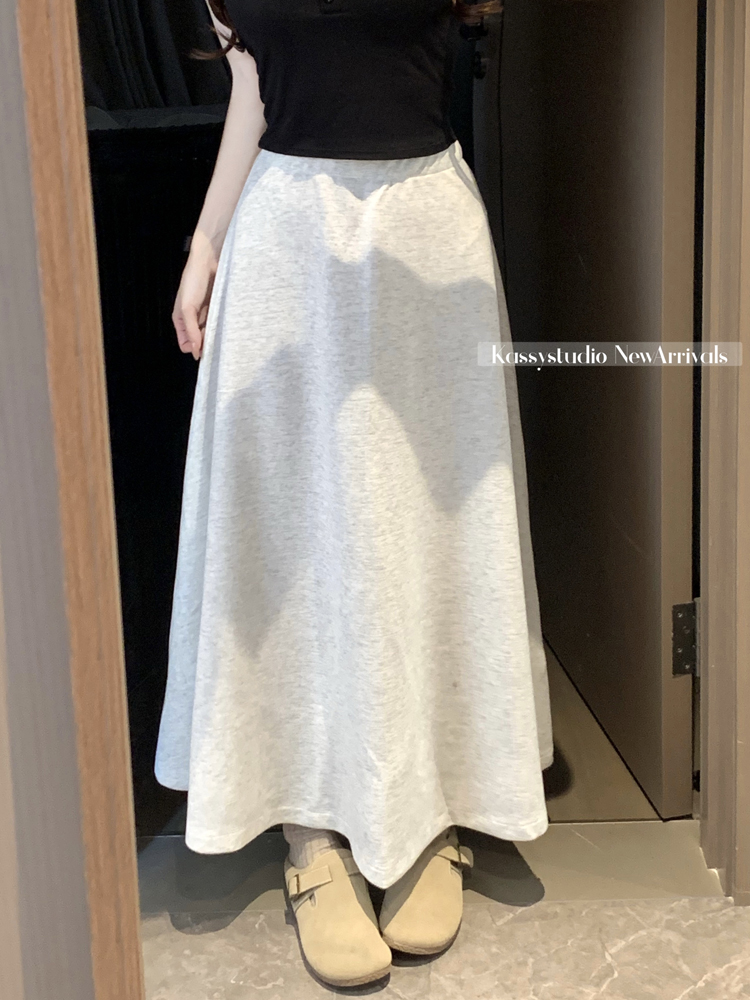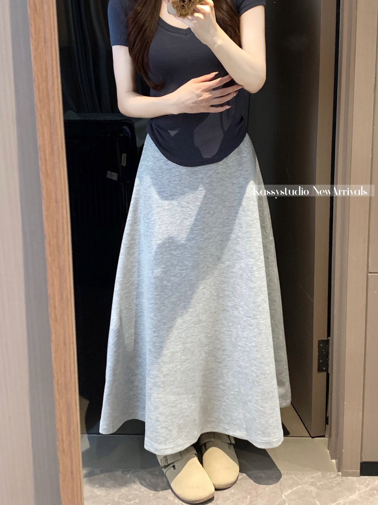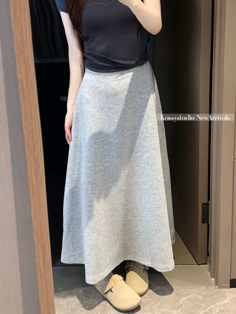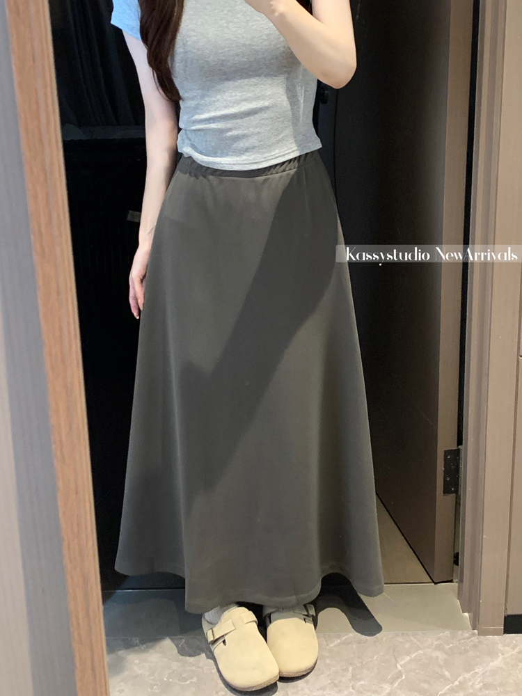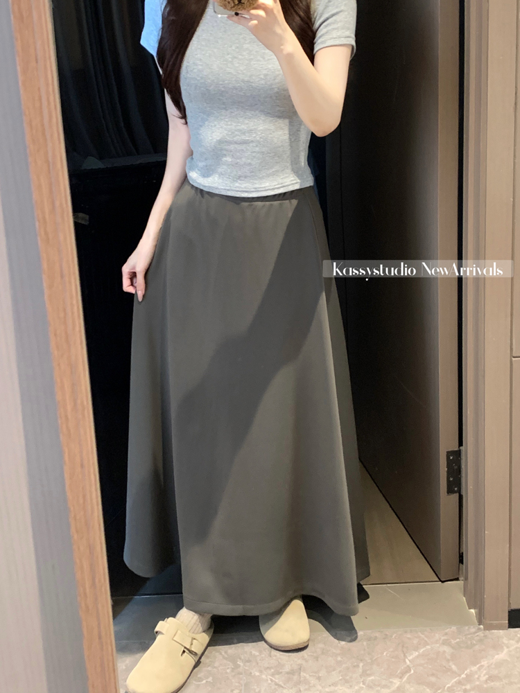 실사 회색 치마 하이웨이스트 한 마디 반신 롱 스커트 여성 2026 여름 새로운 슬림해 보이는 품격 도루 센스 타이트 스커트