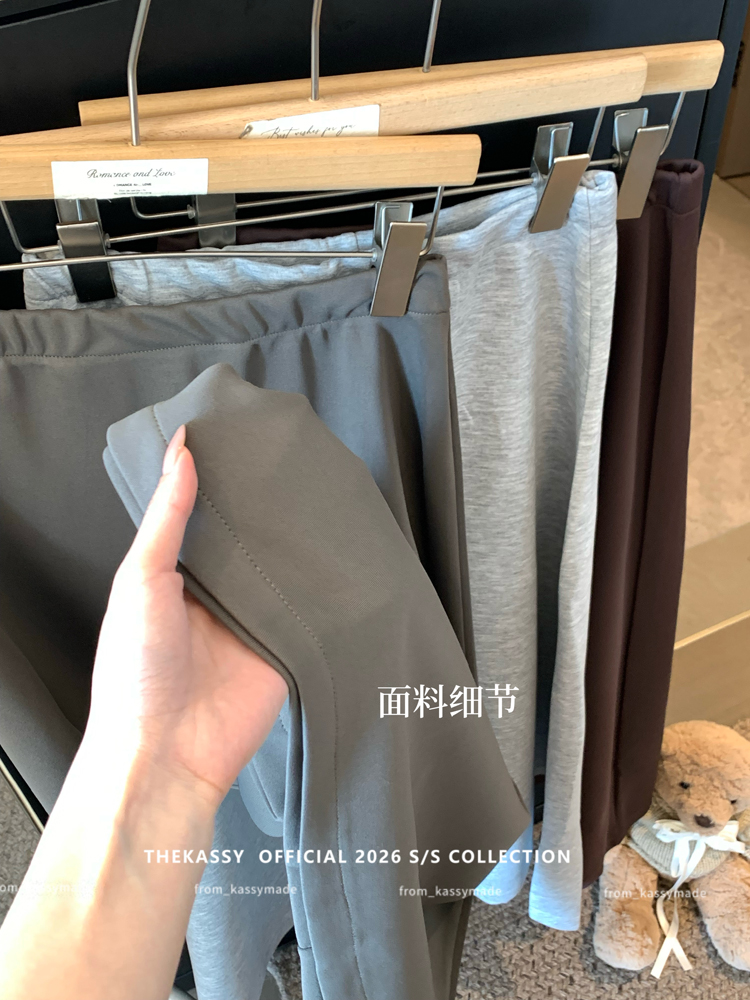 실사 느긋한 센스 캐주얼 바지 여성 여름 단색 허리밴드 바지 슬림해 보이는 와이드 레그 팬츠 루즈핏 도루 센스 바닥 청소 바지