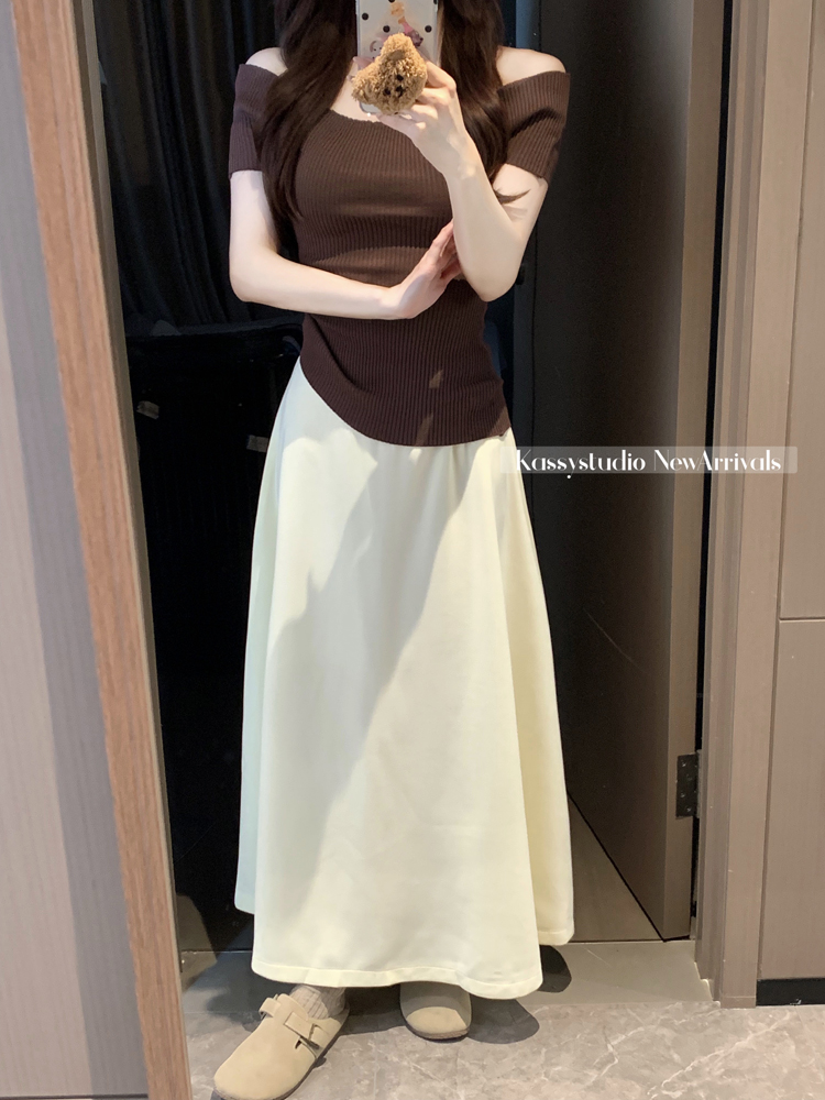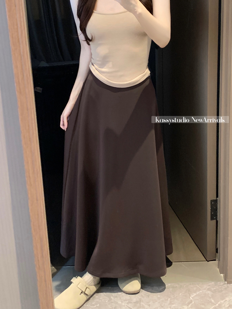 실사 봄 여름 새로운 다용도 정장 치마 하이웨이스트 중간 길이 반신 스커트 한 마디 롱 스커트 품격 플리츠 스커트 우산 치마