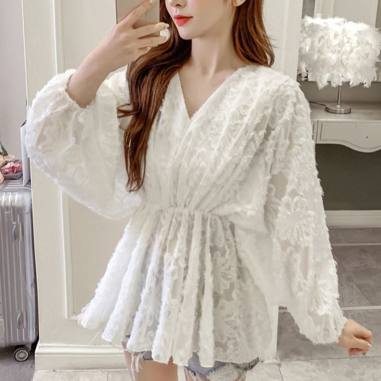쉬폰 여성 셔츠 루즈핏 표지 배 슬림해 보이는 외국 가스 맨위 레이스 기본 셔츠