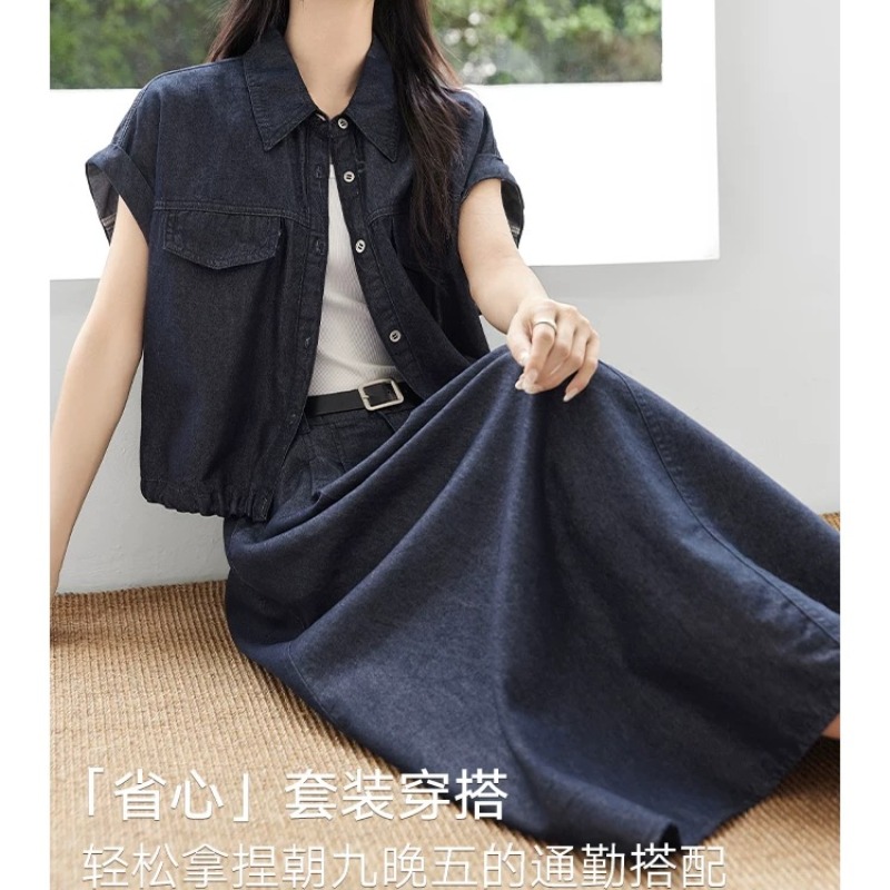 자이언트 잘 생긴 ~ 중 여름 전체 집합 한 부서 품격 부드러운 바람 흔들다 칼라 반팔 티셔츠 여성 반신 스커트 투피스 슈트