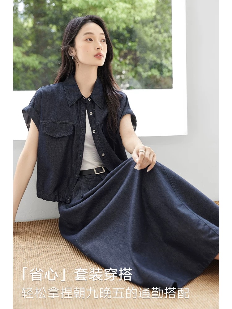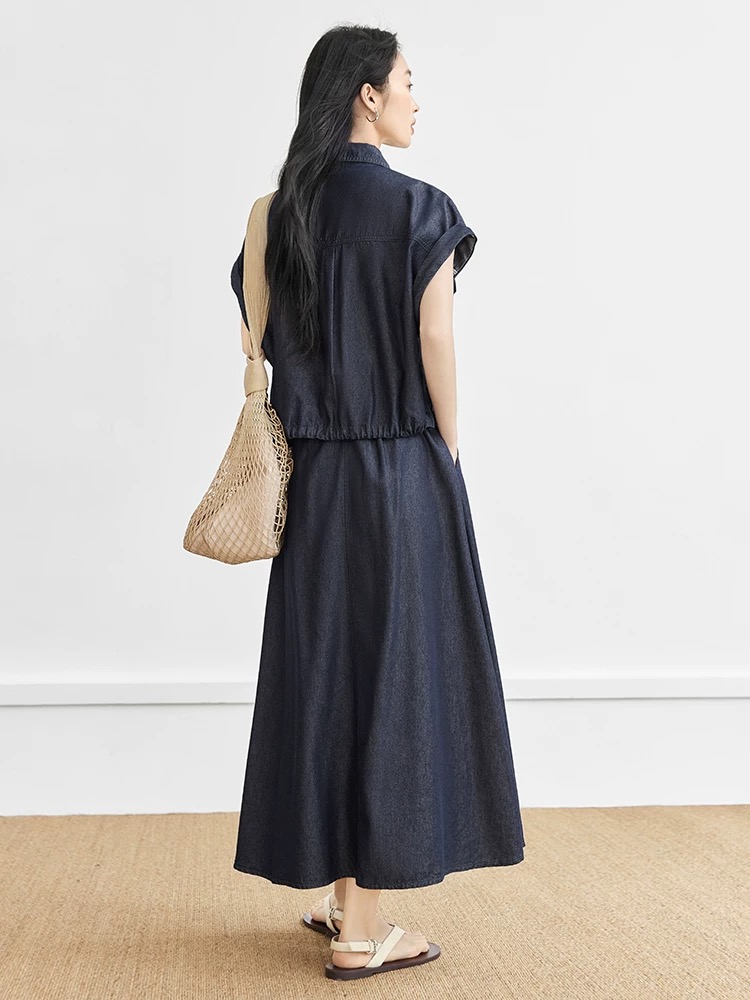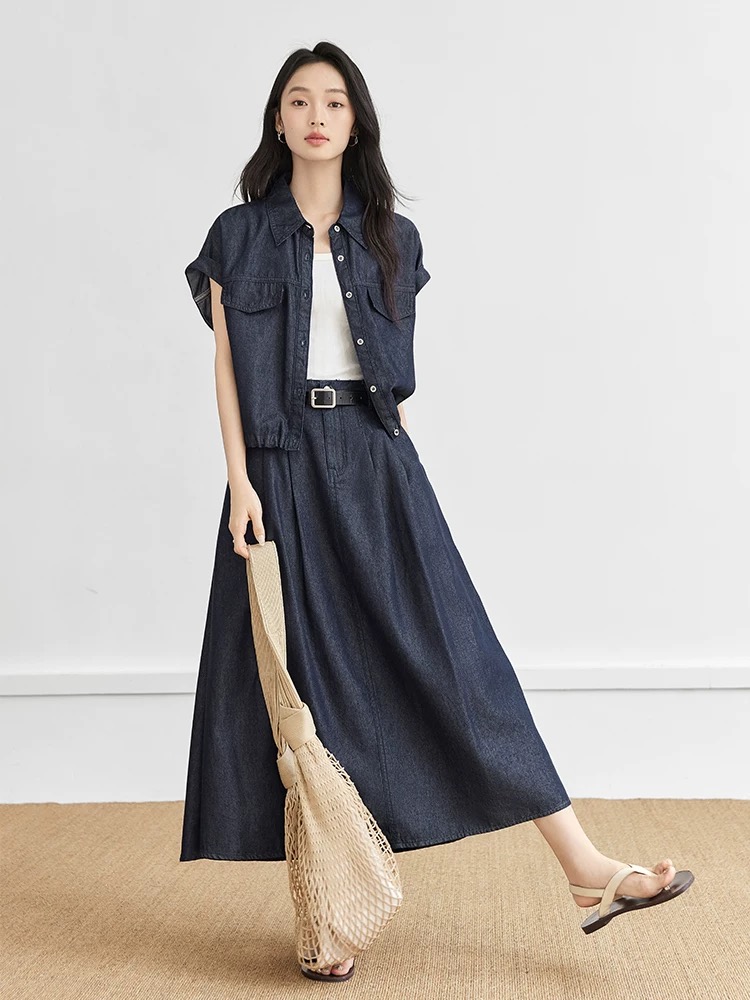 1월 일요일 차가운 바람의 소리 데님 베스트 세트 캐주얼 슬림해 보이는 단색 여름 새로운 한국 스타일 청바지 투피스 세트
