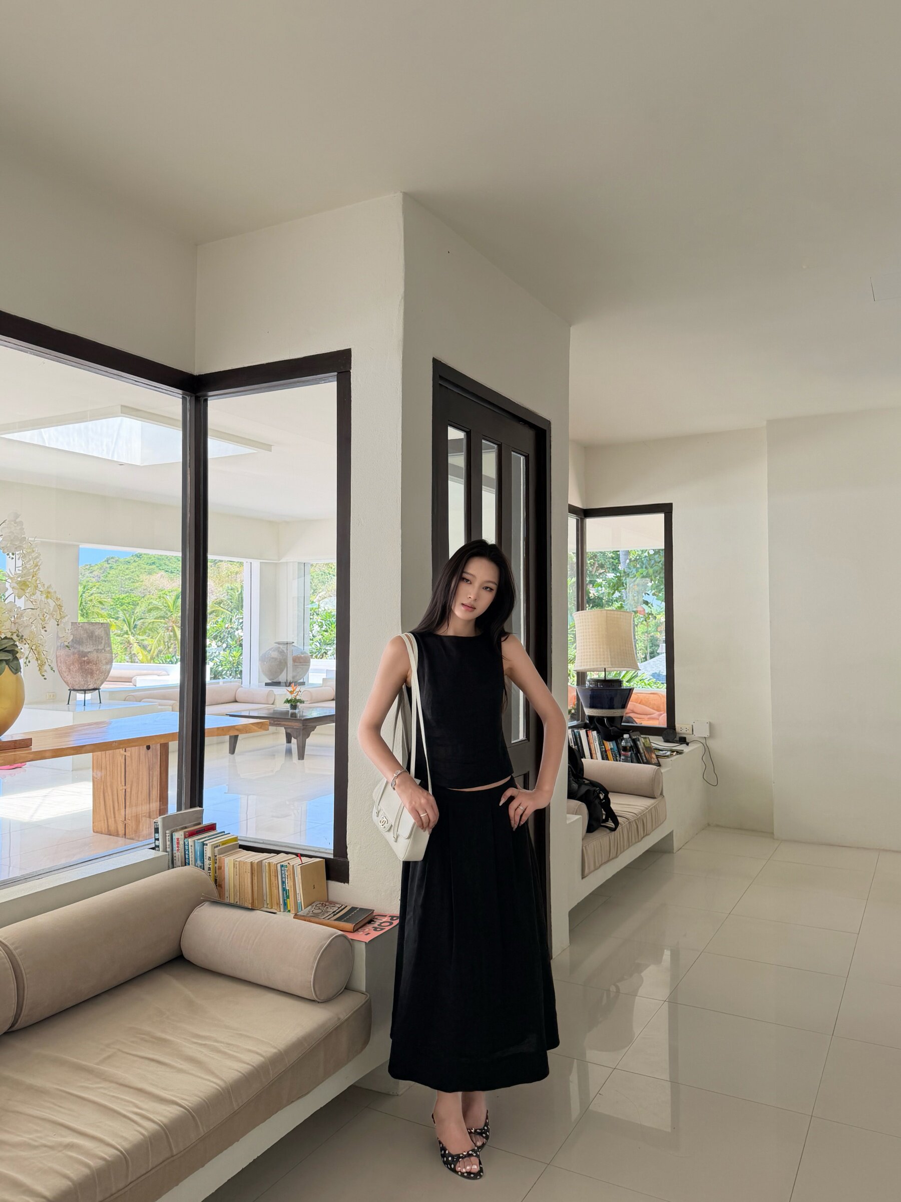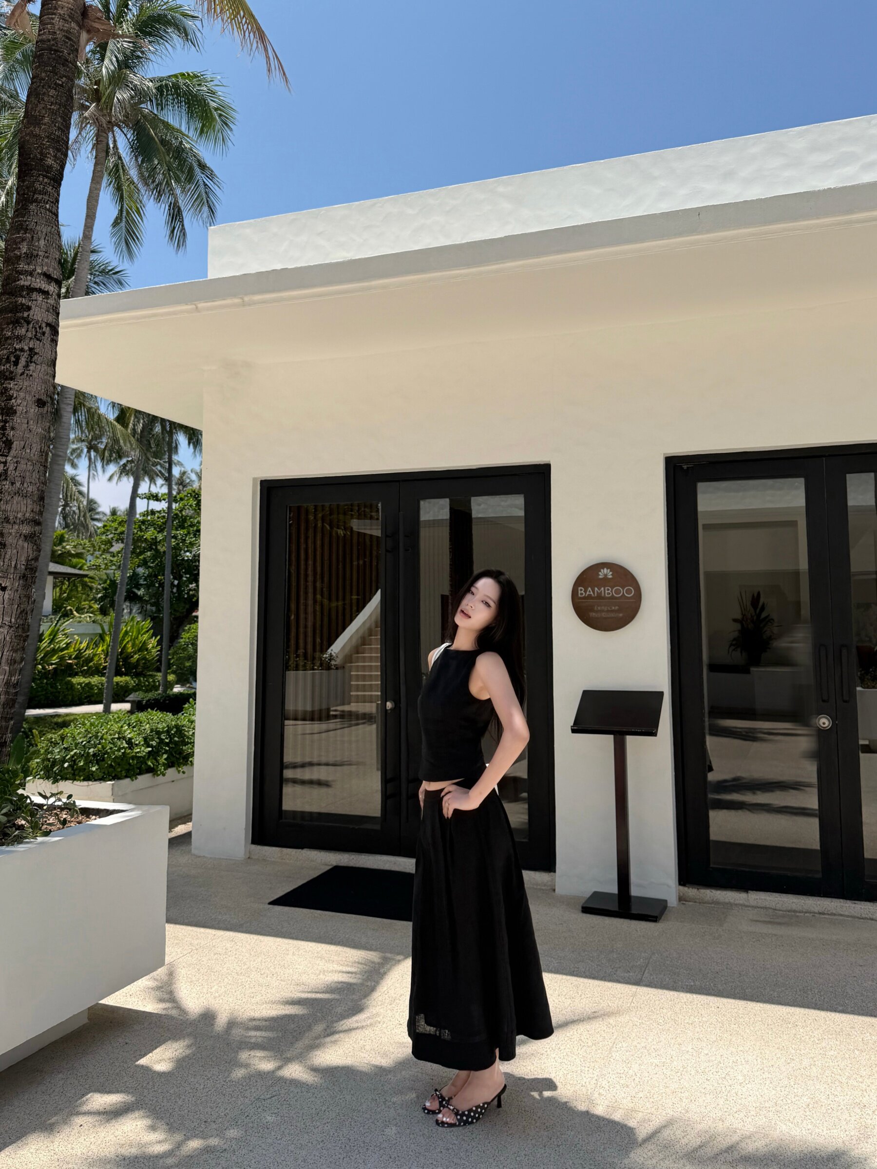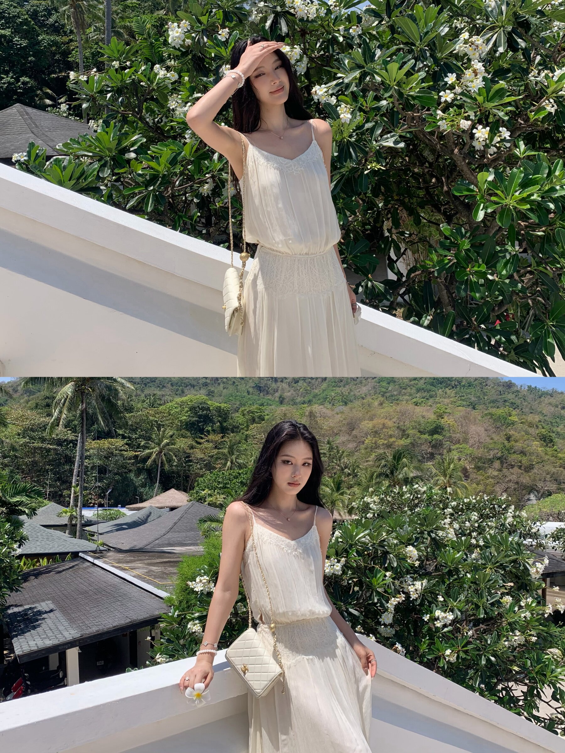 잉여금 도자기 실크 첩 미소 헤일로 염색 드레스 슬립 두 조각 여성 세트 여름 휴가 롱 스커트