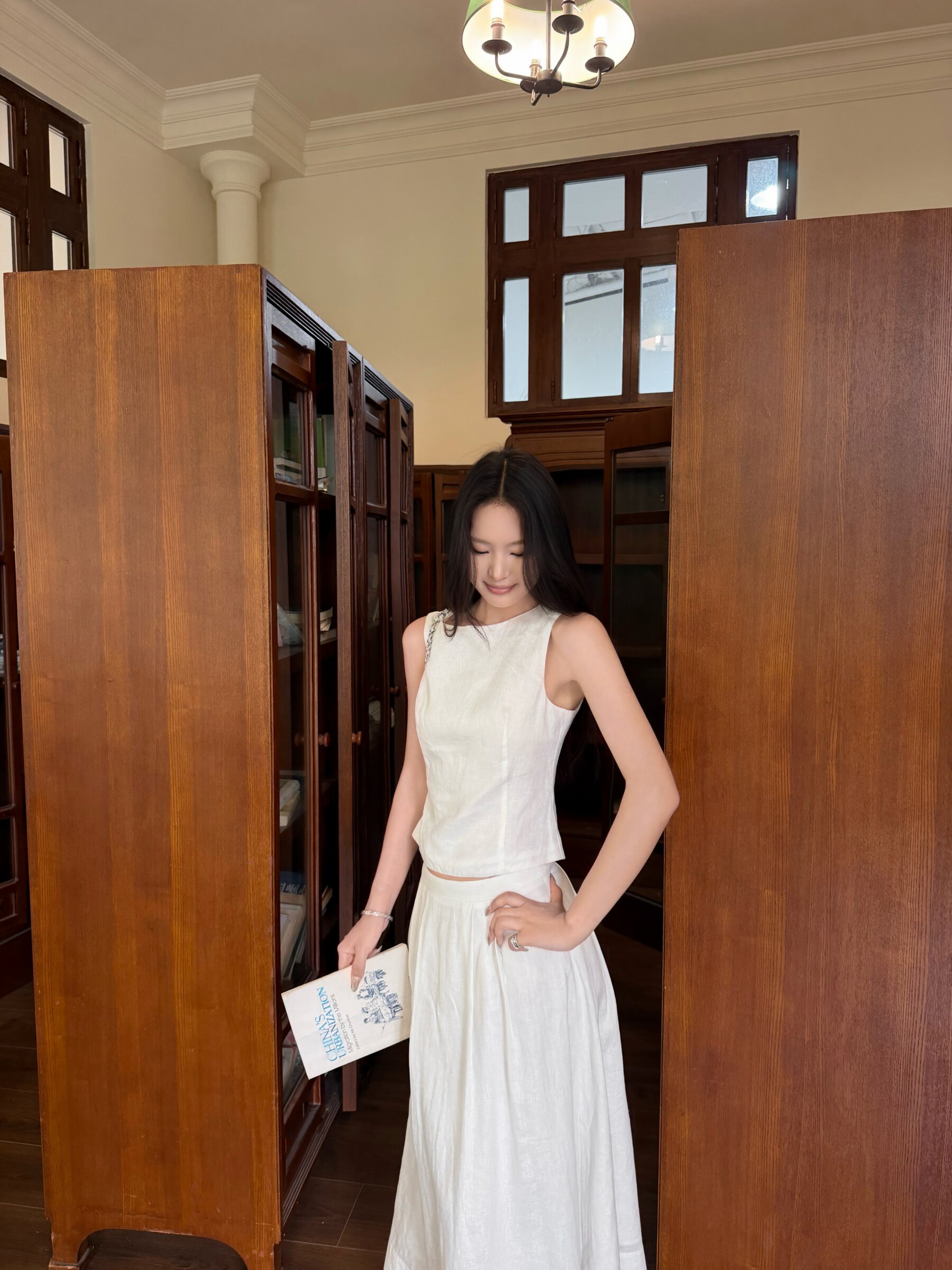 화이트 고급 센스 비틀림 민소매 티셔츠 여성 2026 여름 새로운 고유 한 차가운 센스 억압 박테리아 세련된 반팔