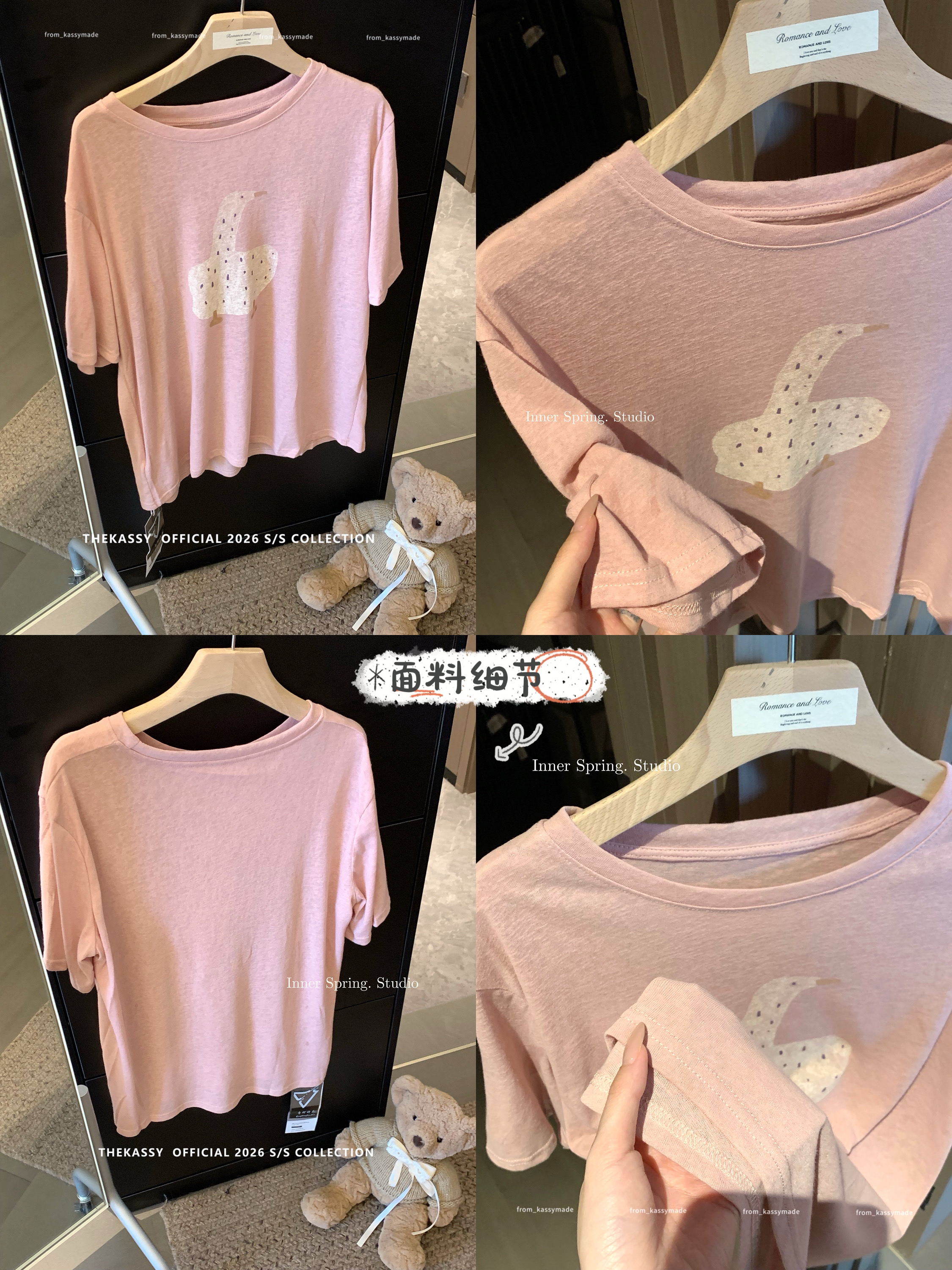 실사 루즈핏 캐주얼 다용도 유머러스 대 거위 프린트 라운드 넥 티셔츠 여성
