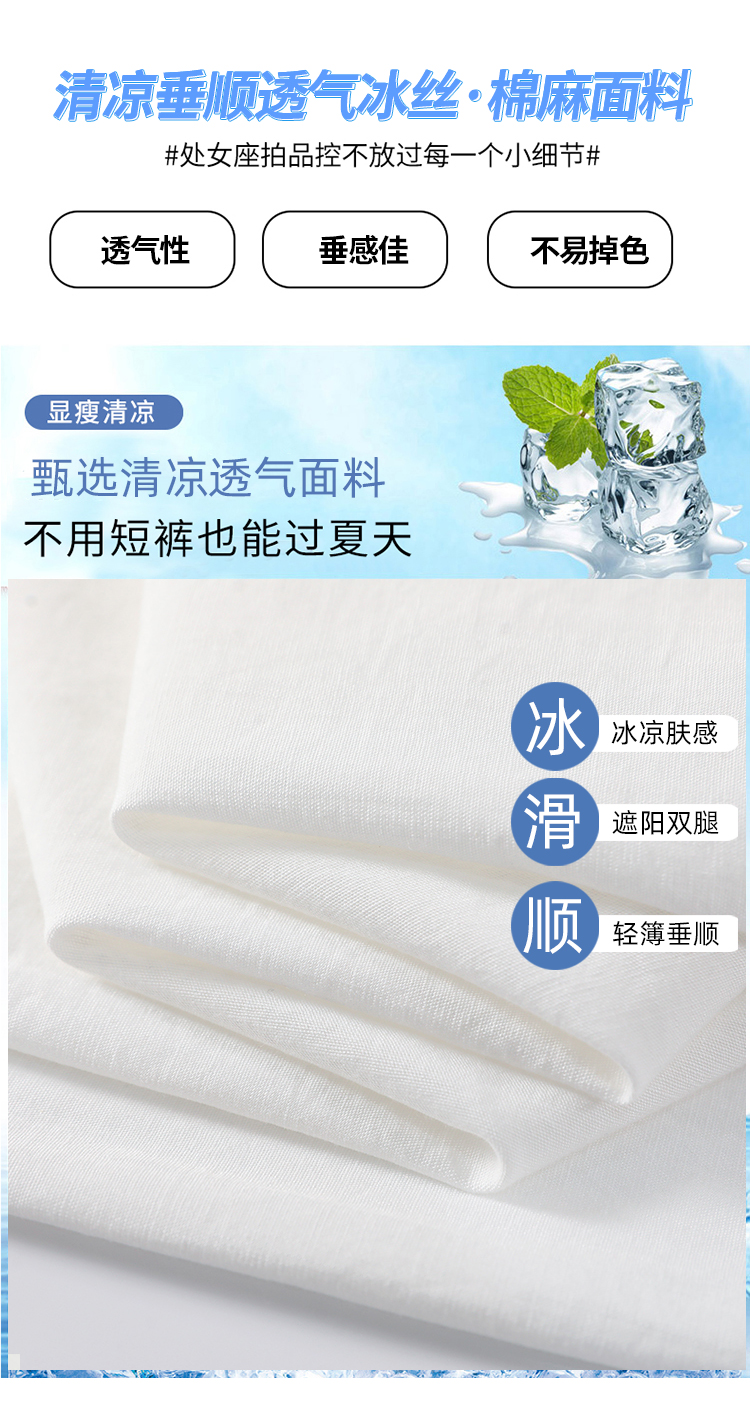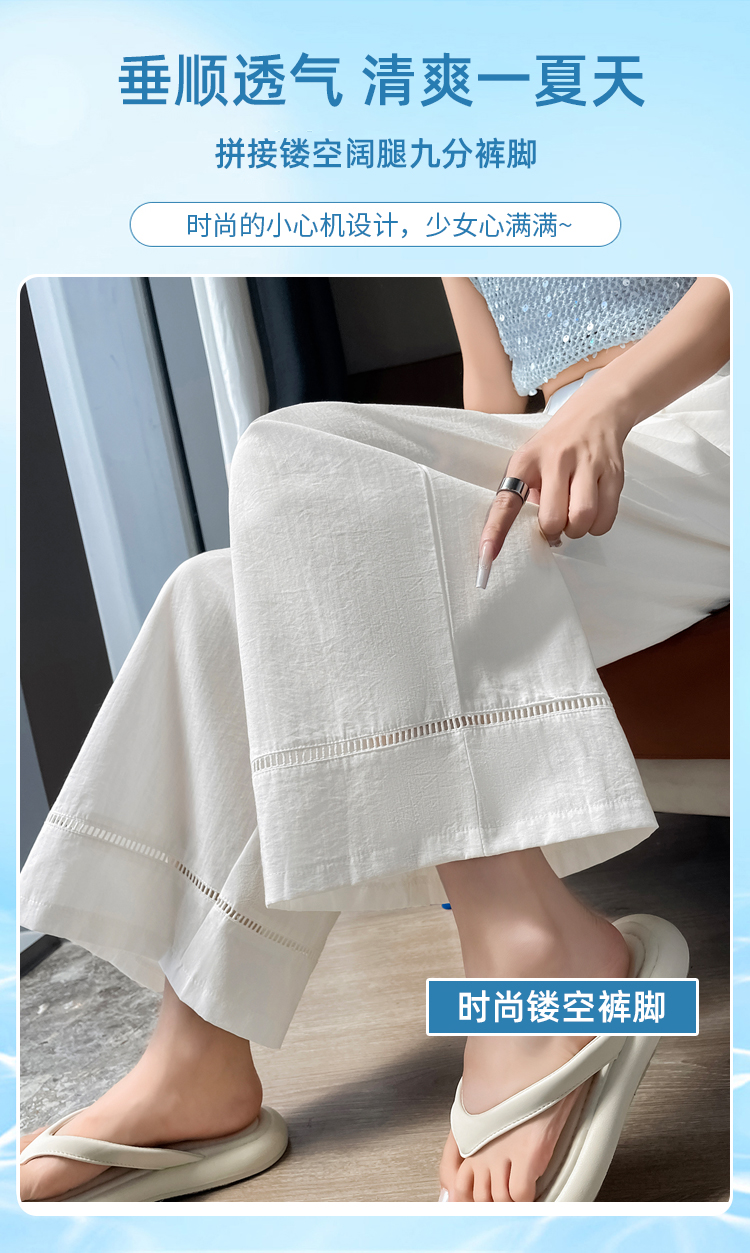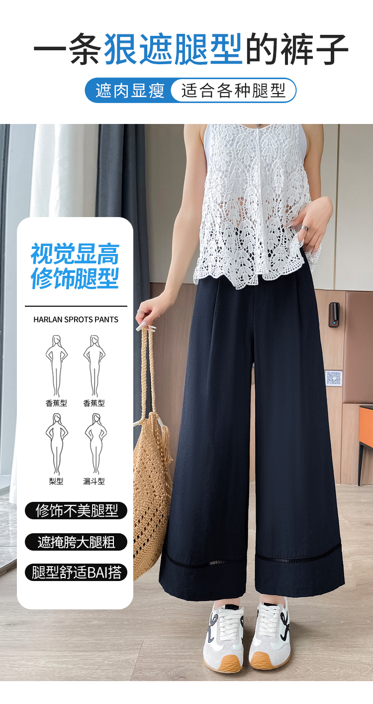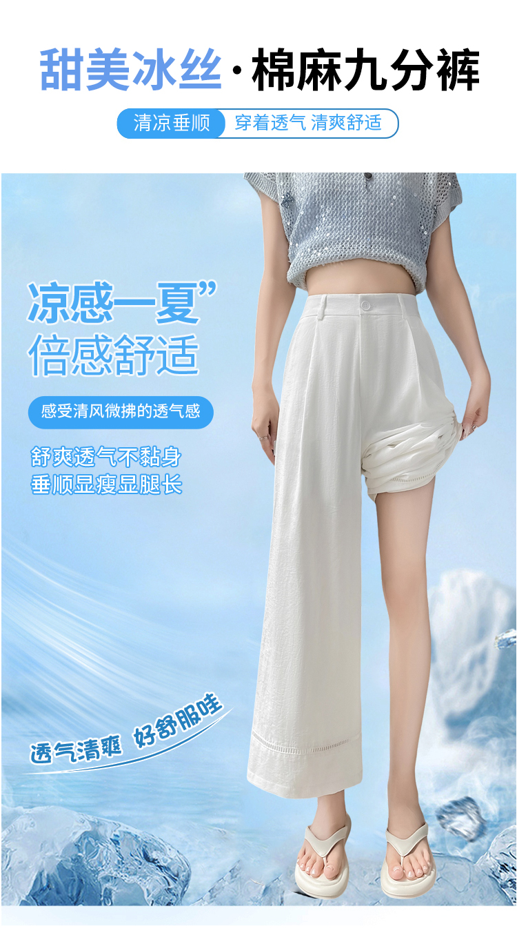 실사 얼음 실크 면 린넨 모통이 칼 바지 여성 2026 여름 하이웨이스트 슬림해 보이는 루즈핏 느긋한 바람 캐주얼 운동 와이드 레그 팬츠