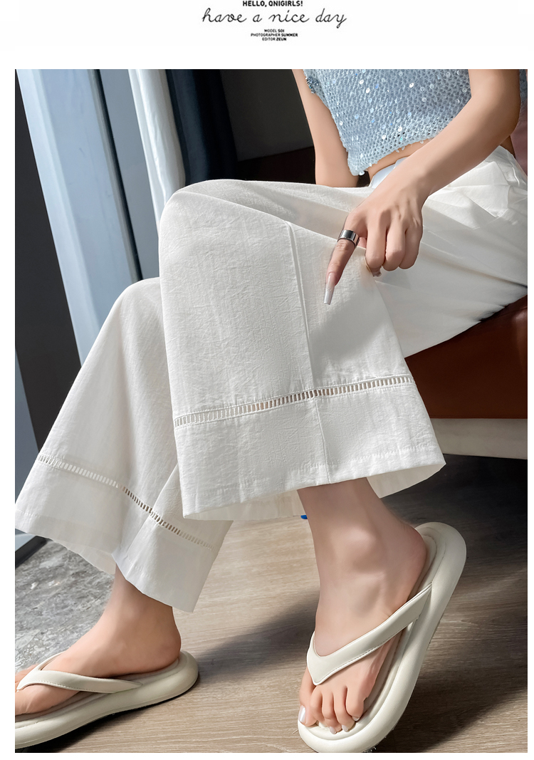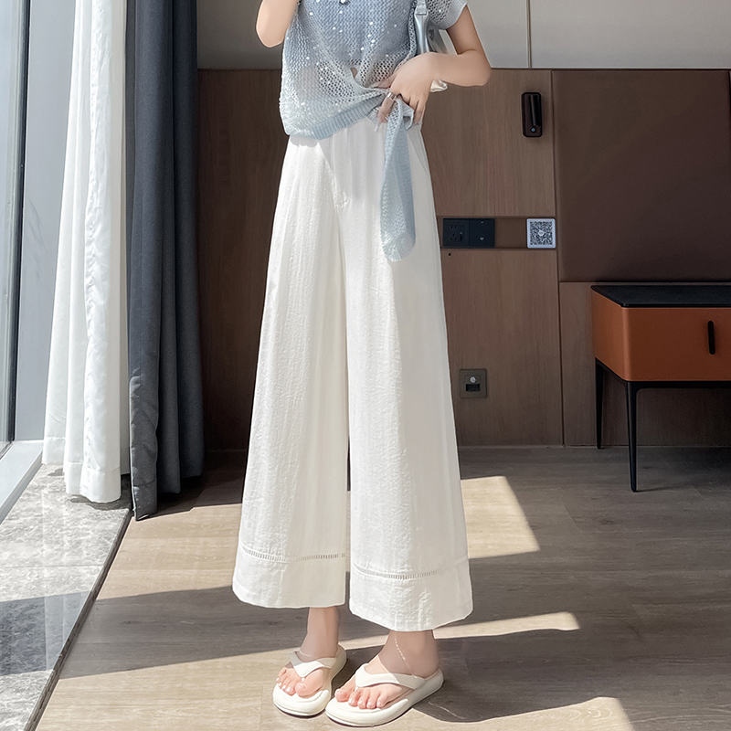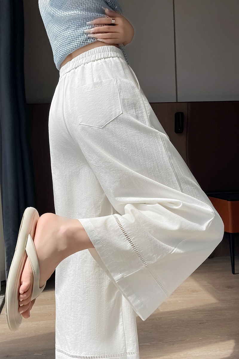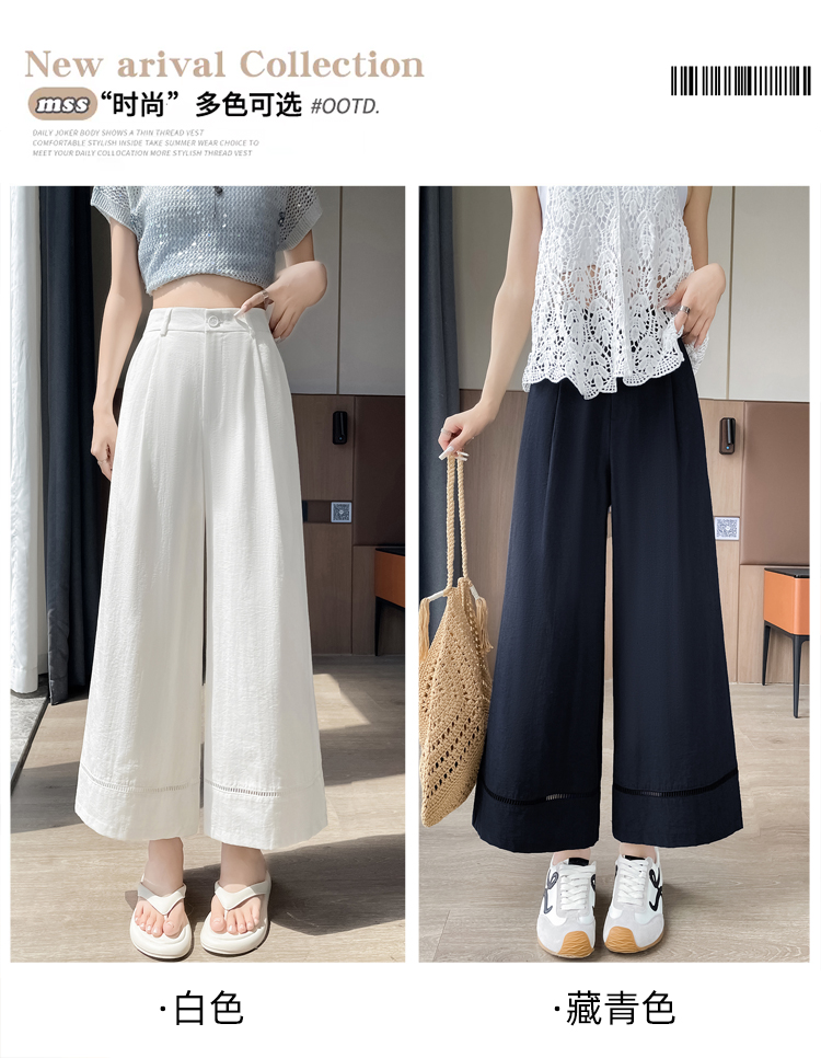 실사 얼음 실크 면 린넨 모통이 칼 바지 여성 2026 여름 하이웨이스트 슬림해 보이는 루즈핏 느긋한 바람 캐주얼 운동 와이드 레그 팬츠