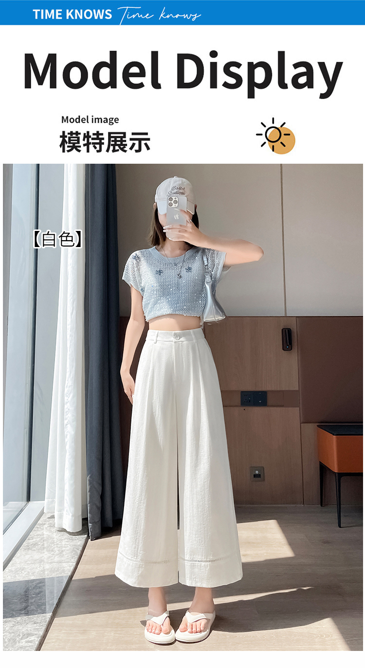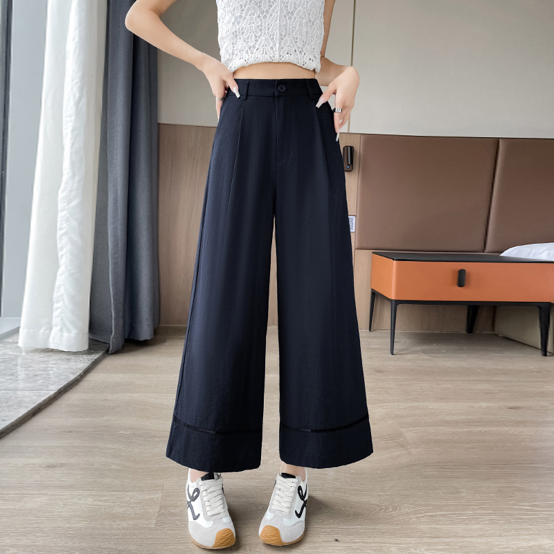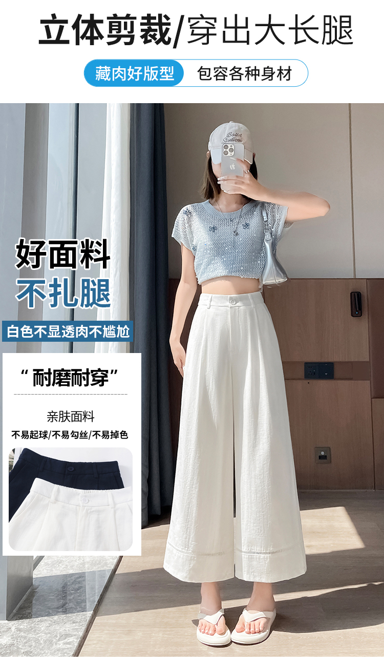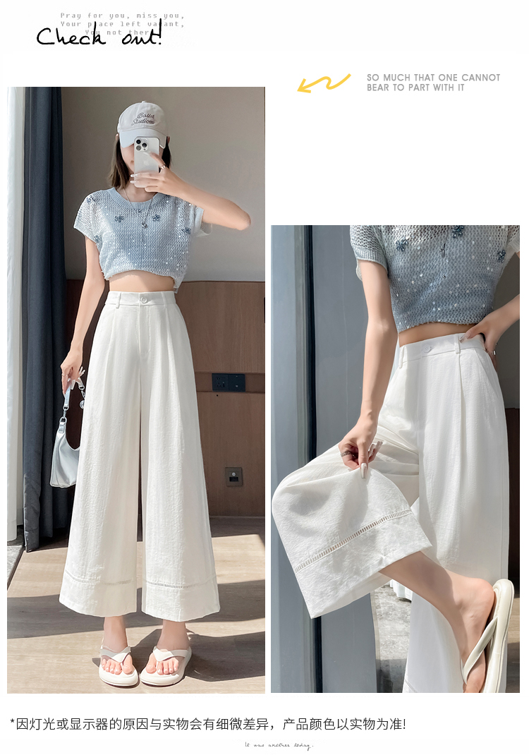 실사 워시 물 면 모통이 칼 바지 여성 2026 여름 새로운 느긋한 하이웨이스트 슬림해 보이는 스트레이트 캐주얼 정장 와이드 레그 팬츠