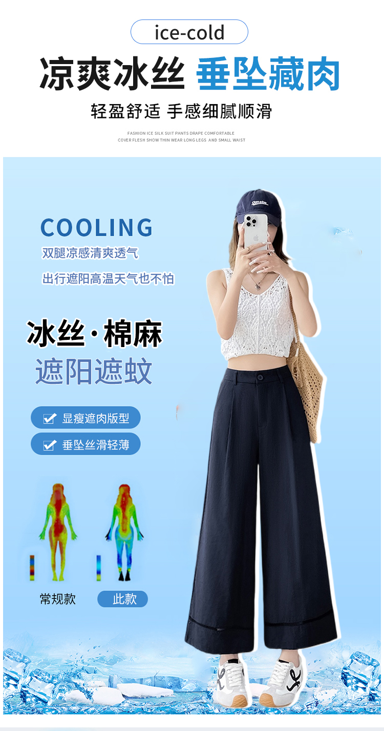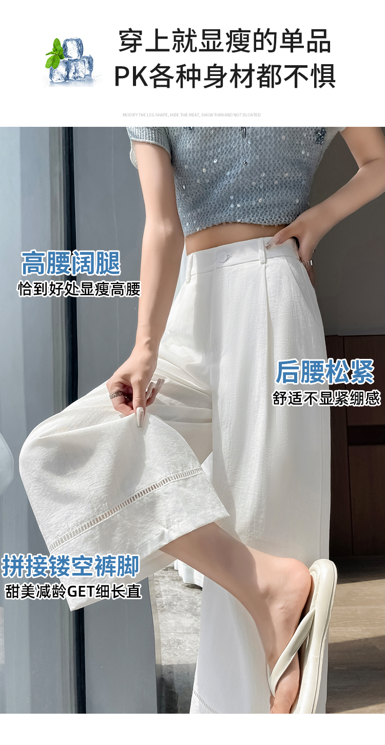 실사 얼음 실크 정장 와이드 레깅스 바지 2026 여름 하이웨이스트 루즈핏 스트레이트 슬림해 보이는 도루 센스 캐주얼 바닥 청소 바지