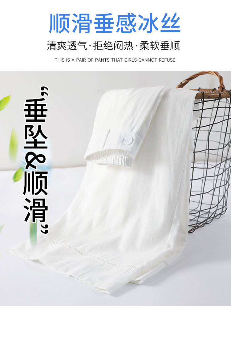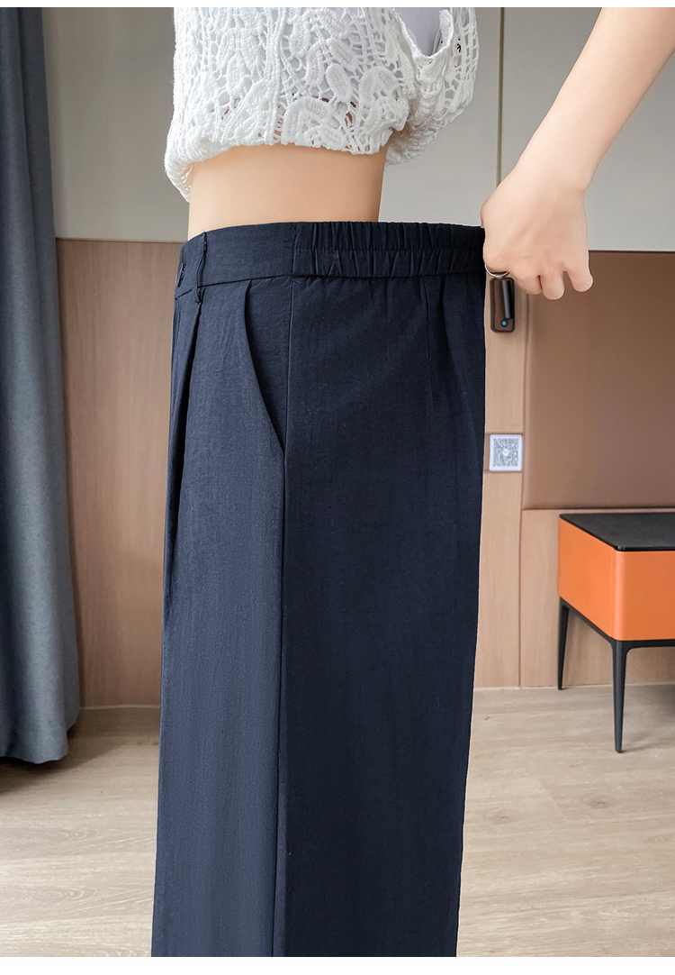 실사 얼음 실크 면 린넨 스트랩 정장 와이드 레깅스 바지 여름 하이웨이스트 슬림해 보이는 캐주얼 바닥 청소 스트레이트 야마모토 바지