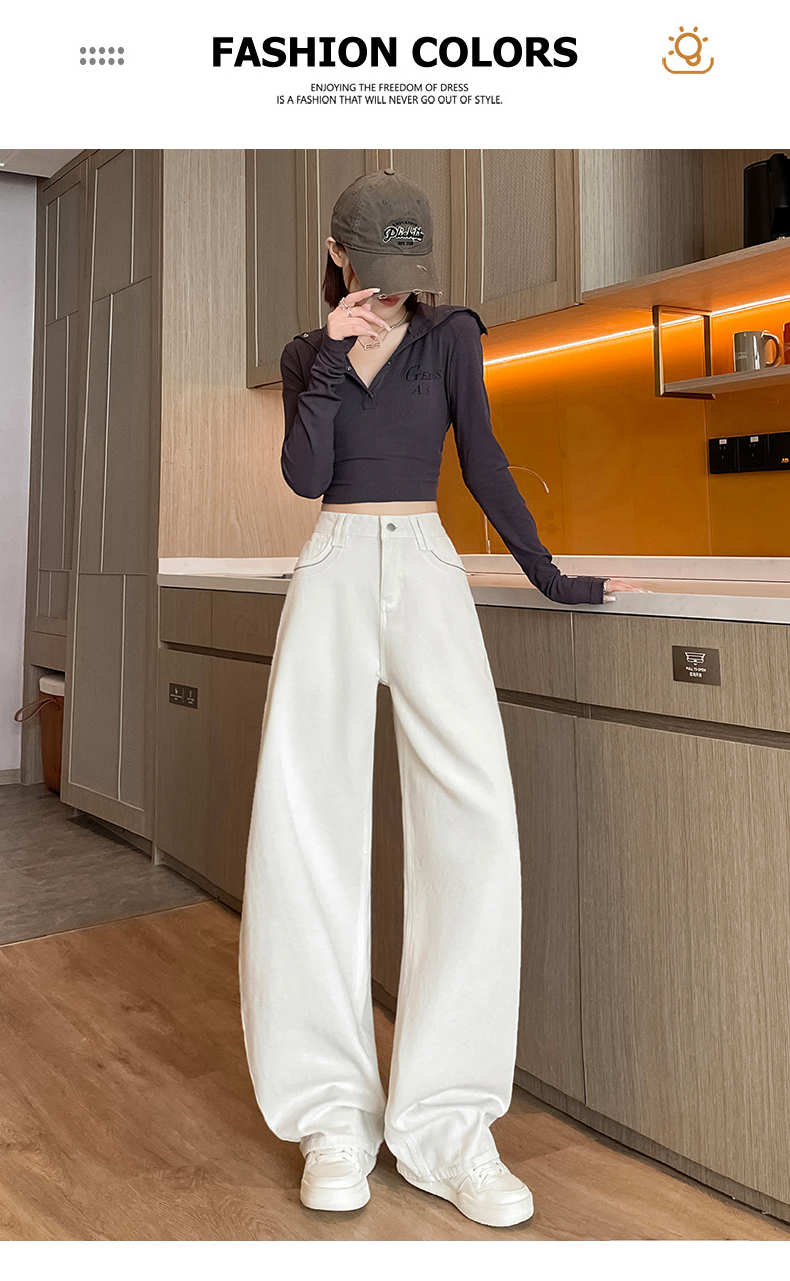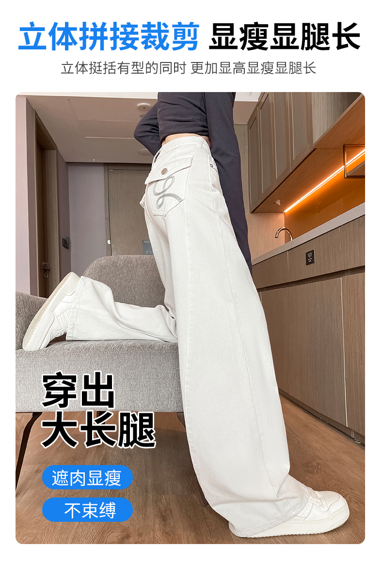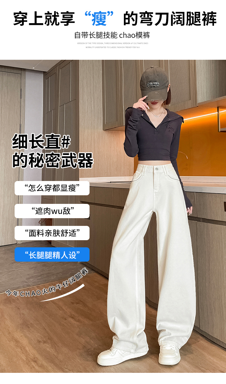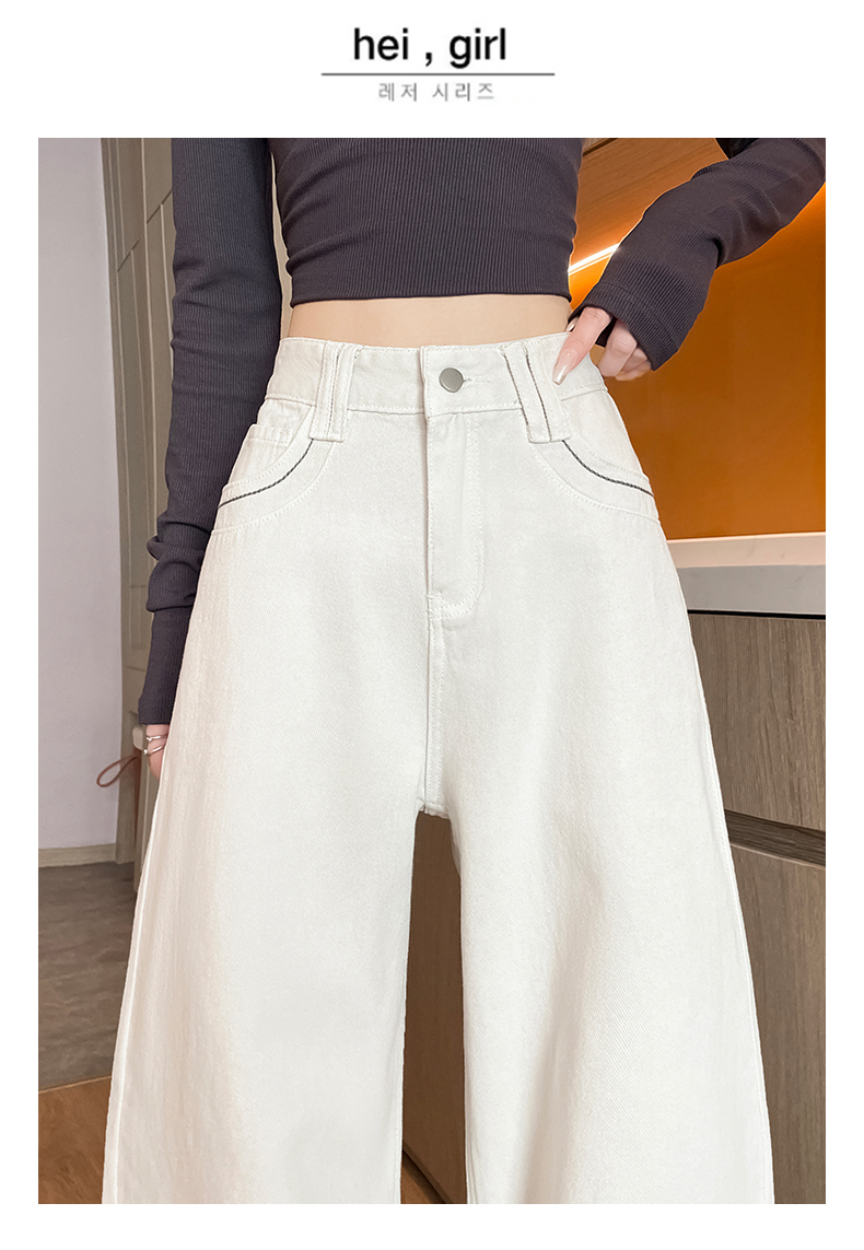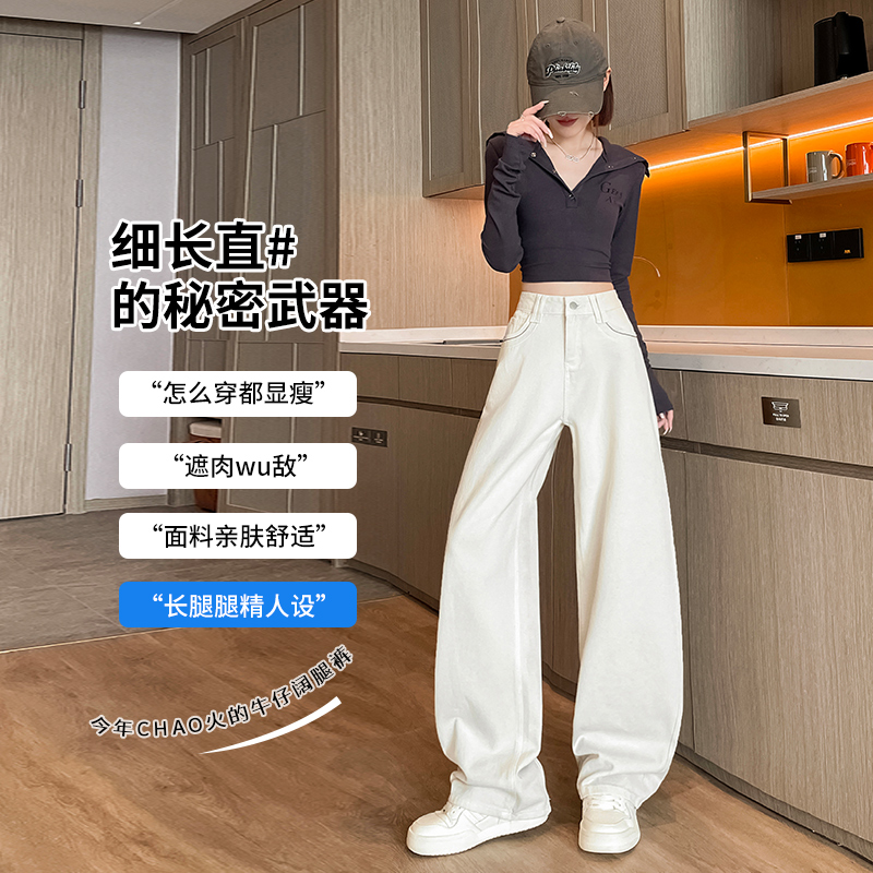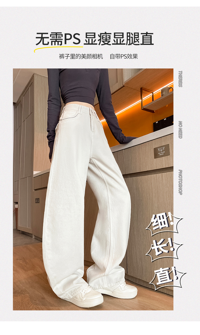 실사 작은 키 8 점 밝은색 넓은 다리 청바지 여성 여름 얇은 스타일 하이웨이스트 루즈핏 디자인 센스 할머니 바지 여성