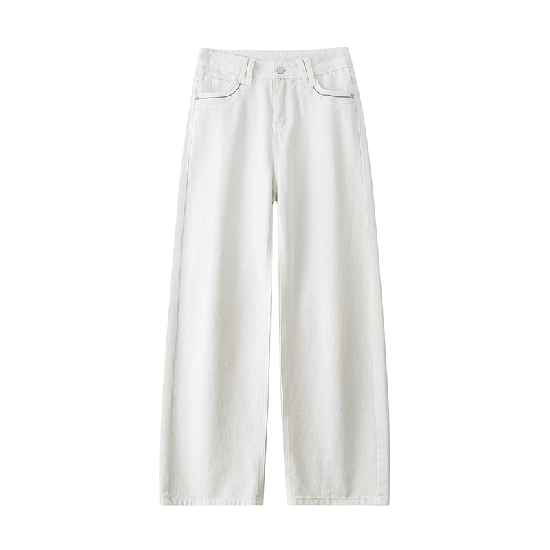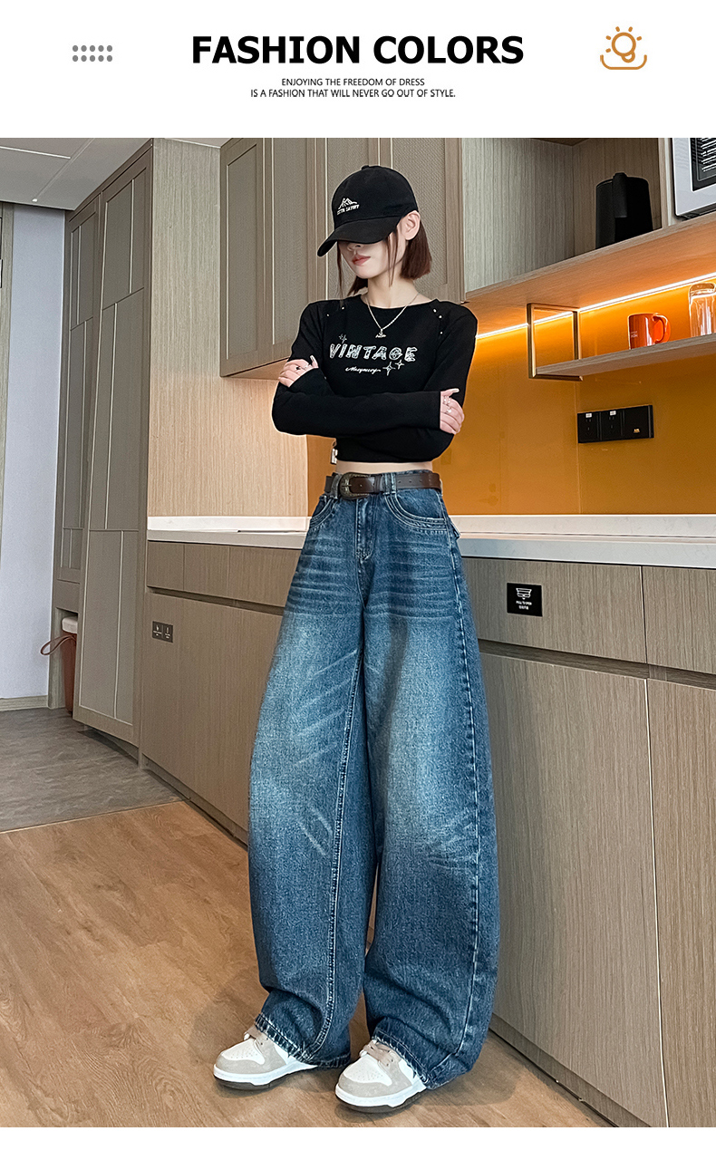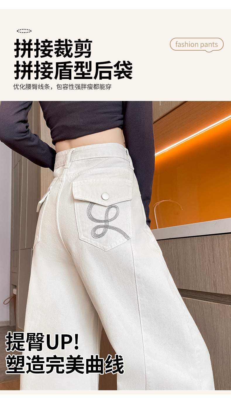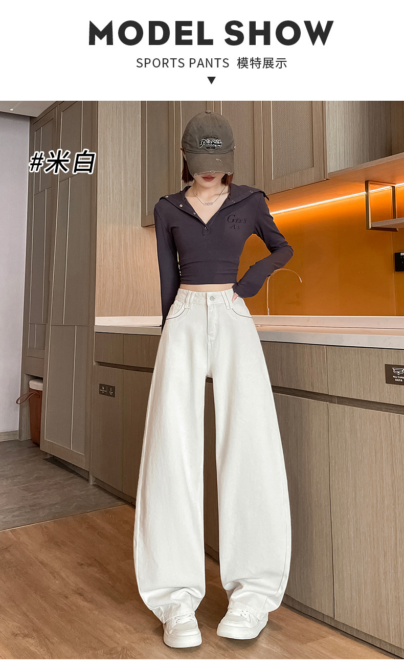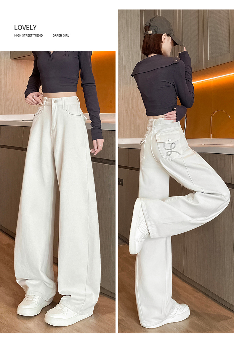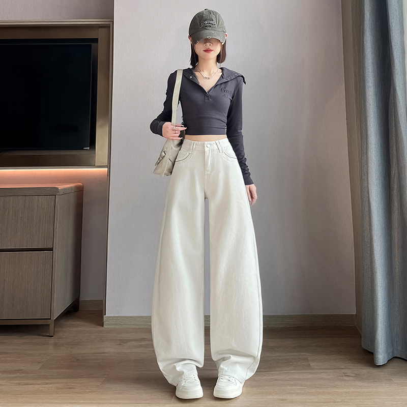 실사 작은 키 8 점 밝은색 넓은 다리 청바지 여성 여름 얇은 스타일 하이웨이스트 루즈핏 디자인 센스 할머니 바지 여성