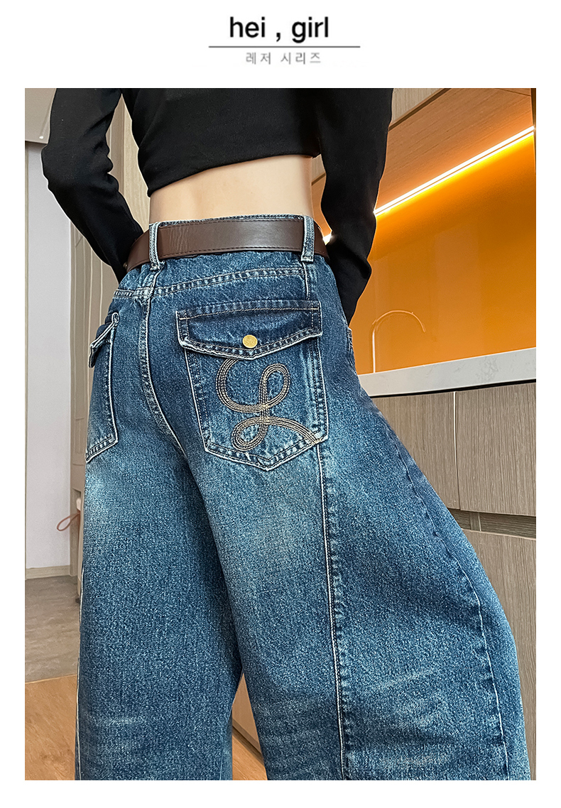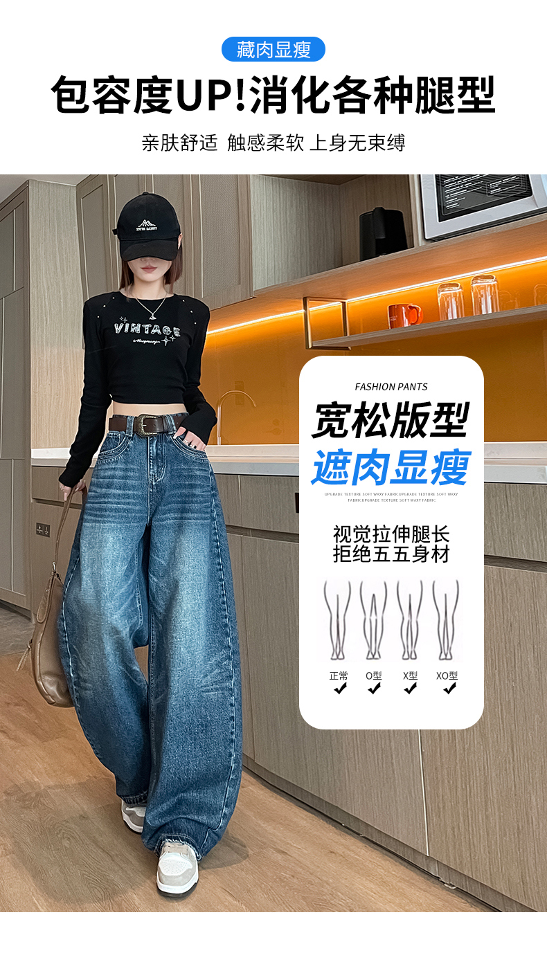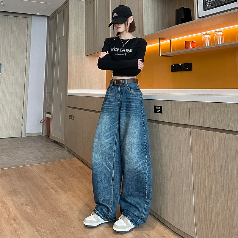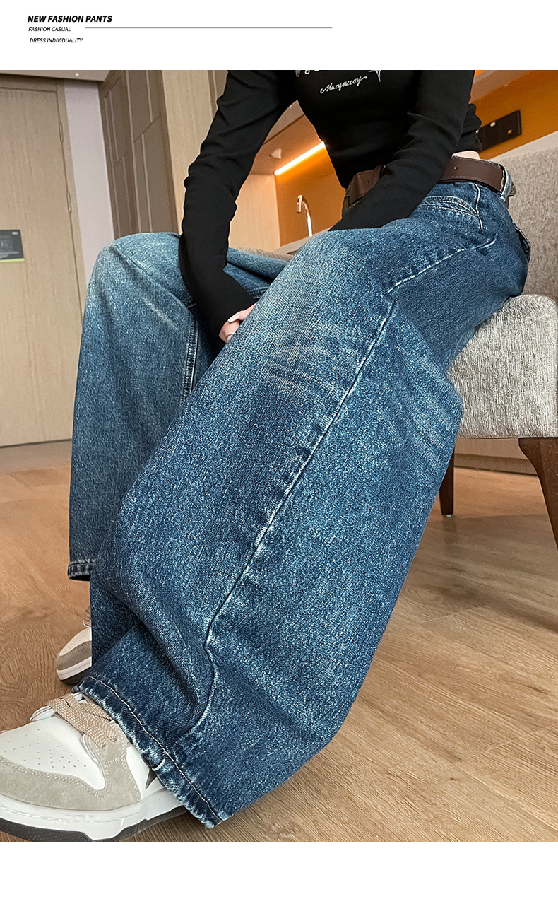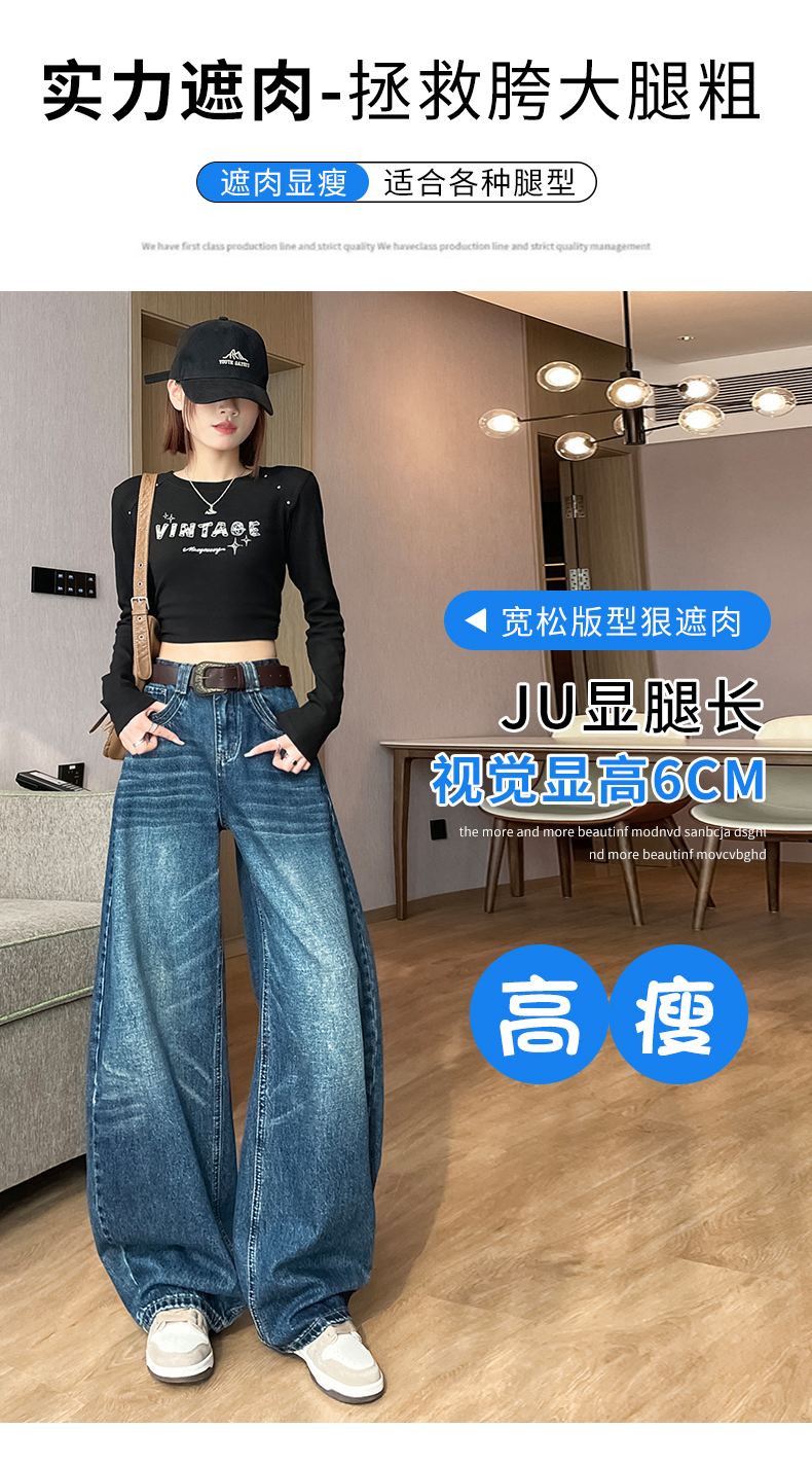 실사 단 닝 블루 모통이 칼 넓은 다리 청바지 여성 봄 2026 새로운 하이웨이스트 슬림해 보이는 다용도 루즈핏 바닥 청소 바지