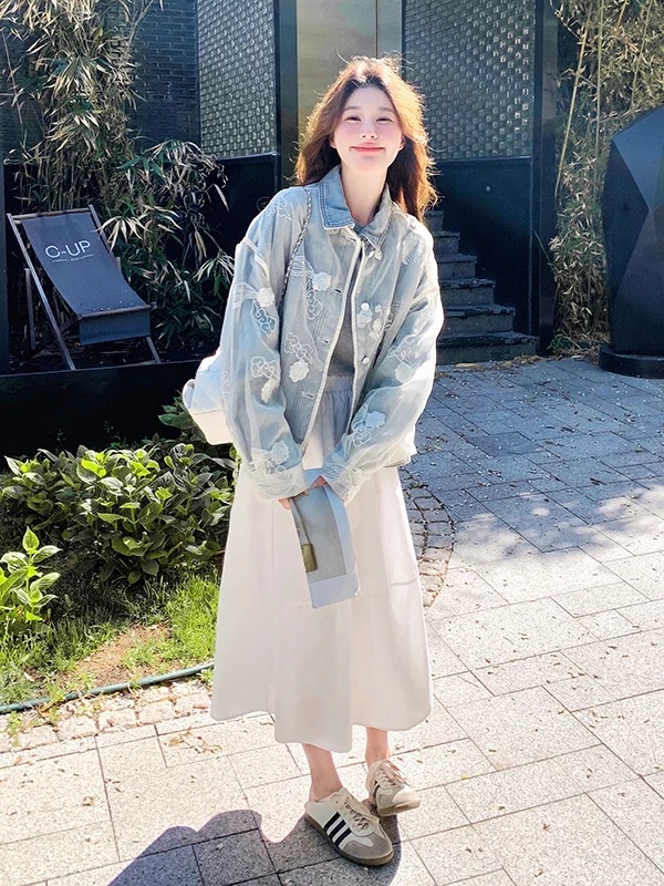 대화 라이 경기 서울 레트로 출퇴근 데님 세트 여성 2026 여름 새로운 고급 센스 셔츠 한 마디 반신 스커트