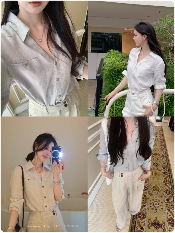 seeyouiceland_ 징 서클 여성 주님 실용주의 오래된 돈 비싼 센스 실크 아마 셔츠 3 색