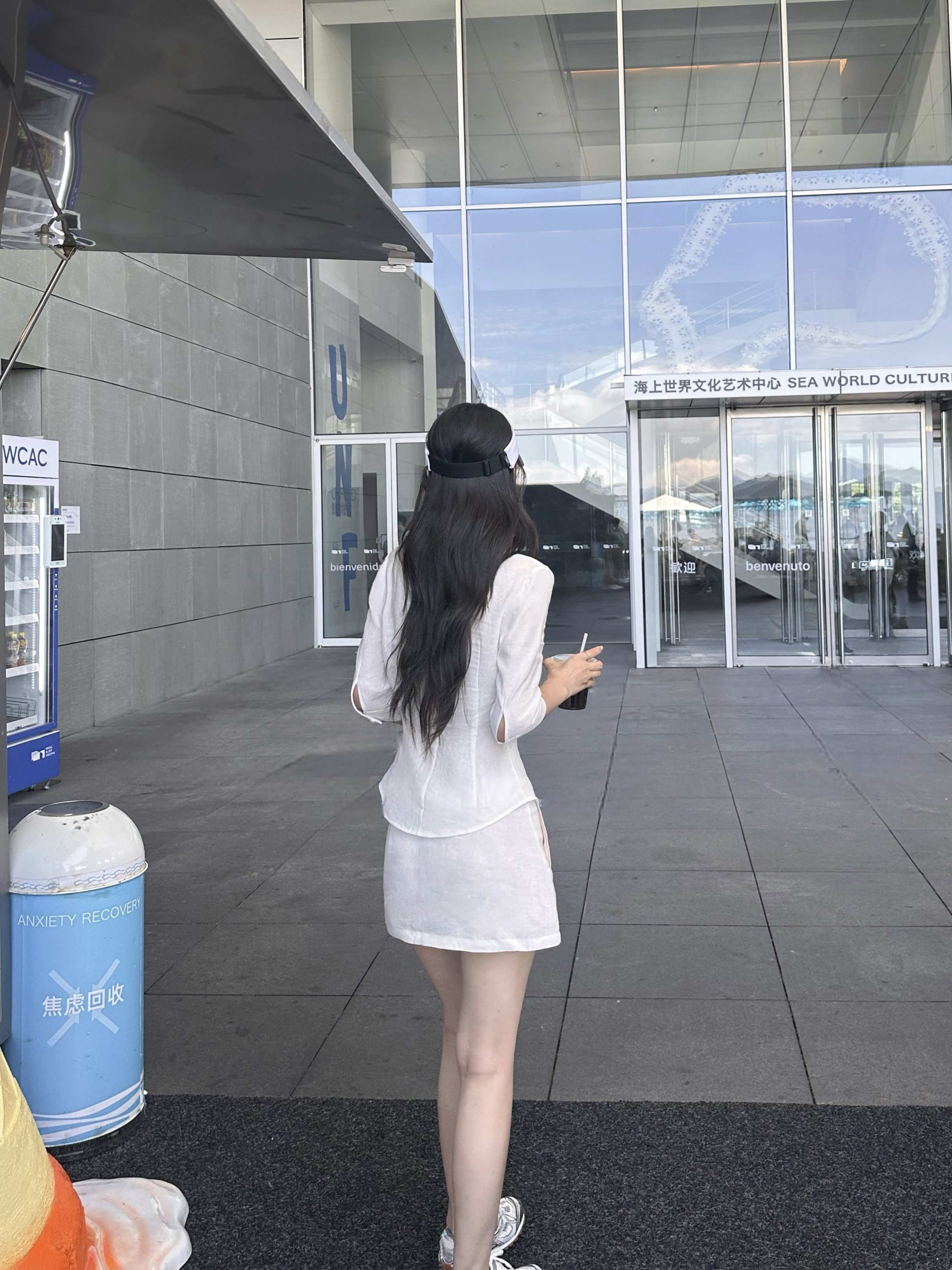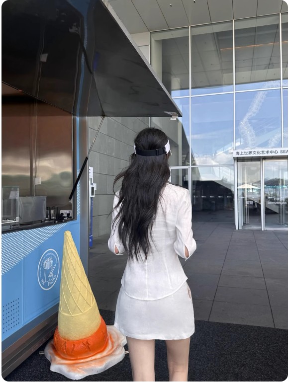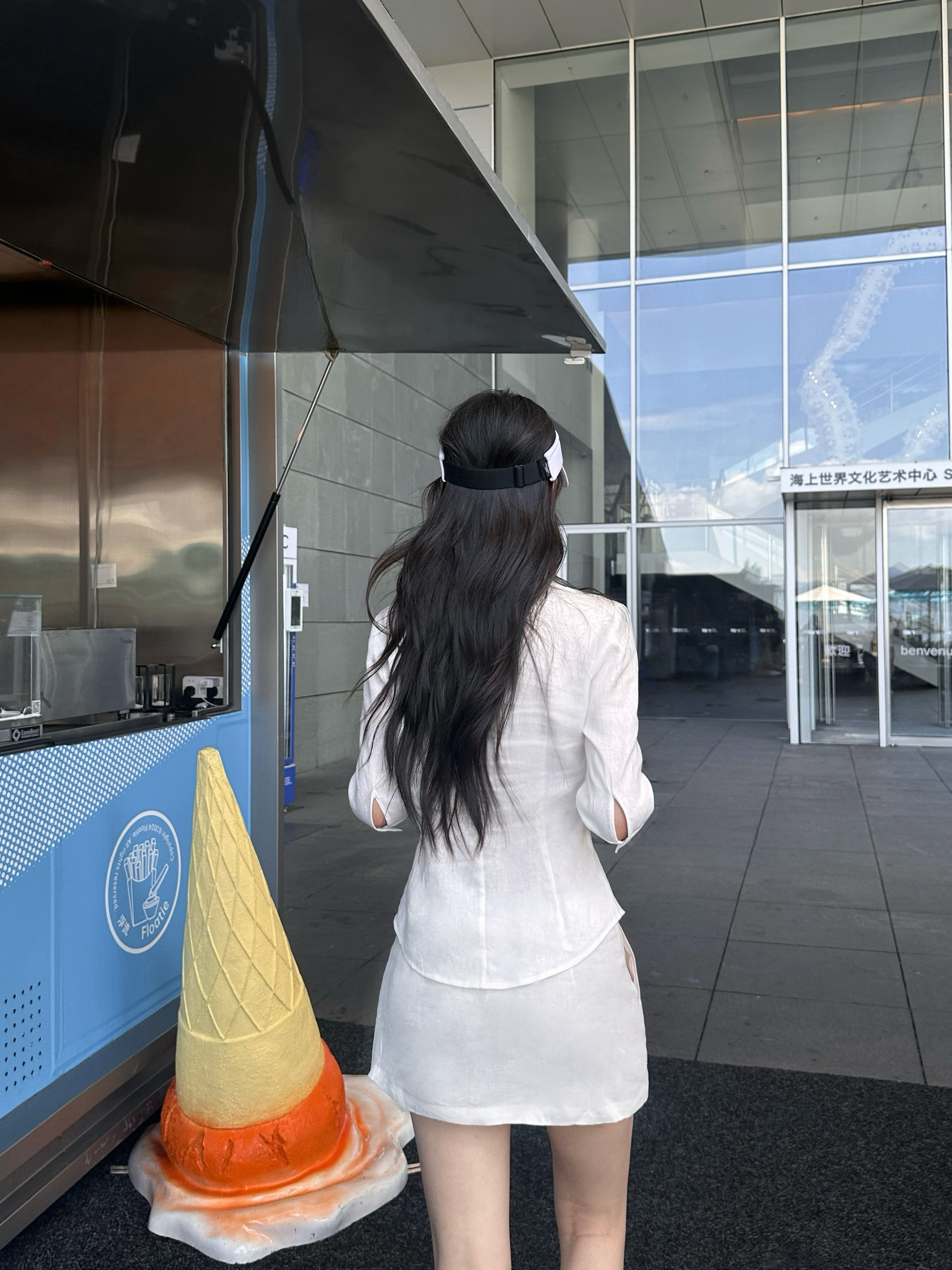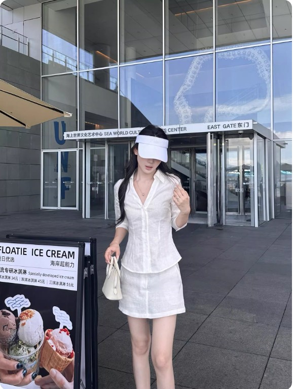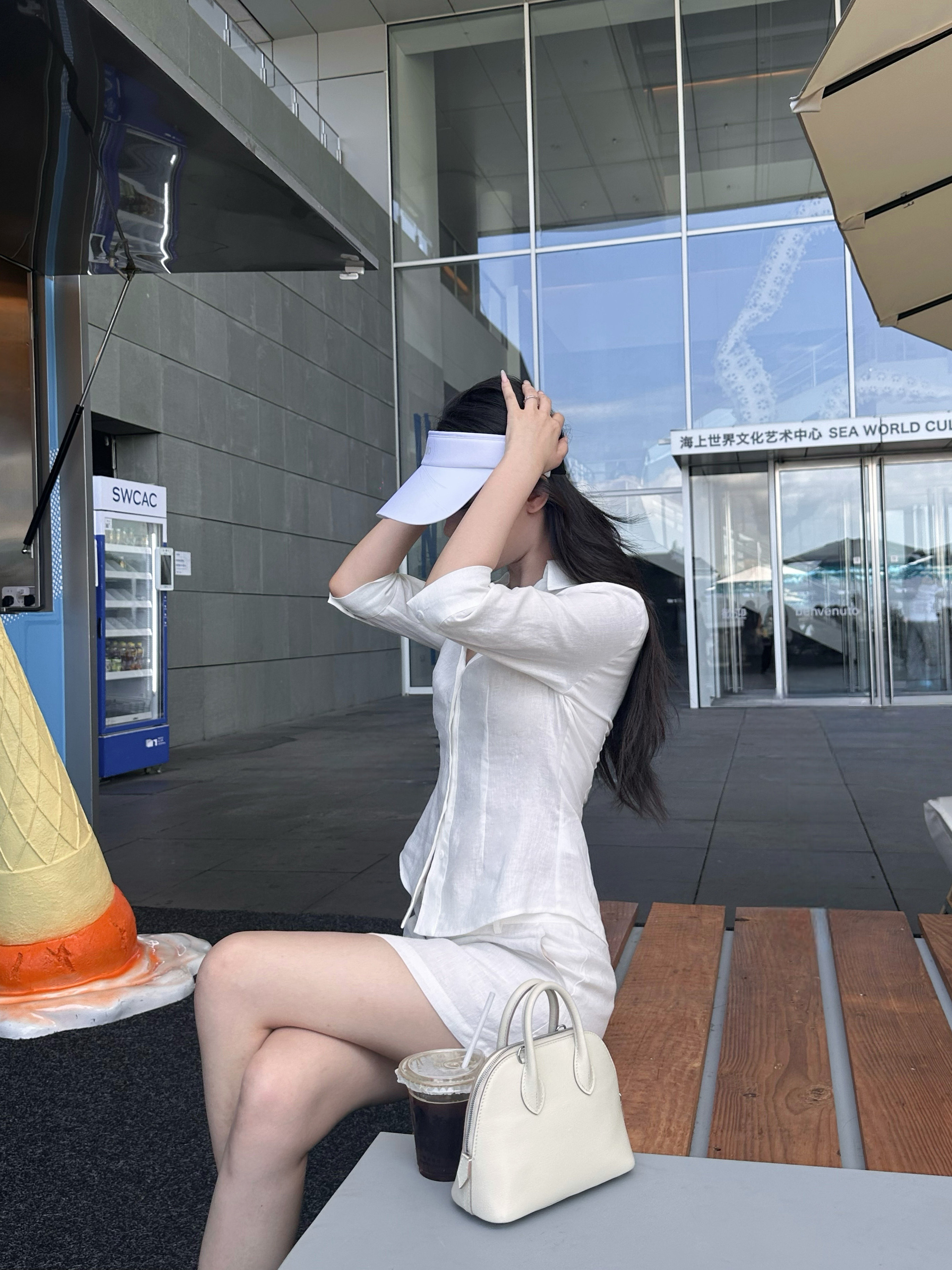 파란색 디스플레이 화이트 허리 수축 스트랩 디자인 센스 폴로 칼라 맨위 2026 봄 여성 의류 새로운 폴로 칼라 외국 가스 셔츠 트렌디