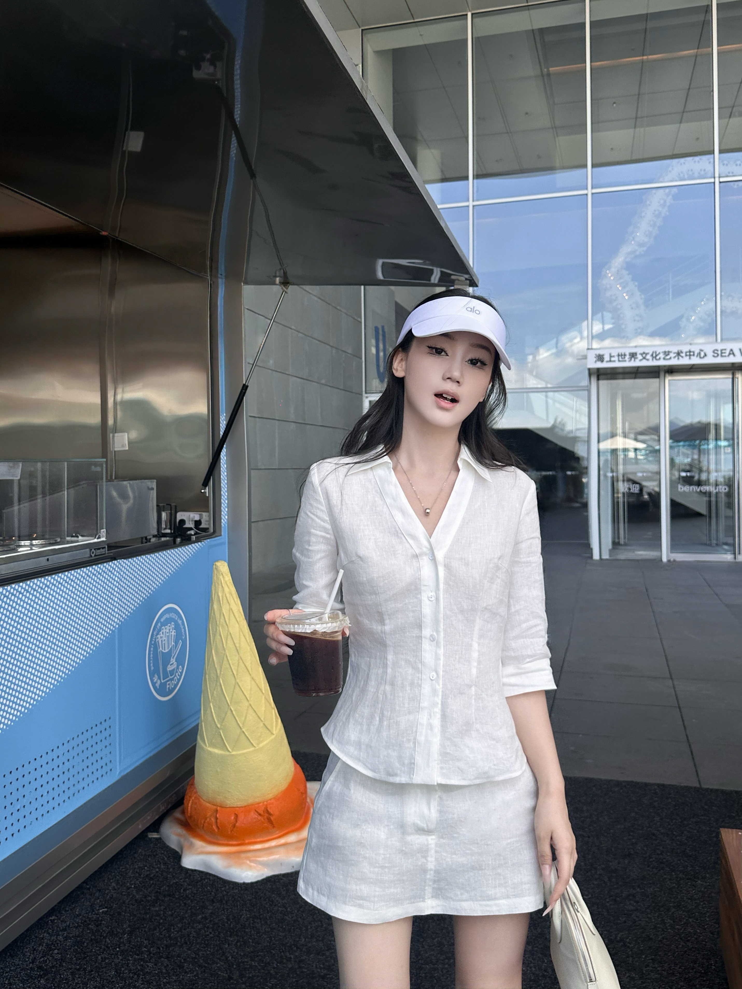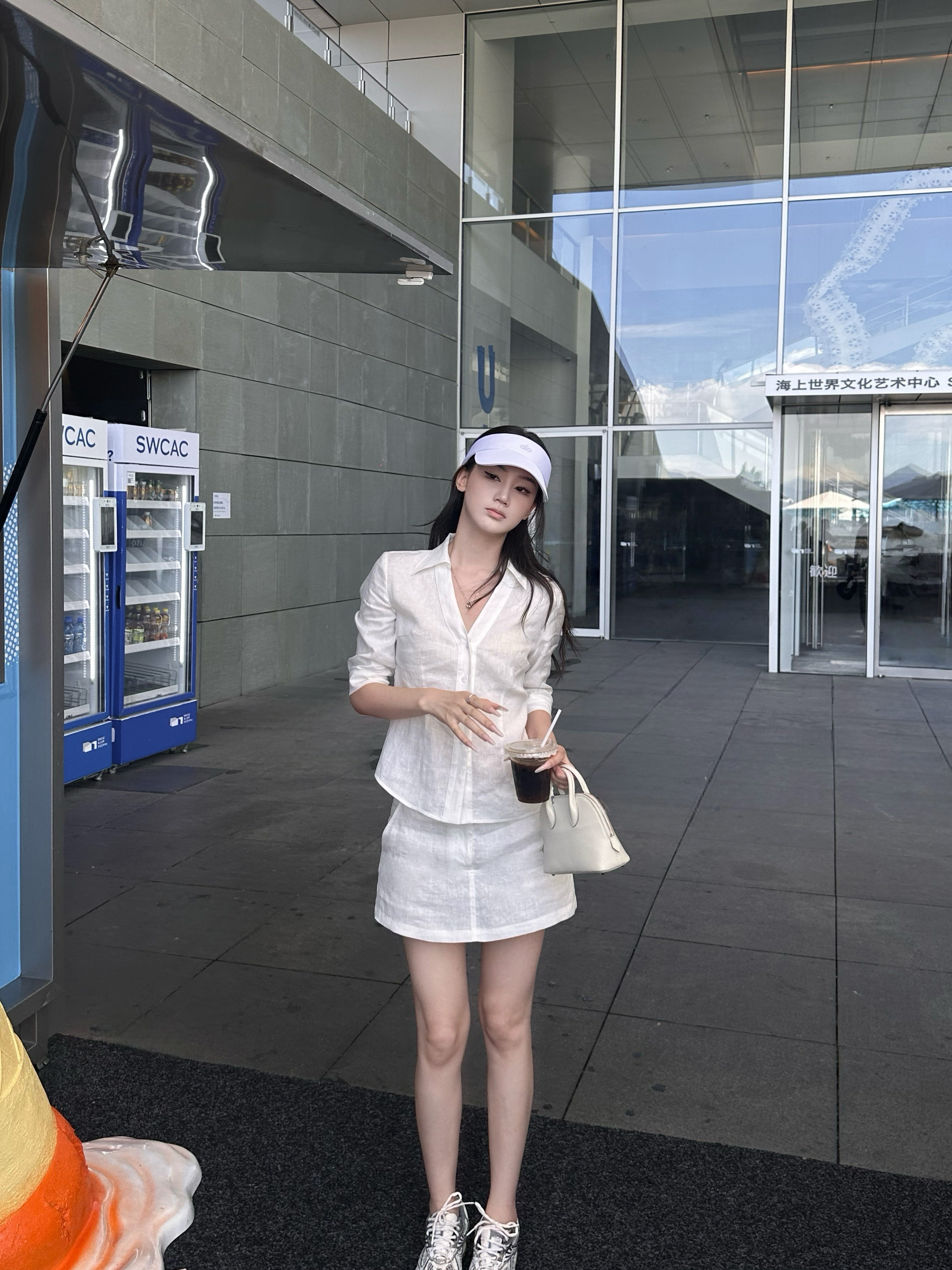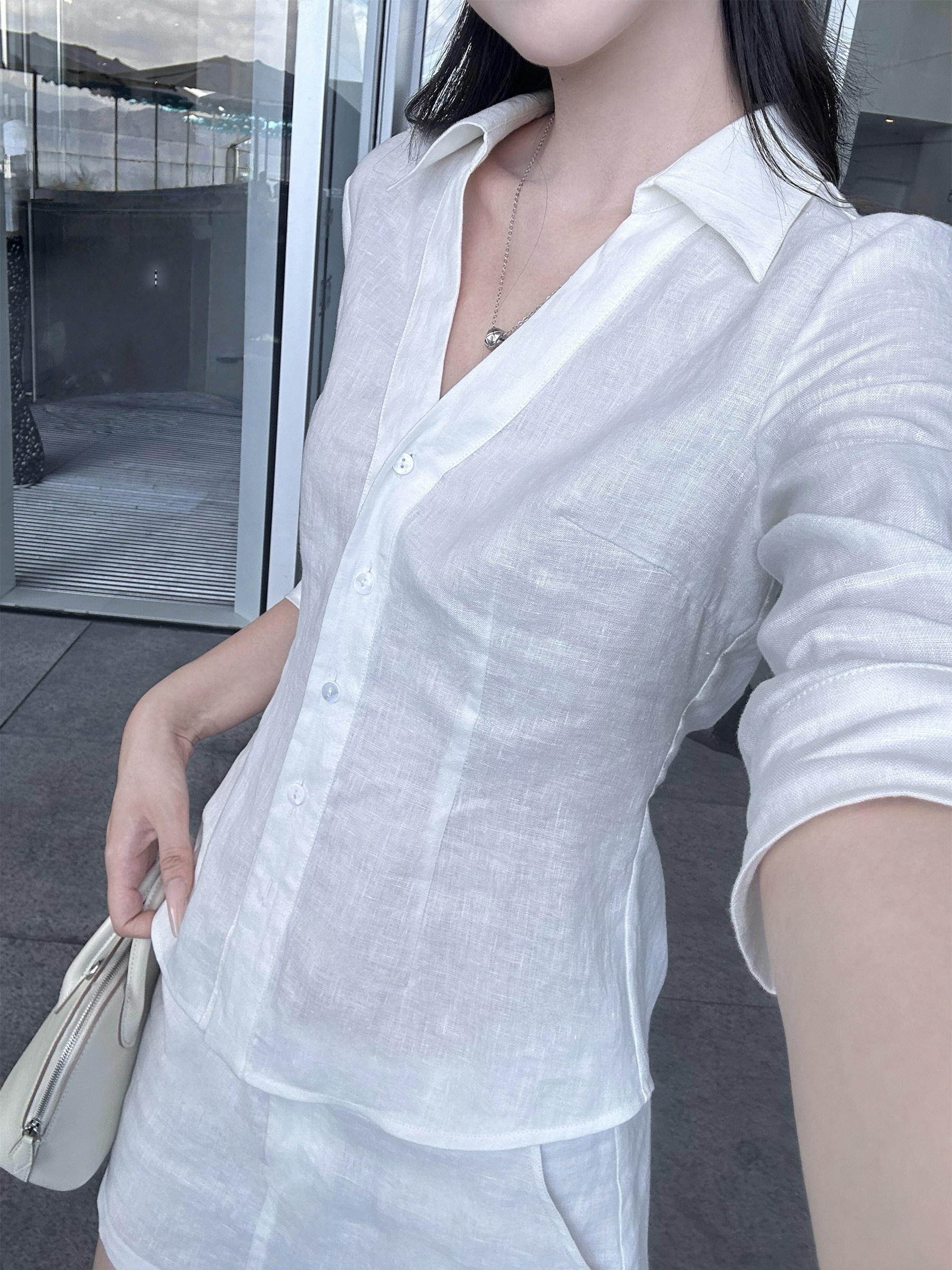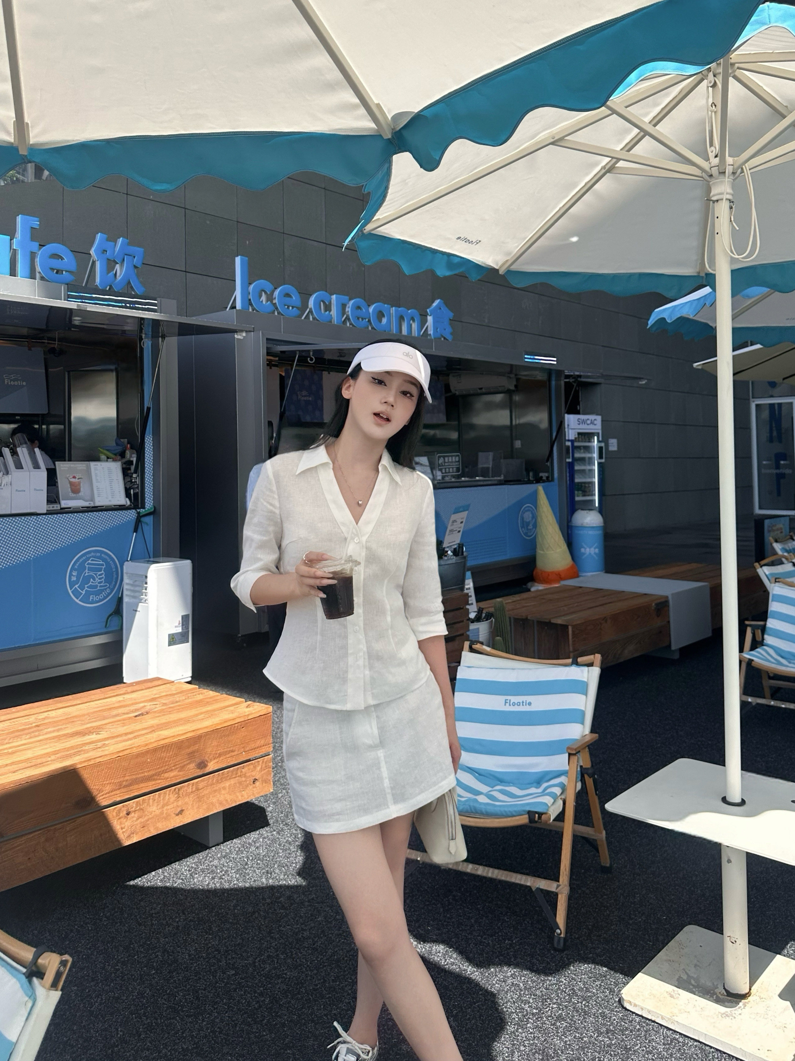 프랑스식 바다색 아마 여성 셔츠 얇은 스타일 루즈핏 품격 오래된 돈 바람 고급 센스 면 린넨 자외선 차단 셔츠