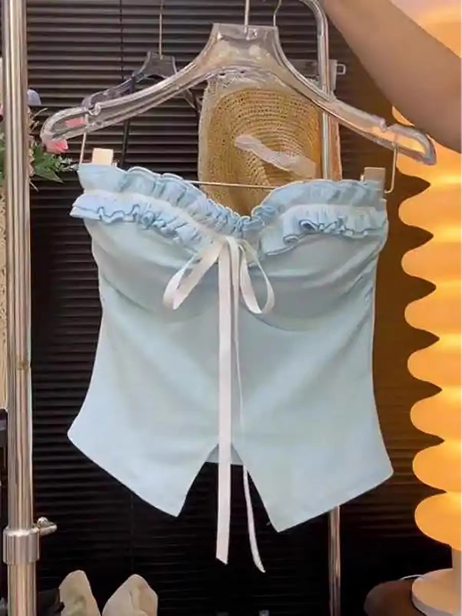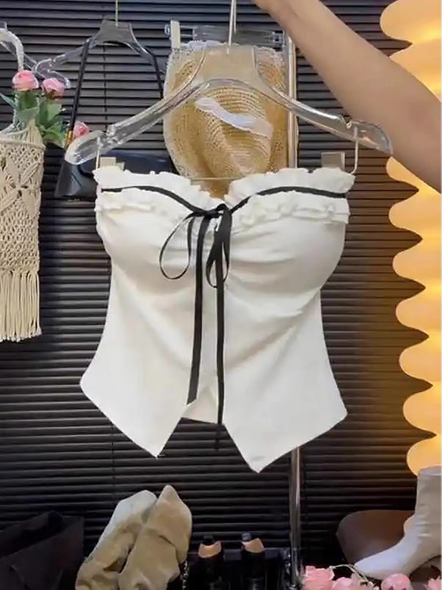 한 부서 부드러운 바람 레이스 스트랩 튜브탑 여성 여름 몸매 가꾸기 슬림해 보이는 측면 트임 불규칙 조끼 여성