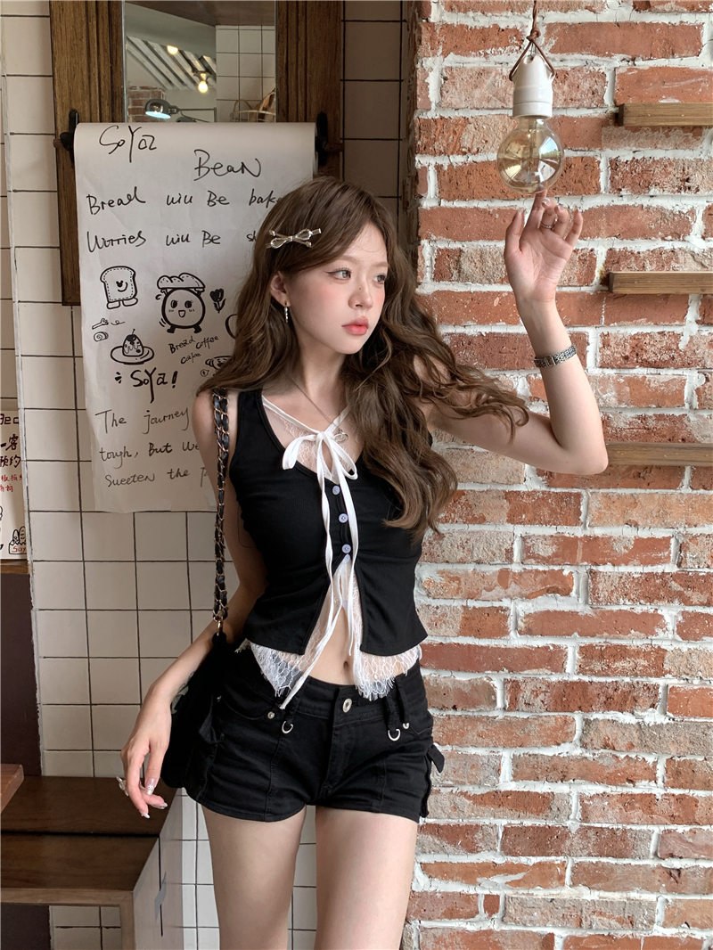 실사 정가 캐미솔 26 새로운 여름 외출용 검정색 핫걸 착용 가져 가라. 레이스 페이크 레이어드 민소매 맨위